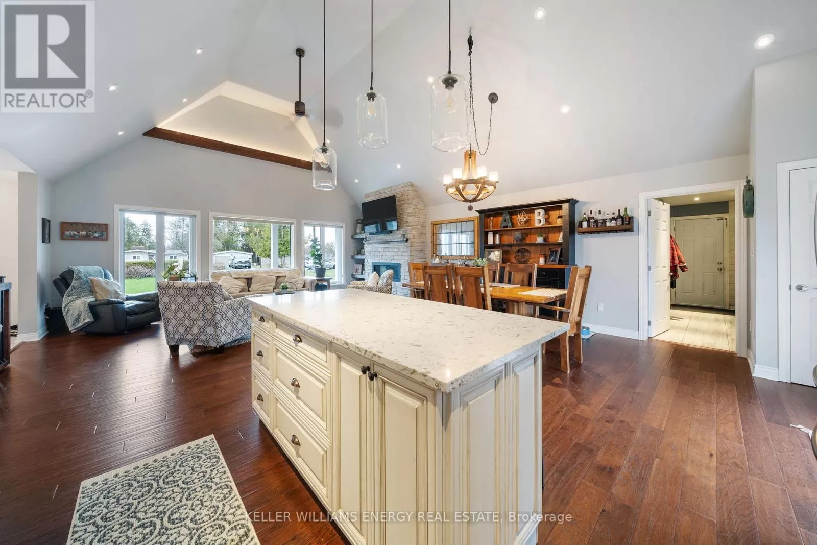 Cross Streets: Concession & Lagoon. ** Directions: Hwy 35 North toCountry Rd 121, Right on Francis St, Right on Lagoon Dr. Discover this incredible custom-built 3 bedroom, 2 bathroom home, offering a perfect blend of luxury and comfort just minutes from scenic Sturgeon Lake and 0.5km from the boat launch. This upgraded home features a stunning 19-foot vaulted ceiling in the main living area, creating a grand, open atmosphere, enhanced by a cozy gas fireplace. The kitchen boasts quartz counters and breakfast bar next to the formal dining area. Step out onto the expansive 45'x12' rear deck - perfect for entertaining or relaxing with a cup of morning coffee. Enjoy the convenience of main floor laundry and direct access to the oversized, double insulated attached garage. The finished lower level provides a den and versatile rec space complete with an electric fireplace - ideal for extended family or guests. This move-in ready home combines comfort, style and a fantastic location surrounded by nature! **Roof, furnace, AC all approx 2015, septic 2023, HWT is owned (id:27476)