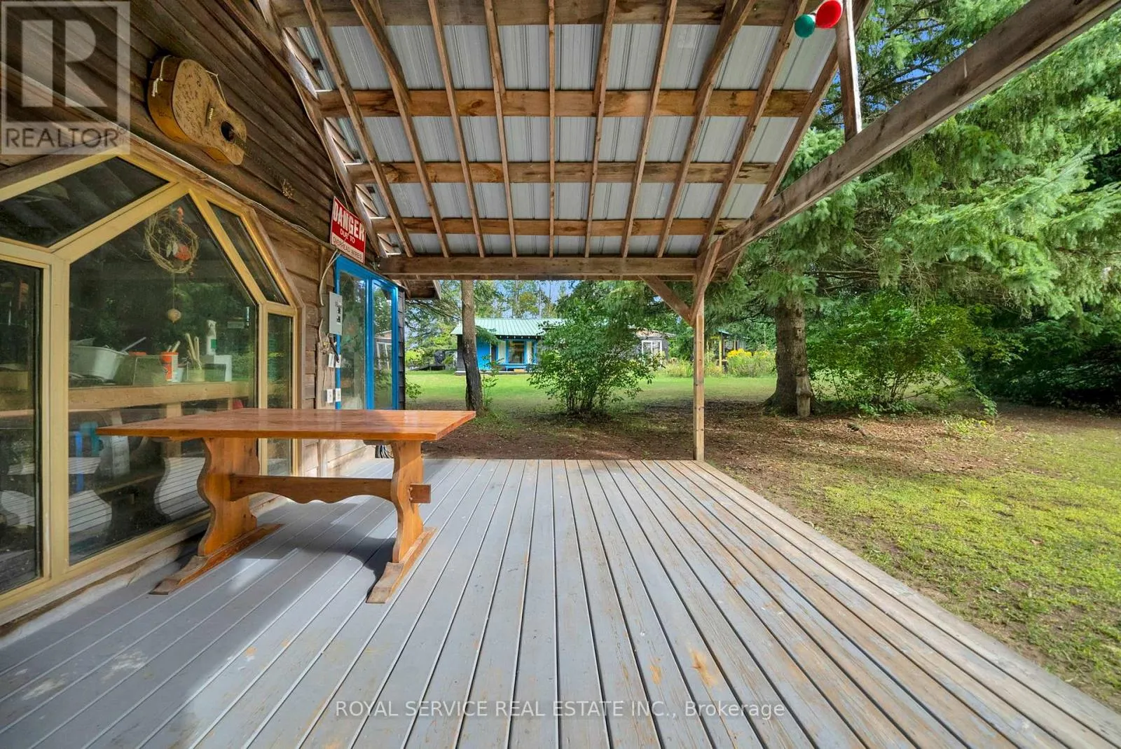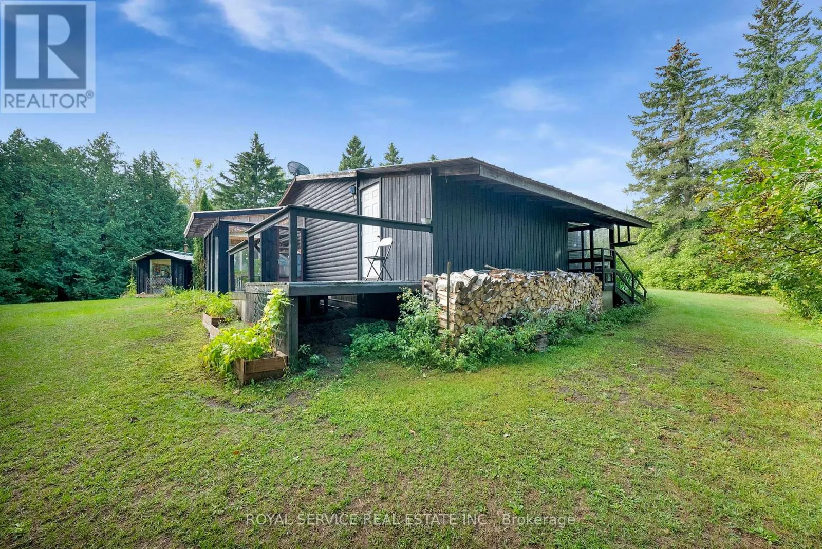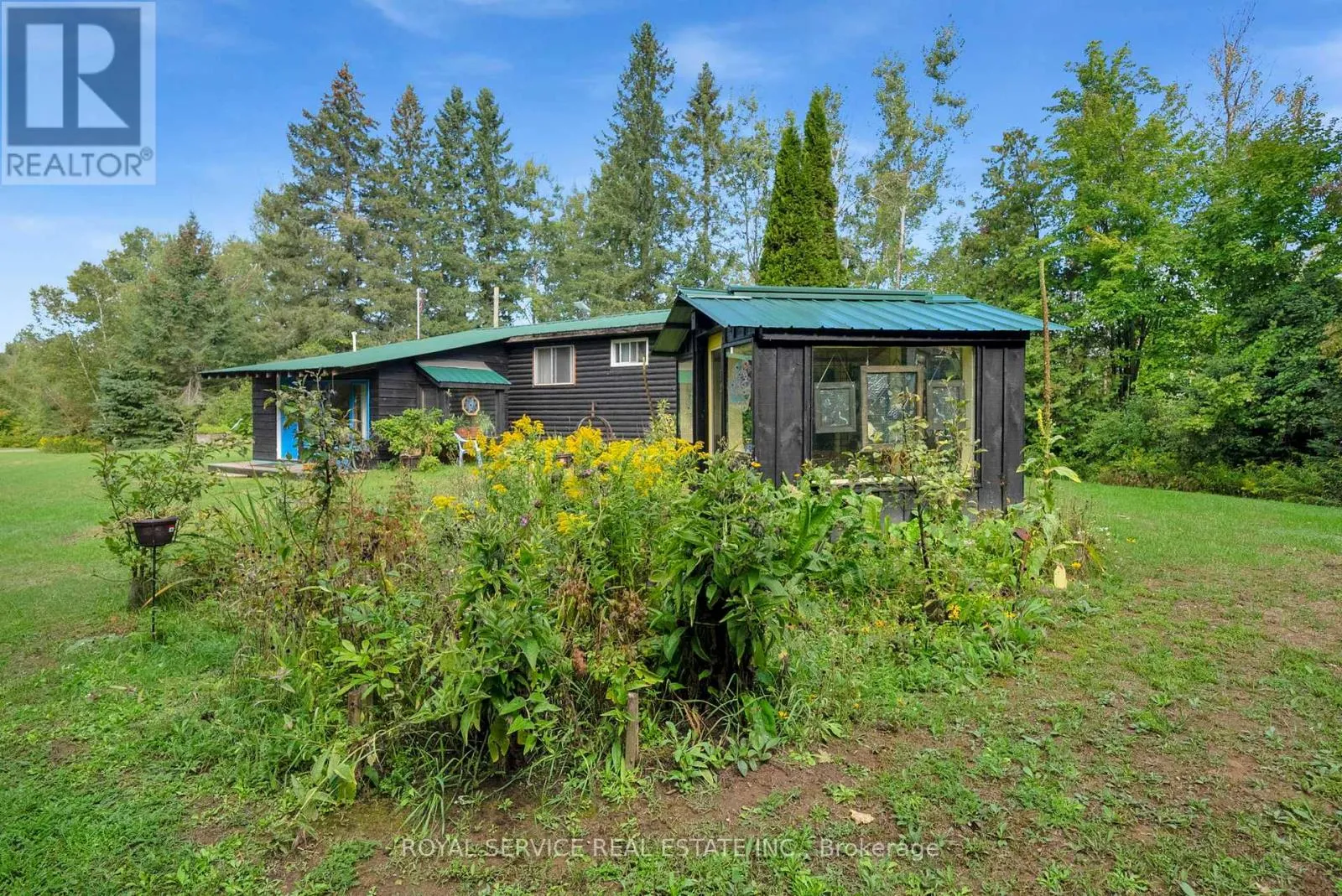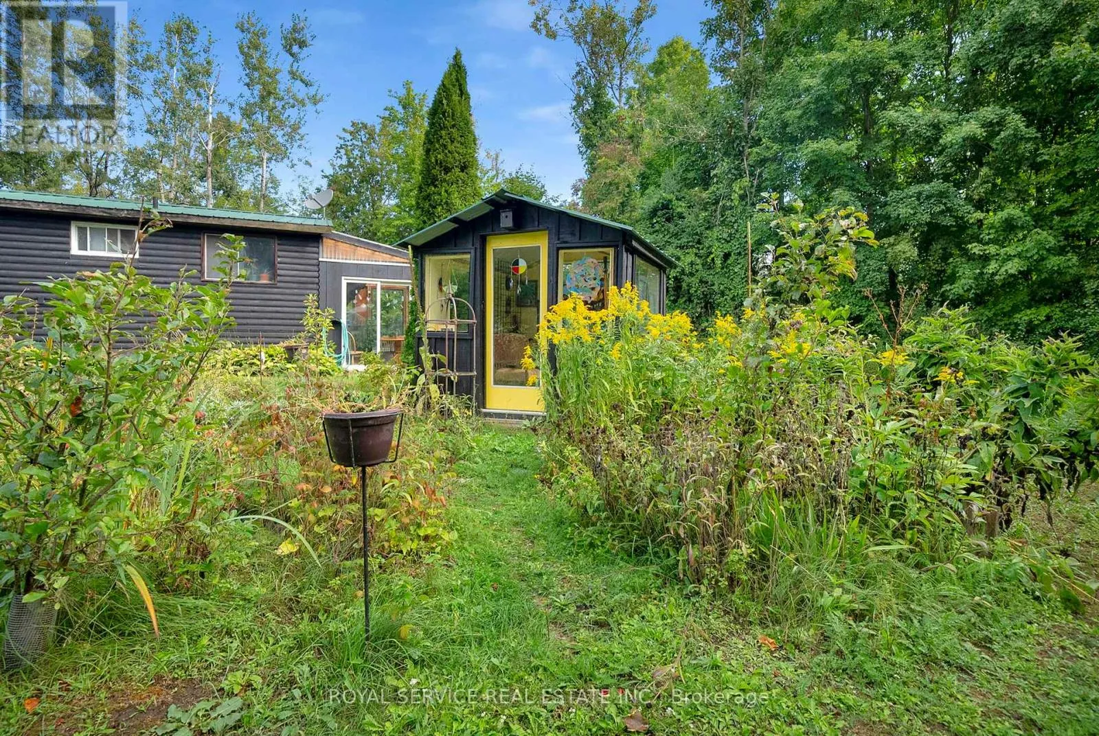 Cross Streets: Old Mill/Pigeon Creek Rd. ** Directions: Take Fleetwood Rd Off of 35. Go East till you reach OldMill. Go North to PIgeon Creek Rd and Go East 2 properties. Are you looking for a versatile and charming artists' retreat? This private 6+ Acres home includes a workshop/studio/stage, large cleared area, fish pond, greenhouse, sauna, carport and offers an incredible amount of potential and livability. The open concept home offers a large open kitchen/dining/living room area with wood stove that provides ample heat. The grounds include a mix of hardwood trees, multiple, large cleared areas, supreme privacy, a small studio, a greenhouse, a front and back porch and deck, a bird viewing are, as well as a sauna attached to the home. The workshop could function as both wood-working place or sewing/artists studio or perhaps converted into a granny flat. The home has 3 bedrooms and a 3pc washroom. A The property has gorgeous colours in the fall and has several charming places for exploring the hardwoods. It is a wonderful property for holding large functions. With some added renovations to the home this property could be exceptional. (id:27476)