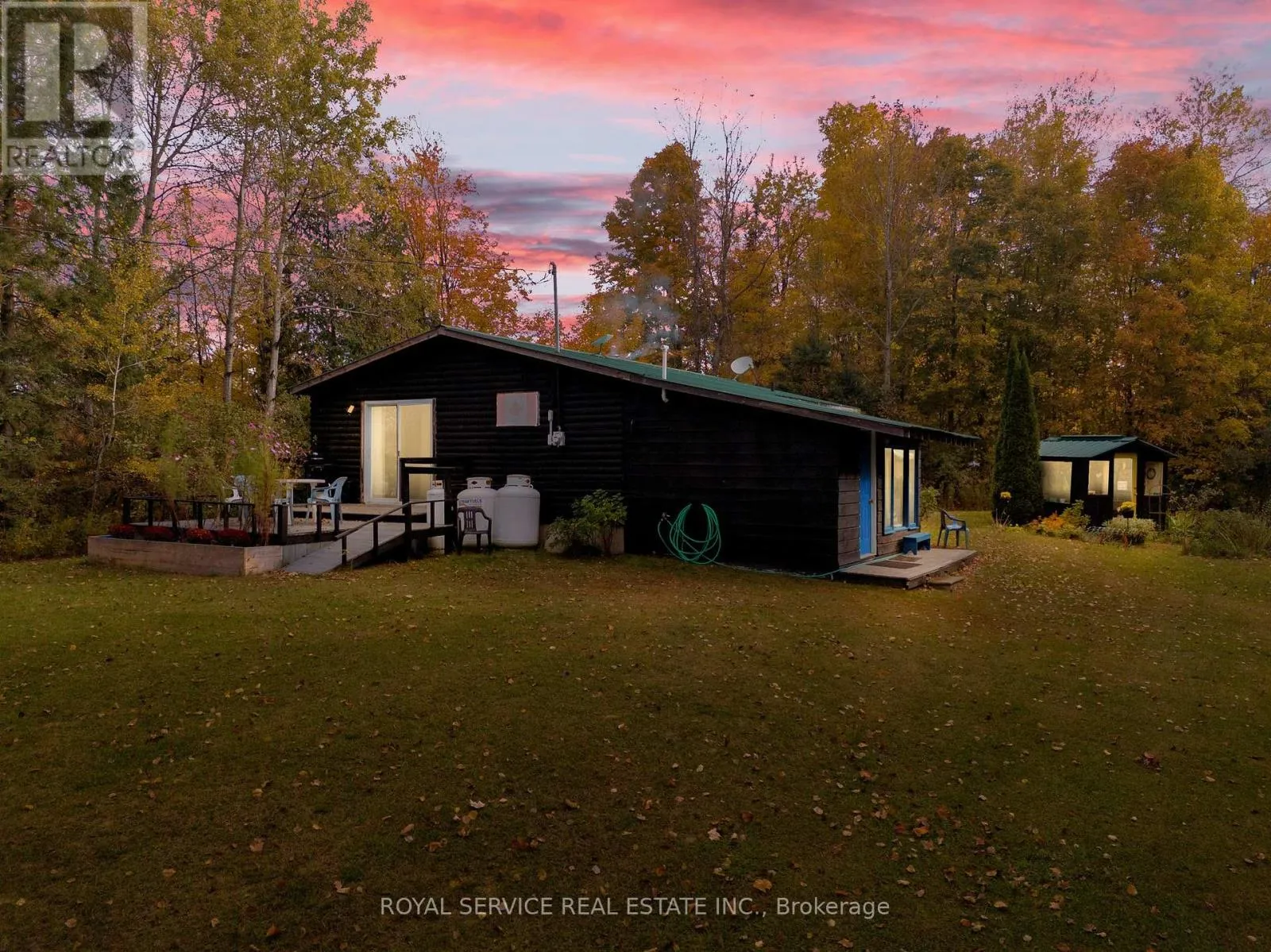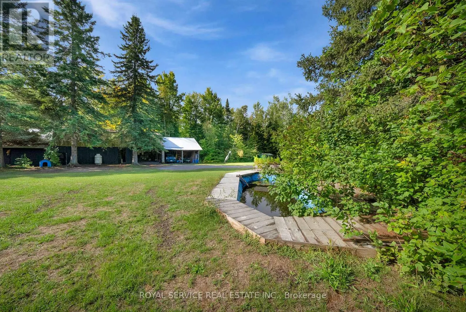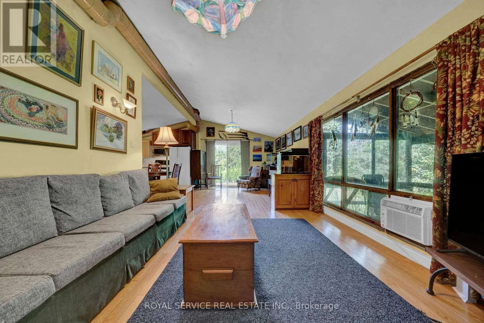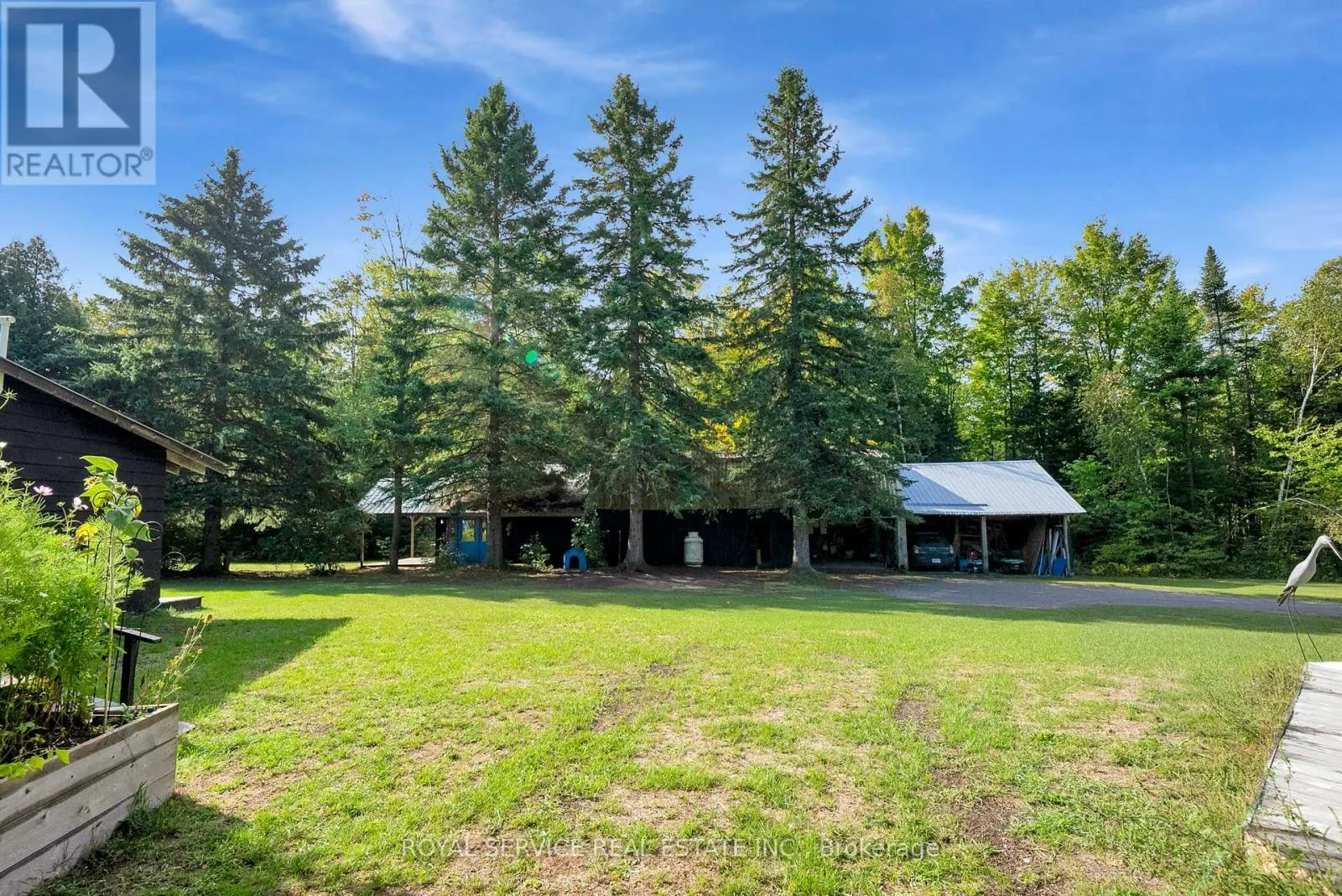 Cross Streets: Old Mill/Pigeon Creek Rd. ** Directions: Take Fleetwood Rd Off of 35. Go East till you reach OldMill. Go North to PIgeon Creek Rd and Go East 2 properties. Are you looking for a versatile and charming artists' retreat? This private 6+ Acres home includes a workshop/studio/stage, large cleared area, fish pond, greenhouse, sauna, carport and offers an incredible amount of potential and livability. The open concept home offers a large open kitchen/dining/living room area with wood stove that provides ample heat. The grounds include a mix of hardwood trees, multiple, large cleared areas, supreme privacy, a small studio, a greenhouse, a front and back porch and deck, a bird viewing are, as well as a sauna attached to the home. The workshop could function as both wood-working place or sewing/artists studio or perhaps converted into a granny flat. The home has 3 bedrooms and a 3pc washroom. A The property has gorgeous colours in the fall and has several charming places for exploring the hardwoods. It is a wonderful property for holding large functions. With some added renovations to the home this property could be exceptional. (id:27476)