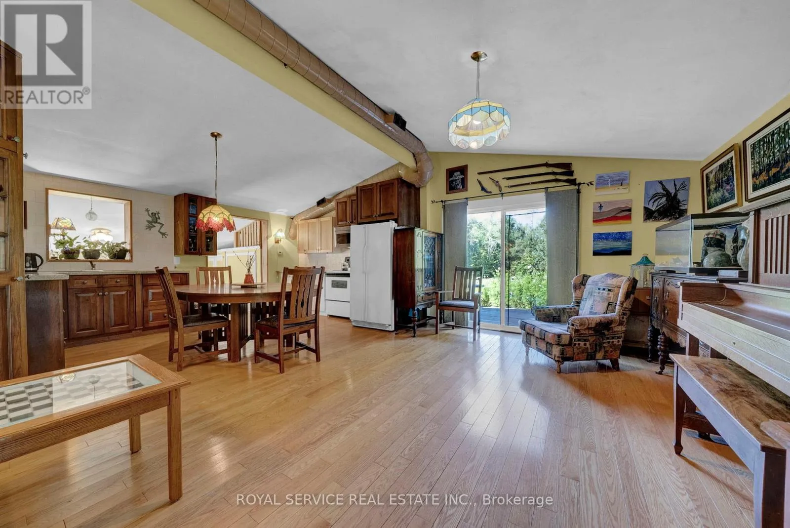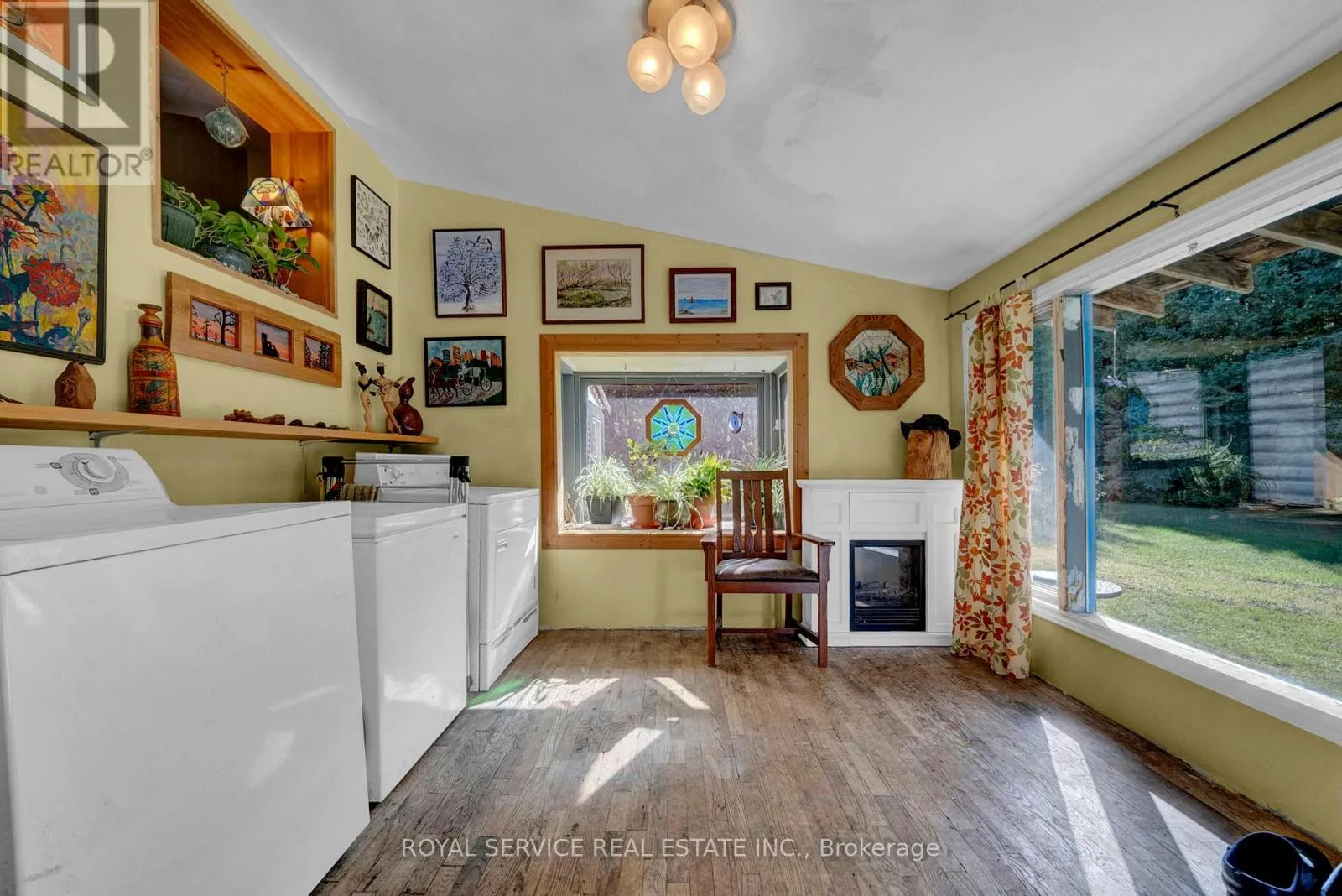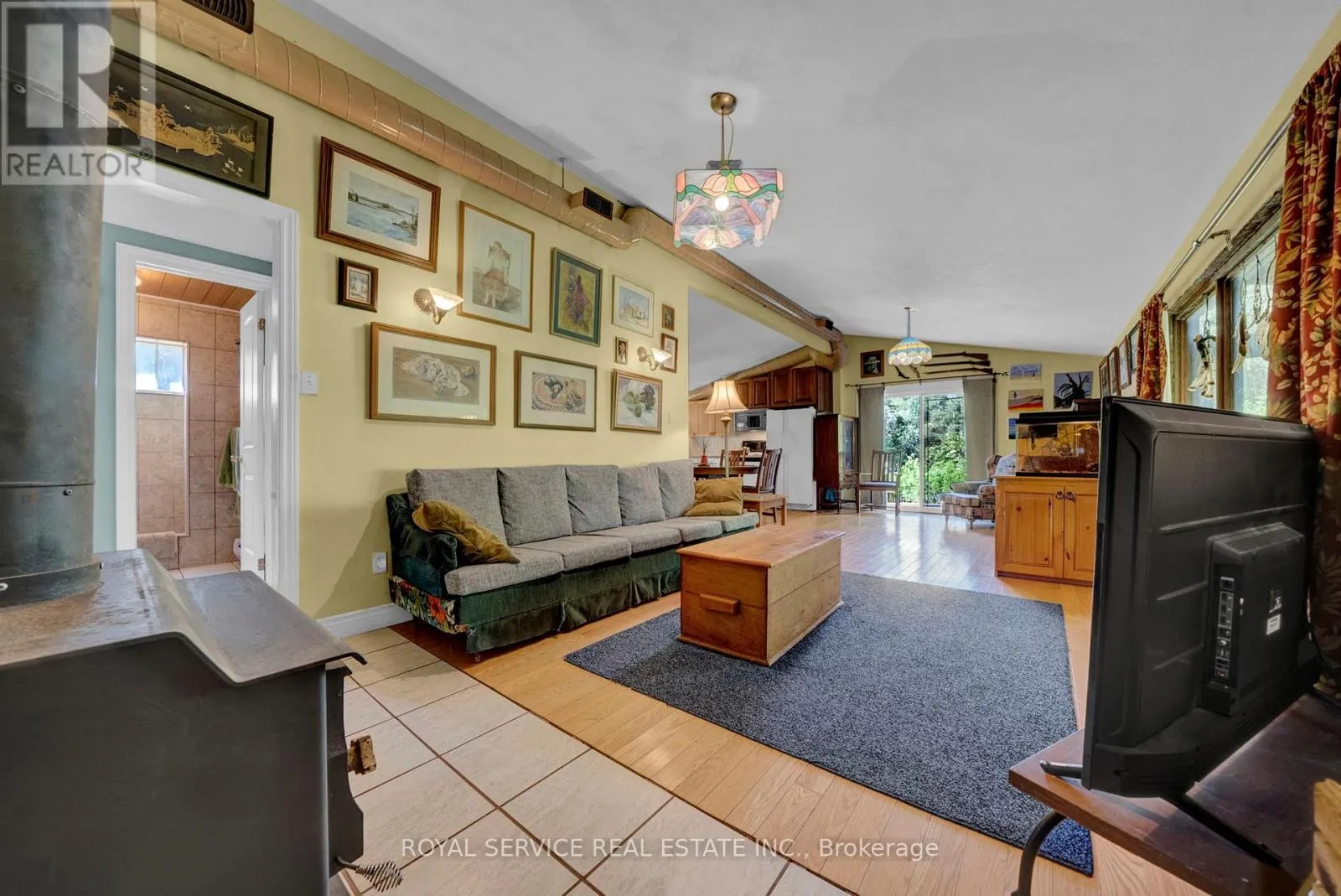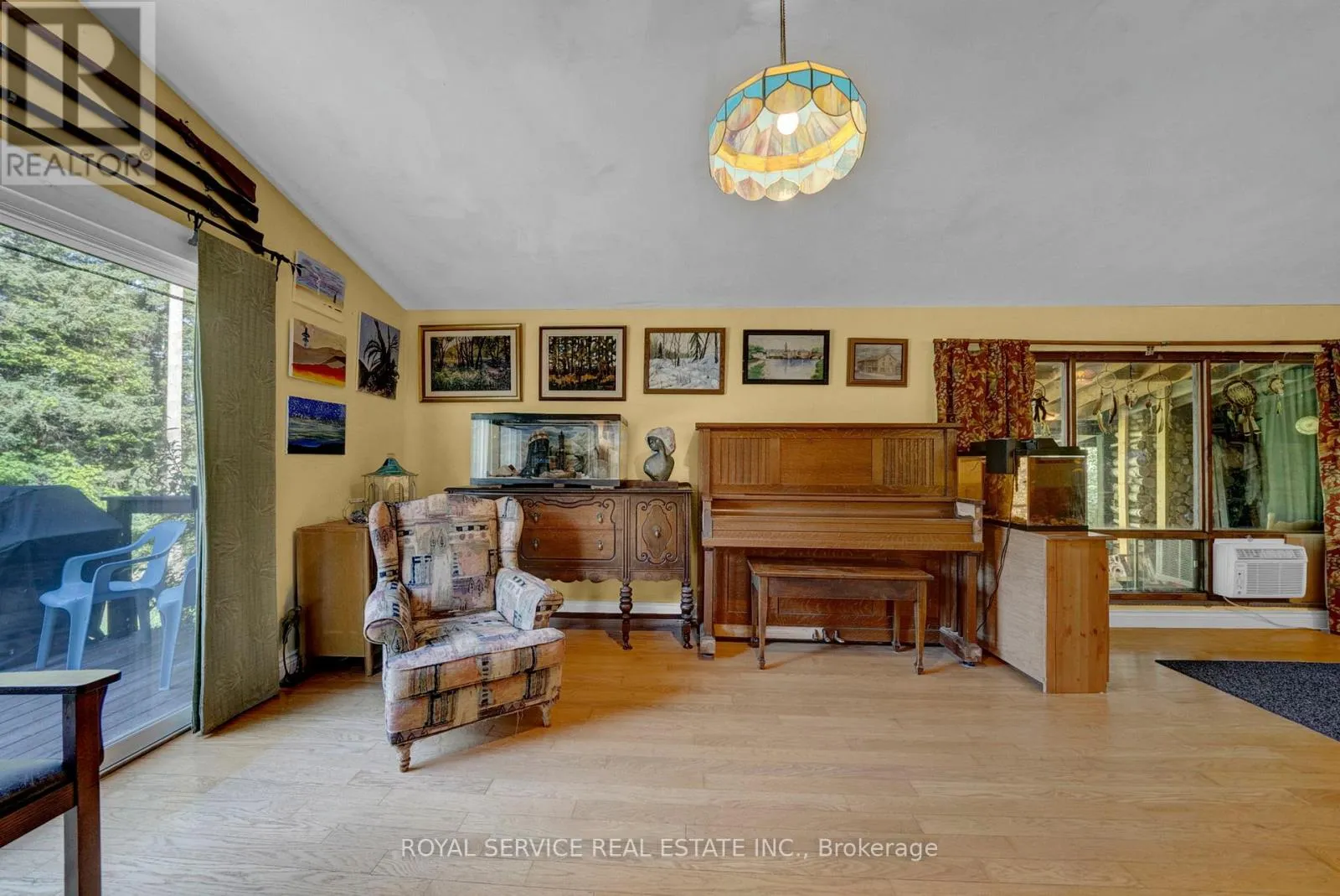 Cross Streets: Old Mill/Pigeon Creek Rd. ** Directions: Take Fleetwood Rd Off of 35. Go East till you reach OldMill. Go North to PIgeon Creek Rd and Go East 2 properties. Are you looking for a versatile and charming artists' retreat? This private 6+ Acres home includes a workshop/studio/stage, large cleared area, fish pond, greenhouse, sauna, carport and offers an incredible amount of potential and livability. The open concept home offers a large open kitchen/dining/living room area with wood stove that provides ample heat. The grounds include a mix of hardwood trees, multiple, large cleared areas, supreme privacy, a small studio, a greenhouse, a front and back porch and deck, a bird viewing are, as well as a sauna attached to the home. The workshop could function as both wood-working place or sewing/artists studio or perhaps converted into a granny flat. The home has 3 bedrooms and a 3pc washroom. A The property has gorgeous colours in the fall and has several charming places for exploring the hardwoods. It is a wonderful property for holding large functions. With some added renovations to the home this property could be exceptional. (id:27476)