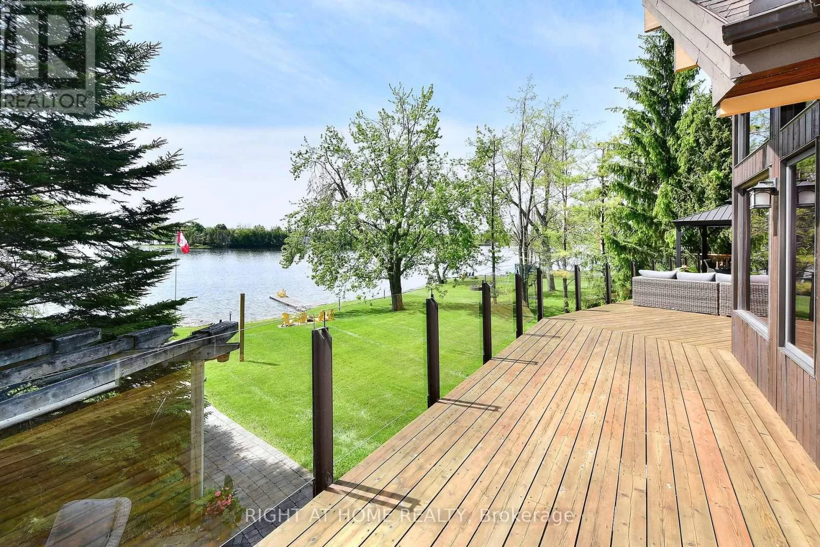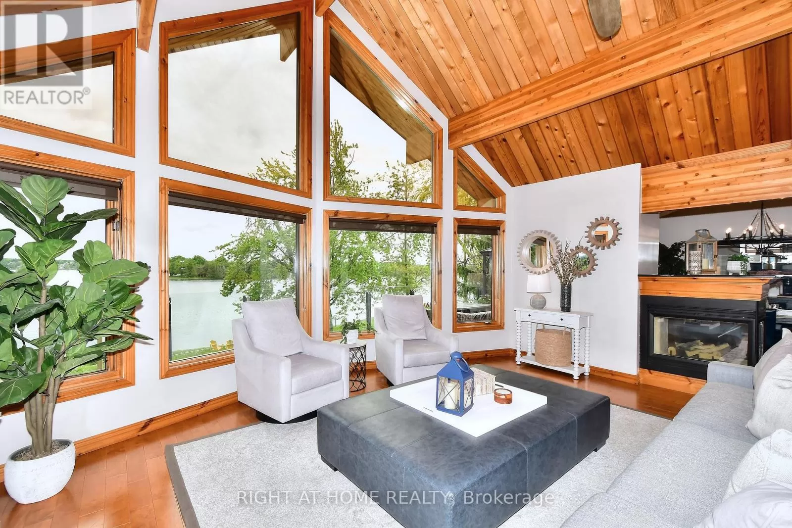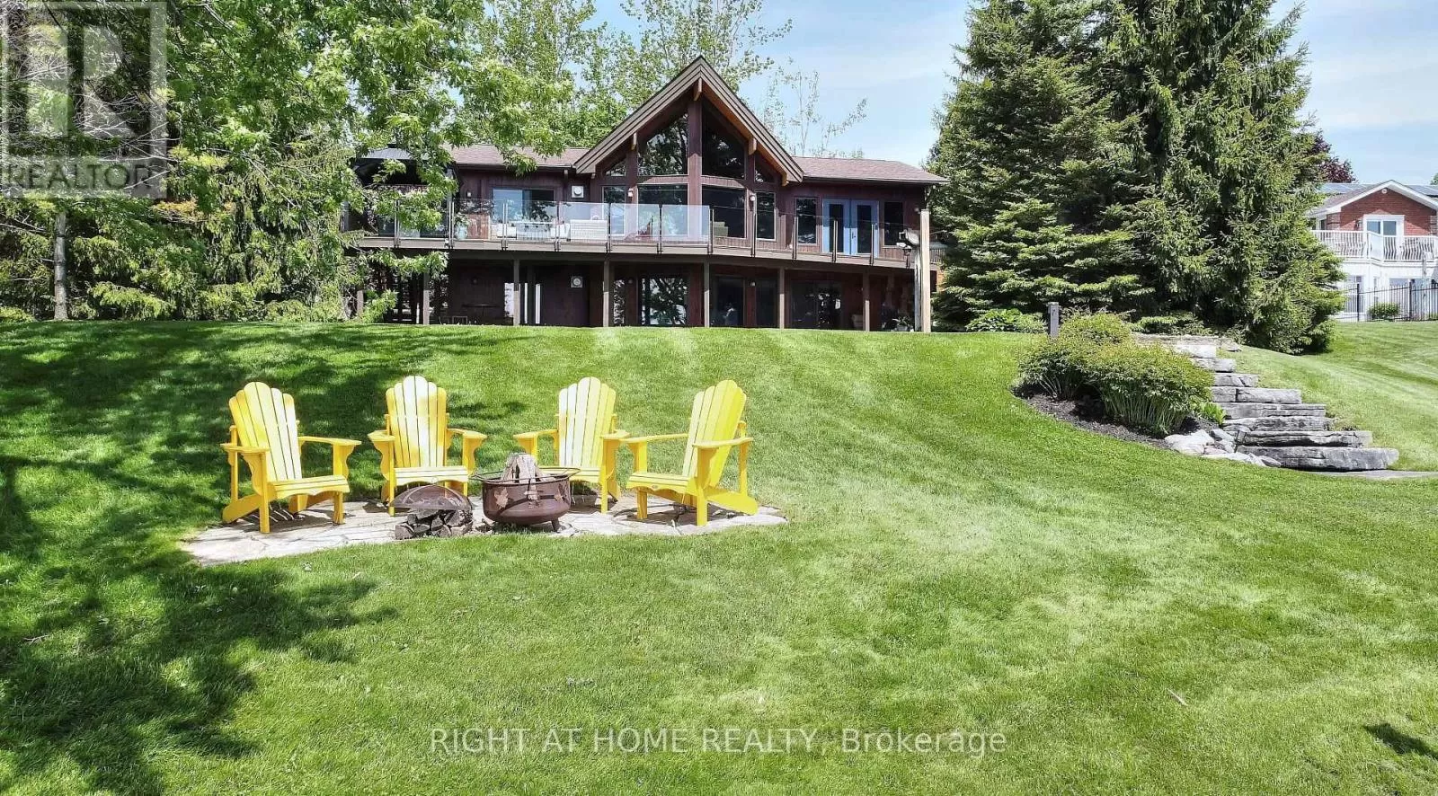 Cross Streets: Frank Hill Rd/Valley Rd/Scenic Hill Rd. ** Directions: From Frank Hill Rd, East on Valley Rd, South on Scenic Hill Rd, West on Lawson Crt. Discover exceptional waterfront luxury in this custom-built Linwood Executive Bungalow, nestled on a quiet, municipally serviced cul-de-sac along the tranquil shores of Chemong Lake, part of the renowned Trent Severn Waterway. Offering over 2,930 sq ft of finished living space, this stunning 3 bedroom, 3 bath home is ideal as a year-round residence or upscale cottage retreat. Step inside to an open-concept design highlighted by a breathtaking great room with soaring 16 ft vaulted wood ceilings & dramatic windows that flood the space with natural light & showcase incredible panoramic lake vistas. A 3-sided gas fireplace adds warmth & ambiance, creating an inviting space for relaxation & entertaining. Extensive upgrades include a stylish updated kitchen feat. quartz countertops, tile backsplash, sleek white cabinetry & premium stainless steel appliances-truly a chefs dream. Warm hardwood floors, designer lighting & a neutral palette create a refined yet comfortable atmosphere throughout. The main floor primary suite boasts a spa-like ensuite bath with jetted tub & separate glass shower. Multiple walkouts from the kitchen, dining room & primary suite open to over 650 sq ft of cedar decking with glass railings, offering seamless indoor-outdoor living ideal for entertaining or enjoying serene lake views. The walkout lower level includes a spacious family room with wall-to-wall windows overlooking the lake, a wet bar, cozy gas fireplace, indoor sauna & 4 piece bath adjacent to two bedroomsperfect for guests. Professionally landscaped grounds feat. interlock stone patios, gardens, armour stone shoreline & a private sand beach for easy water access. Boating enthusiasts will appreciate the R & J lift-up dock, providing secure storage & access to Chemong, Buckhorn & Pigeon Lakes. This rare waterfront estate combines luxury, lifestyle, and location, just 10 mins to Bridgenorth, 15 mins to Peterborough & under 90 mins from GTA. Experience the very best of Kawartha Lakes living. (id:27476)