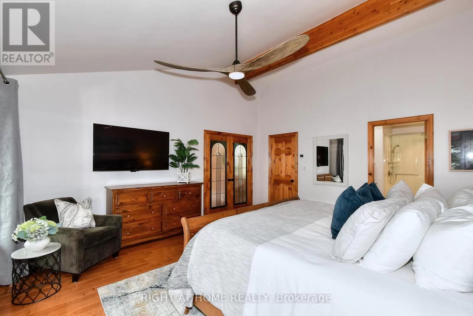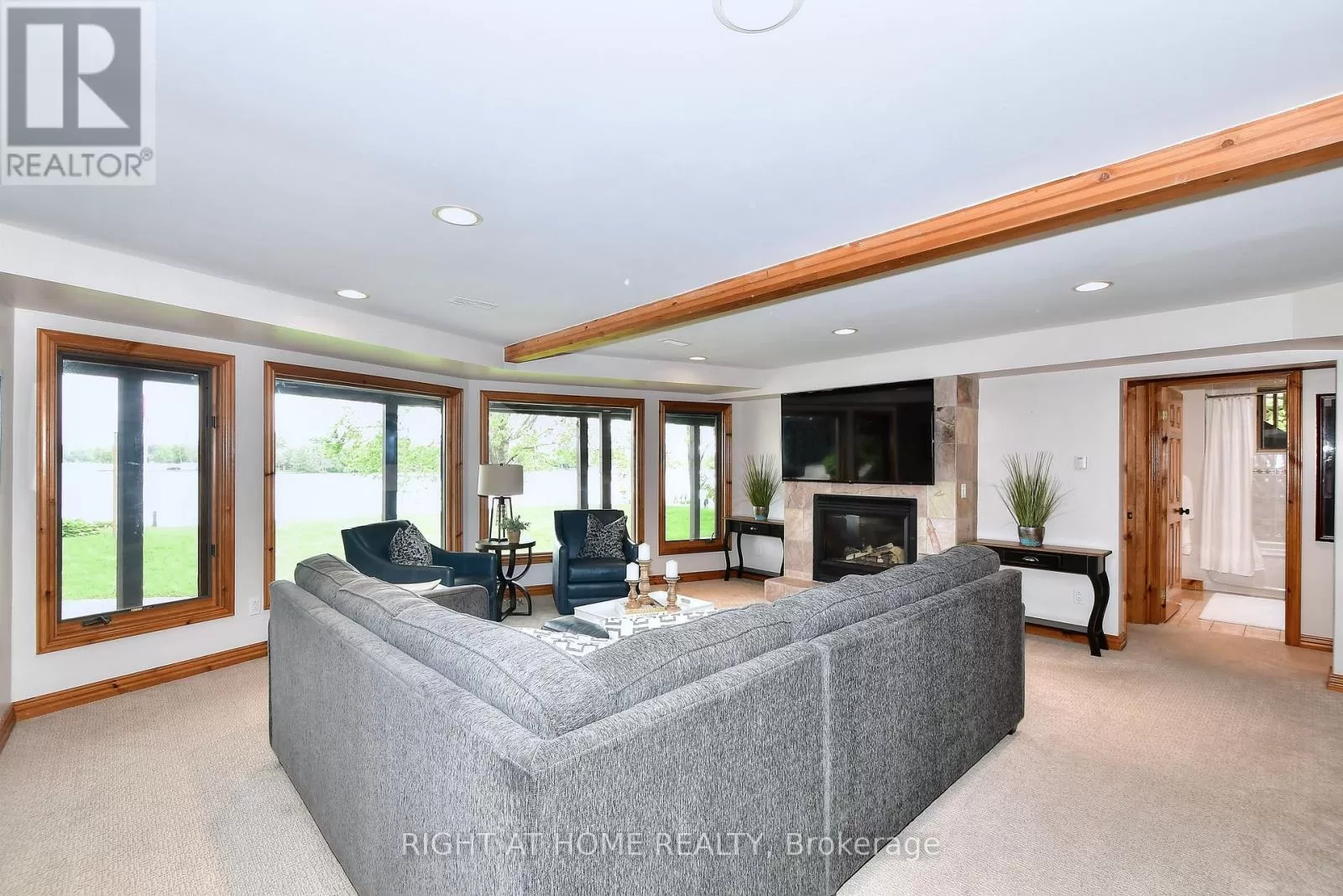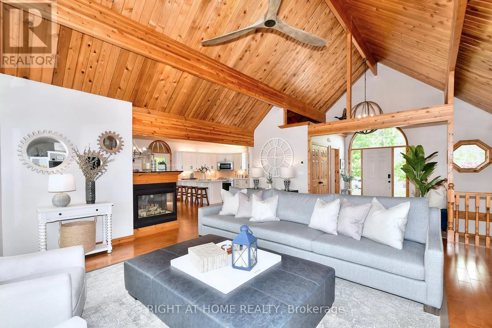 Cross Streets: Frank Hill Rd/Valley Rd/Scenic Hill Rd. ** Directions: From Frank Hill Rd, East on Valley Rd, South on Scenic Hill Rd, West on Lawson Crt. Discover exceptional waterfront luxury in this custom-built Linwood Executive Bungalow, nestled on a quiet, municipally serviced cul-de-sac along the tranquil shores of Chemong Lake, part of the renowned Trent Severn Waterway. Offering over 2,930 sq ft of finished living space, this stunning 3 bedroom, 3 bath home is ideal as a year-round residence or upscale cottage retreat. Step inside to an open-concept design highlighted by a breathtaking great room with soaring 16 ft vaulted wood ceilings & dramatic windows that flood the space with natural light & showcase incredible panoramic lake vistas. A 3-sided gas fireplace adds warmth & ambiance, creating an inviting space for relaxation & entertaining. Extensive upgrades include a stylish updated kitchen feat. quartz countertops, tile backsplash, sleek white cabinetry & premium stainless steel appliances-truly a chefs dream. Warm hardwood floors, designer lighting & a neutral palette create a refined yet comfortable atmosphere throughout. The main floor primary suite boasts a spa-like ensuite bath with jetted tub & separate glass shower. Multiple walkouts from the kitchen, dining room & primary suite open to over 650 sq ft of cedar decking with glass railings, offering seamless indoor-outdoor living ideal for entertaining or enjoying serene lake views. The walkout lower level includes a spacious family room with wall-to-wall windows overlooking the lake, a wet bar, cozy gas fireplace, indoor sauna & 4 piece bath adjacent to two bedroomsperfect for guests. Professionally landscaped grounds feat. interlock stone patios, gardens, armour stone shoreline & a private sand beach for easy water access. Boating enthusiasts will appreciate the R & J lift-up dock, providing secure storage & access to Chemong, Buckhorn & Pigeon Lakes. This rare waterfront estate combines luxury, lifestyle, and location, just 10 mins to Bridgenorth, 15 mins to Peterborough & under 90 mins from GTA. Experience the very best of Kawartha Lakes living. (id:27476)