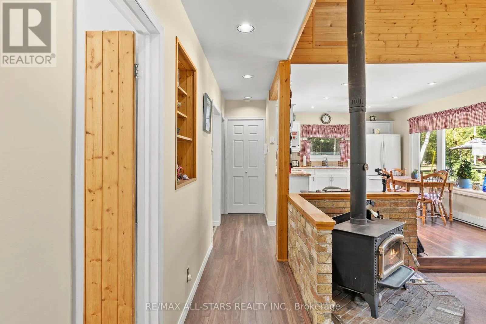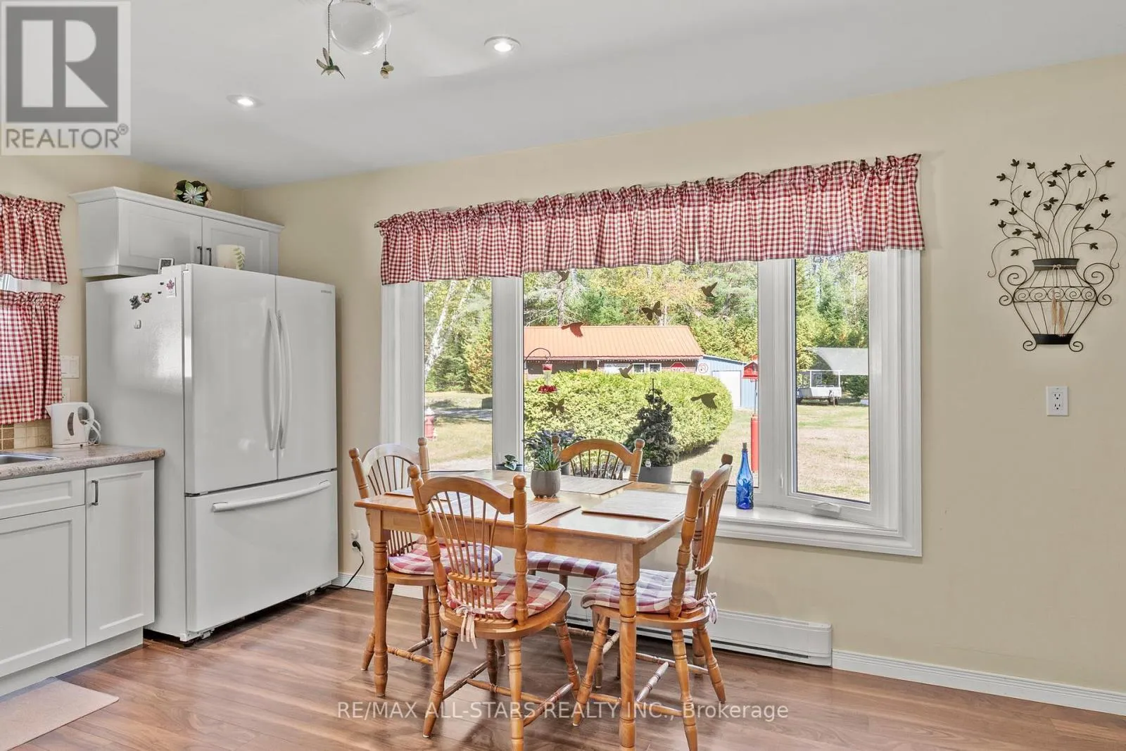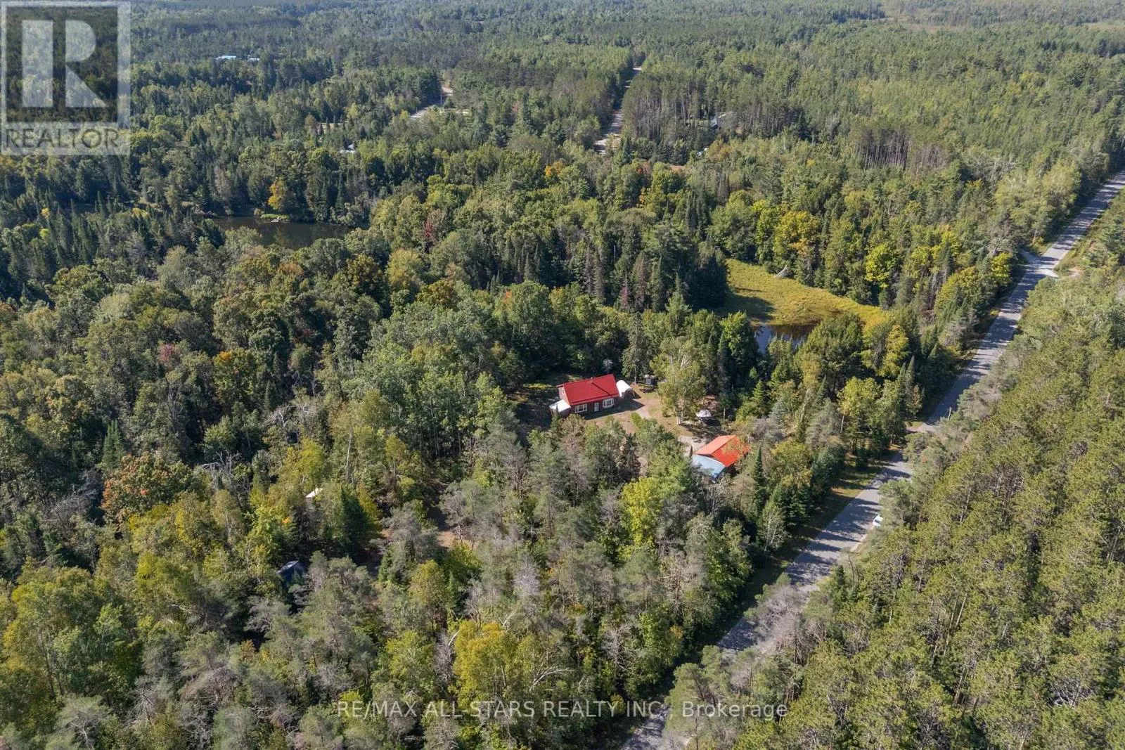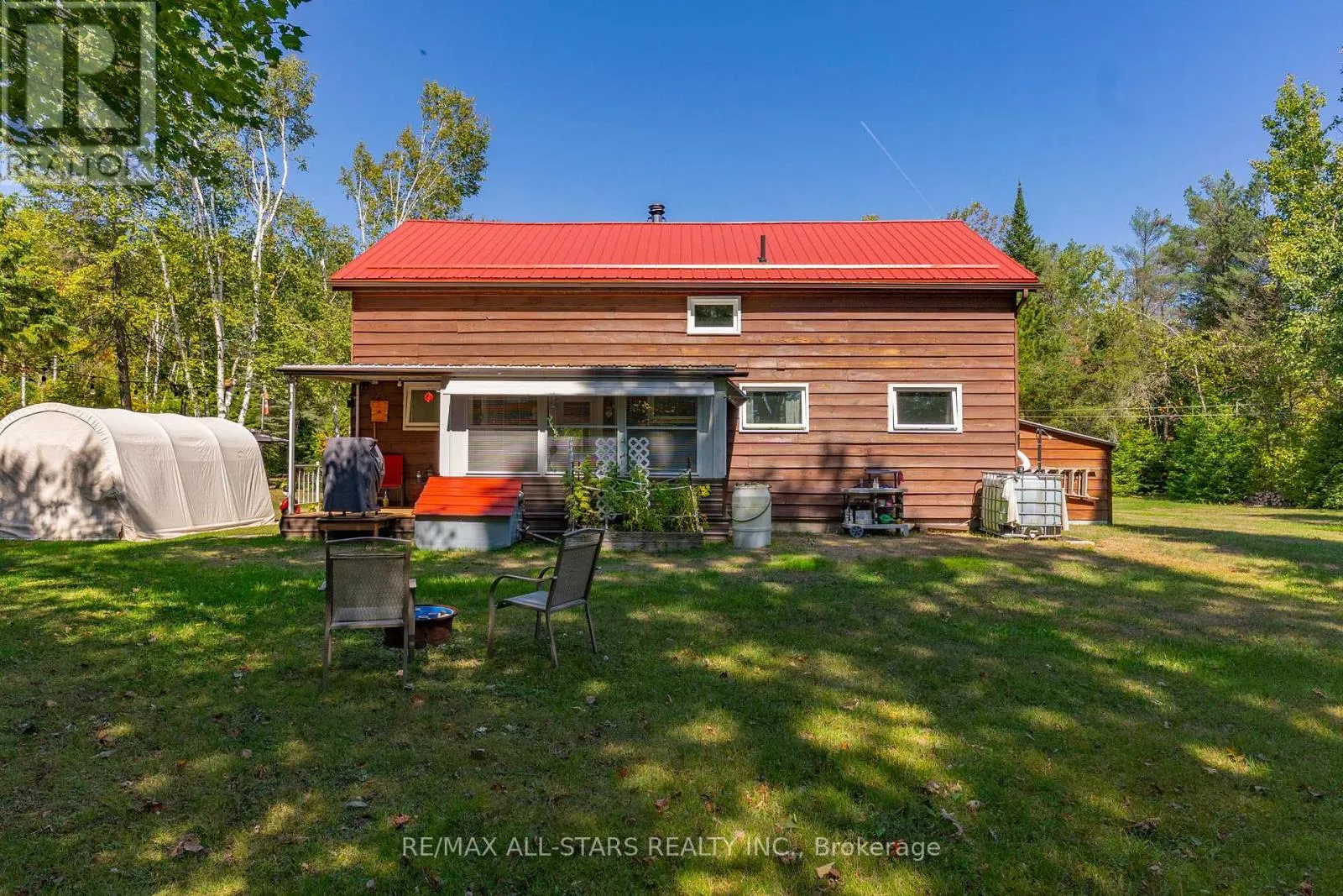 Cross Streets: Pinery/Concession 11. ** Directions: Hwy 121 to concession 11. Step into this inviting 3 bedroom, 1 bathroom, open concept home, where vaulted ceilings and sun filled windows frame a cozy wood stove at the heart of the living space. Situated on over 2 acres with direct river access and no immediate neighbours, it offers the perfect blend of privacy and natural beauty. This well maintained property features a detached two car garage and a spacious circular driveway, providing plenty of room for vehicles and recreational toys. Energy efficient triple pane windows and a durable metal roof add peace of mind, while a convenient indoor storage area, currently used for firewood makes winter refills effortless. Adventure is right outside your door with the 85 km Victoria Rail Trail just steps away, perfect for snowmobiling, ATVing, dirt biking or scenic year round walks. Everyday conveniences are within easy reach, with mail and garbage/recycling pickup at the end of the driveway, quick access to Highway 121 and Monck Road and only 6 km to the town of Kinmount. Located on a school bus route, this home combines privacy with practicality. Here, peace, comfort and adventure meet, your private piece of paradise awaits! (id:27476)