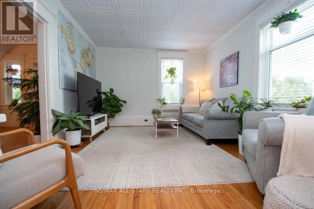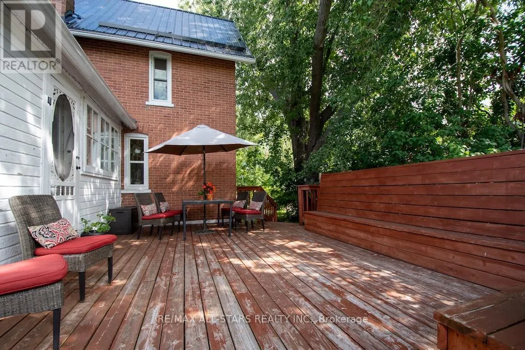 Cross Streets: Colborne & Louisa. ** Directions: Colborne St to Louisa. Charming century home with timeless character and modern updates! This beautifully maintained, 2.5-storey, all-brick home offers over 2,100 sq ft of living space and is filled with original character, while all the important updates have been completed for you. Featuring a welcoming covered wraparound front porch, wide baseboards, crown moulding, french doors, two staircases, and gleaming hardwood floors throughout, this home blends historic charm with modern convenience.The main floor boasts a spacious living room, cozy family room, and a large formal dining room. The bright kitchen offers direct access to a generous-sized deck and a private backyard, perfect for entertaining or family fun. Upstairs, you'll find three bedrooms, plus an office, as well as an enclosed three-season sun porch. The beautifully finished walk-up attic loft provides excellent additional living space. Meticulously cared for, this home includes numerous important updates including a high-efficiency Viessmann boiler with a new heat exchanger (2025), nearly all windows replaced with high-efficiency Nortech windows (2012-2018), updated wiring & plumbing, a durable steel roof (2012), and freshly painted interior. The basement has been professionally waterproofed and the exterior brick repointed, ensuring long-lasting durability. Ideally located on a quiet residential street close to shops, schools, and beautiful Garnet Graham Beachfront Park, this home offers the perfect combination of historic craftsmanship, modern efficiency, and prime location. (id:27476)