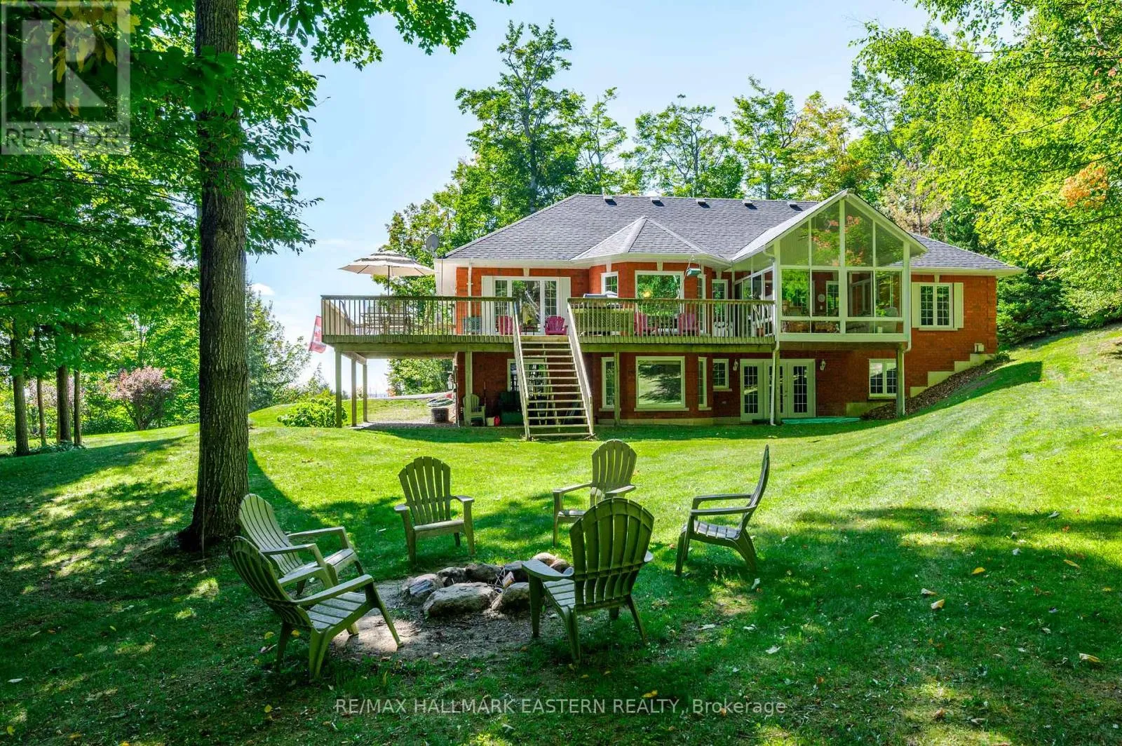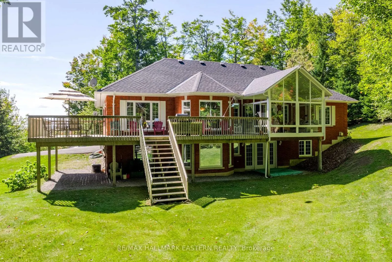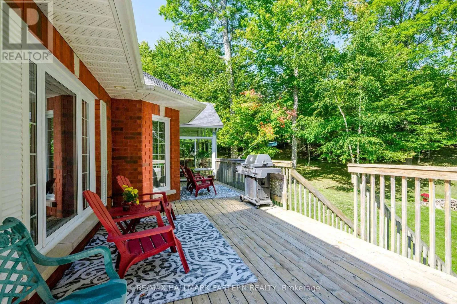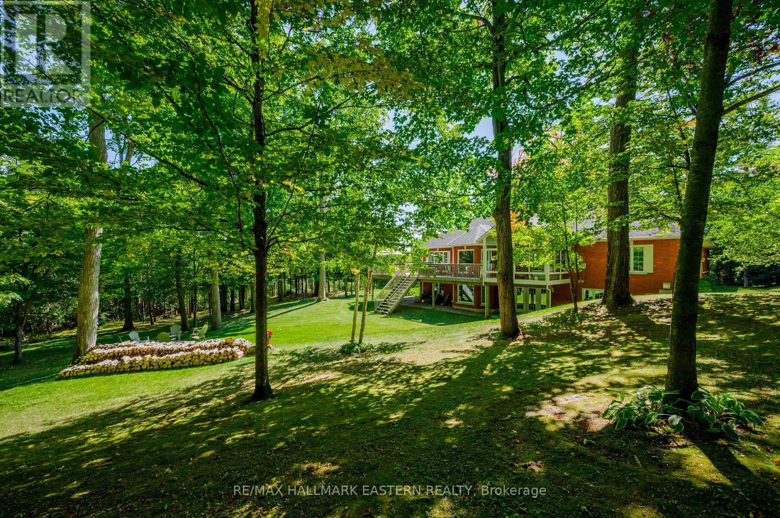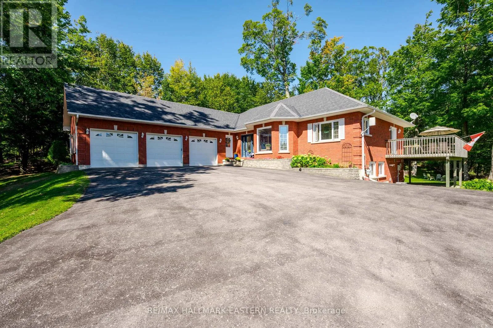 Cross Streets: Ski Hill Rd. ** Directions: Ski Hill Rd HWY 7A. Welcome to this custom-built, all-brick executive bungalow, offering nearly 4,000 sq ft of impeccably designed living space on a breathtaking treed and landscaped property. Privately set surrounded by nature, this residence blends refined elegance with everyday functionality. Step inside to a sun-filled, open-concept great room, where tray ceilings and a cozy gas fireplace set the stage for gatherings. The adjoining formal dining area flows seamlessly into the gourmet eat-in kitchen, complete with a centre island, built-in wine racks, and thoughtful finishes tailored to the culinary enthusiast. A wall of windows draws you into the three-season sunroom, a serene retreat with a walkout to the expansive wrap-around deck perfect for soaking in the beauty of the surrounding landscape. The primary suite is private featuring 5-piece ensuite with heated floors, a walk-in closet, and another walkout to the deck. A second bedroom enjoys private access to the main 4-piece bath, while a versatile den/office, convenient 2-piece powder room, and main-floor laundry add to the homes thoughtful design. The triple-car garage is fully insulated and accessible through the mudroom, offering convenience. The lower level recreation room features a second gas fireplace, and games area with pool table perfect for entertaining. The third bedroom connects to 3-piece bath. Another walkout takes you directly to the landscaped backyard oasis. This remarkable property offers privacy, tranquility, and beauty at every turn. Mature trees, curated gardens, and abundant wildlife create a peaceful backdrop for daily living, making this an ideal home for those who value both style and serenity. Bethany is a picturesque village known for its rolling hills, trails, and warm community feel. With quick access to Highway 7A and 115, commuters will appreciate the easy connections to Peterborough, Durham, and the GTA. (id:27476)