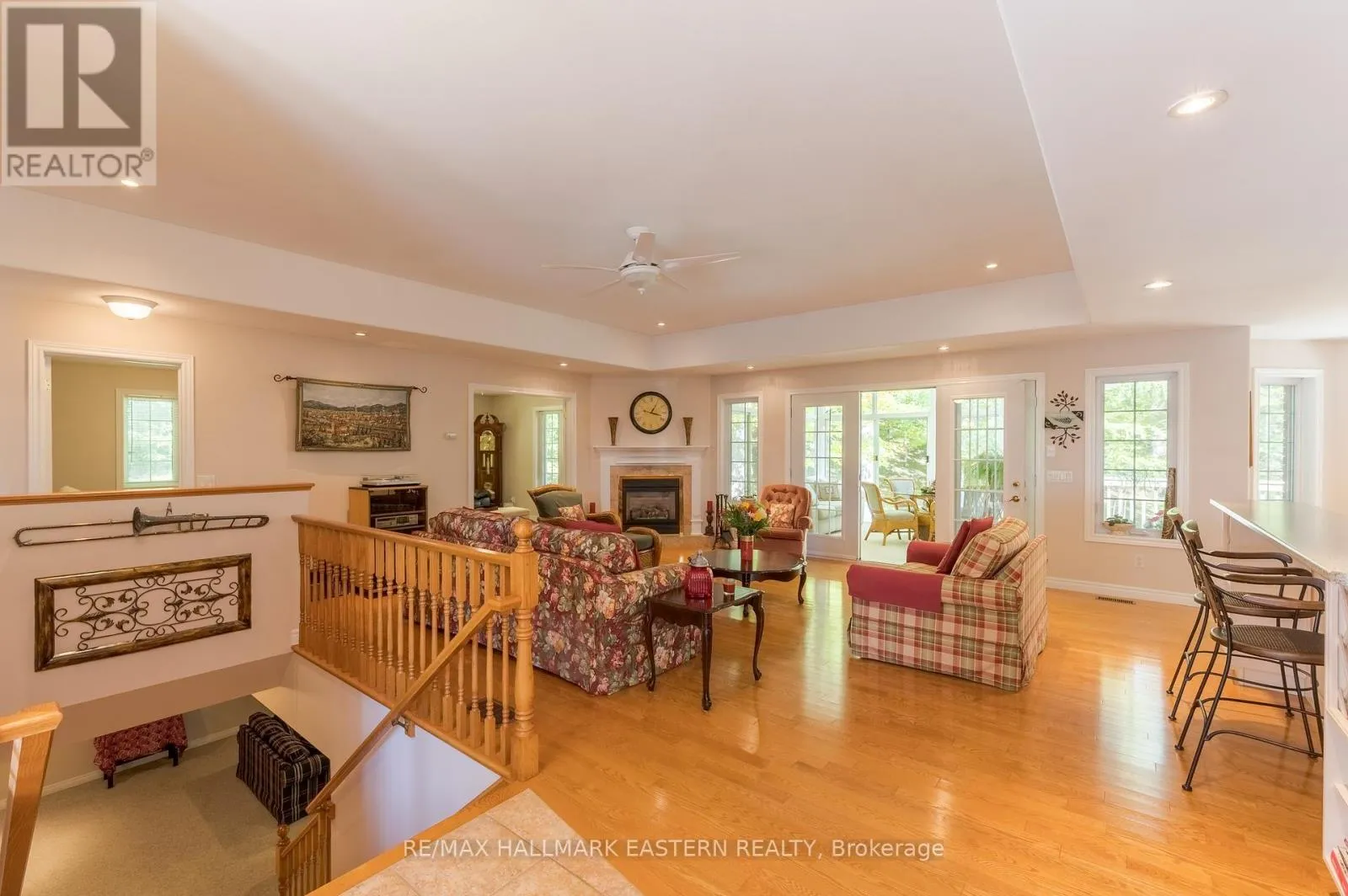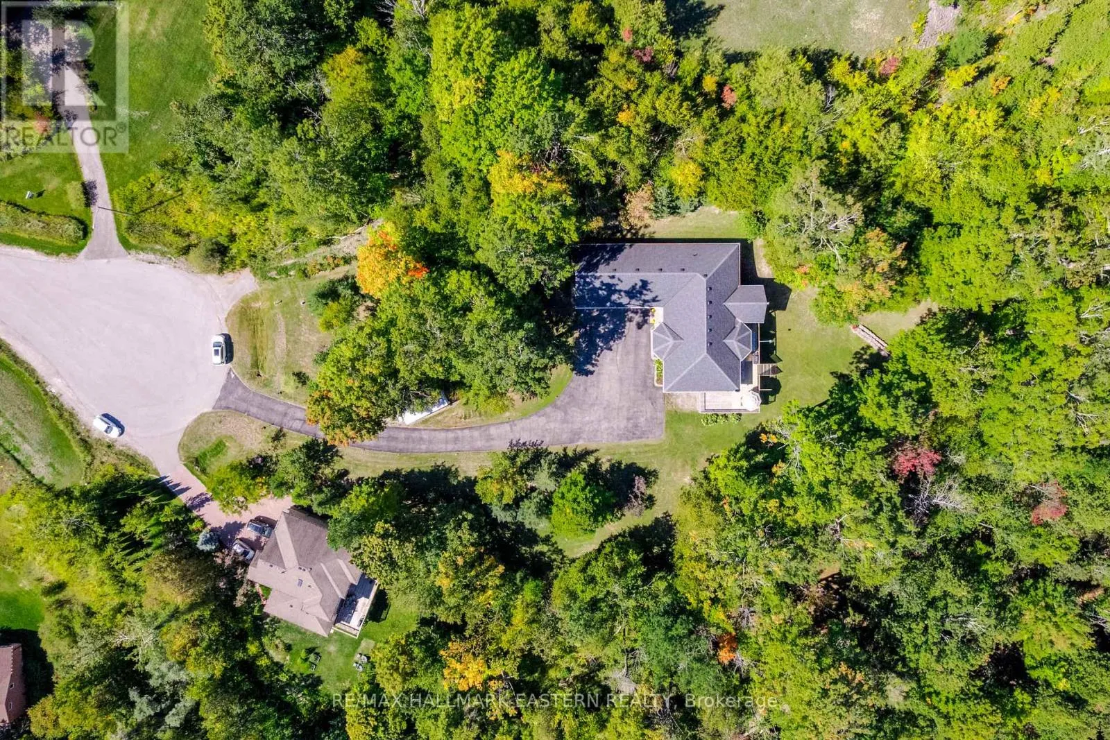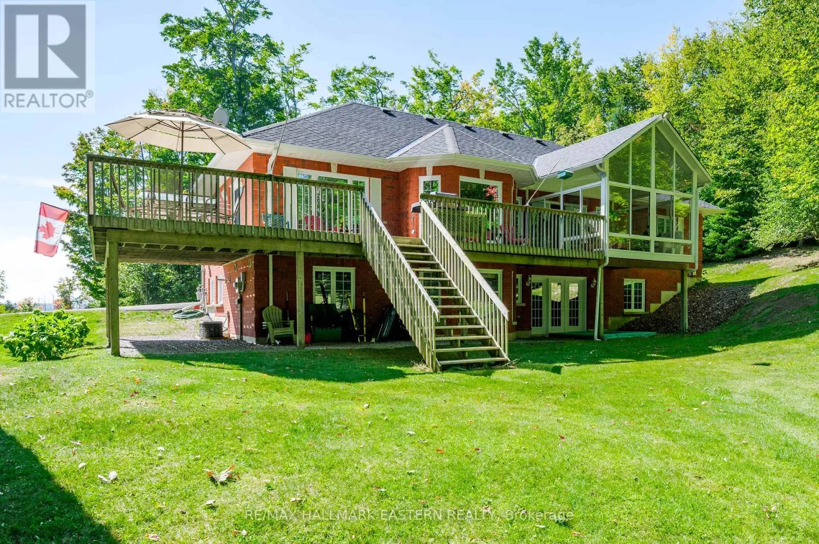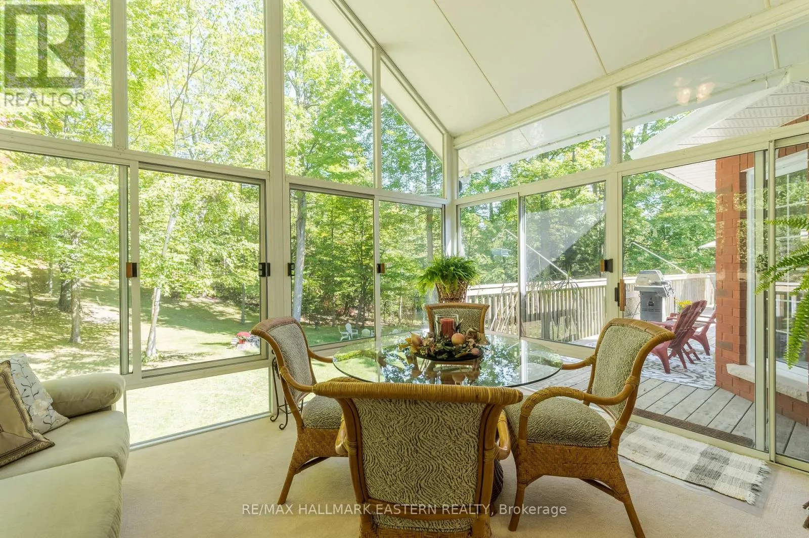Cross Streets: Ski Hill Rd. ** Directions: Ski Hill Rd HWY 7A. Welcome to this custom-built, all-brick executive bungalow, offering nearly 4,000 sq ft of impeccably designed living space on a breathtaking treed and landscaped property. Privately set surrounded by nature, this residence blends refined elegance with everyday functionality. Step inside to a sun-filled, open-concept great room, where tray ceilings and a cozy gas fireplace set the stage for gatherings. The adjoining formal dining area flows seamlessly into the gourmet eat-in kitchen, complete with a centre island, built-in wine racks, and thoughtful finishes tailored to the culinary enthusiast. A wall of windows draws you into the three-season sunroom, a serene retreat with a walkout to the expansive wrap-around deck perfect for soaking in the beauty of the surrounding landscape. The primary suite is private featuring 5-piece ensuite with heated floors, a walk-in closet, and another walkout to the deck. A second bedroom enjoys private access to the main 4-piece bath, while a versatile den/office, convenient 2-piece powder room, and main-floor laundry add to the homes thoughtful design. The triple-car garage is fully insulated and accessible through the mudroom, offering convenience. The lower level recreation room features a second gas fireplace, and games area with pool table perfect for entertaining. The third bedroom connects to 3-piece bath. Another walkout takes you directly to the landscaped backyard oasis. This remarkable property offers privacy, tranquility, and beauty at every turn. Mature trees, curated gardens, and abundant wildlife create a peaceful backdrop for daily living, making this an ideal home for those who value both style and serenity. Bethany is a picturesque village known for its rolling hills, trails, and warm community feel. With quick access to Highway 7A and 115, commuters will appreciate the easy connections to Peterborough, Durham, and the GTA. (id:27476)