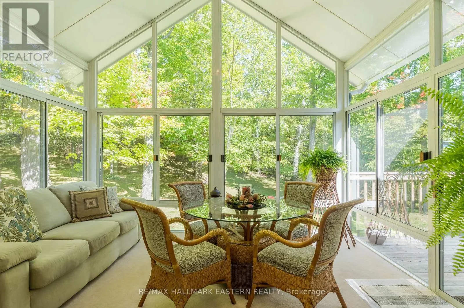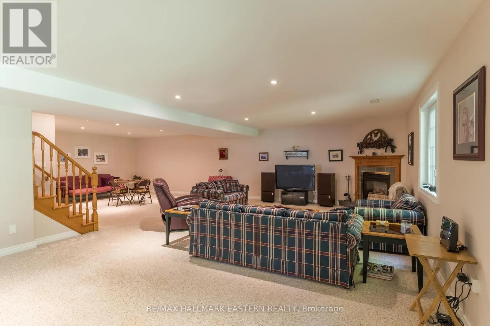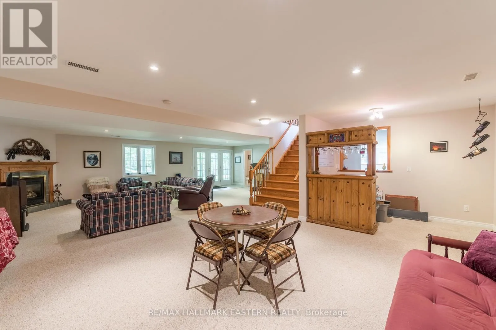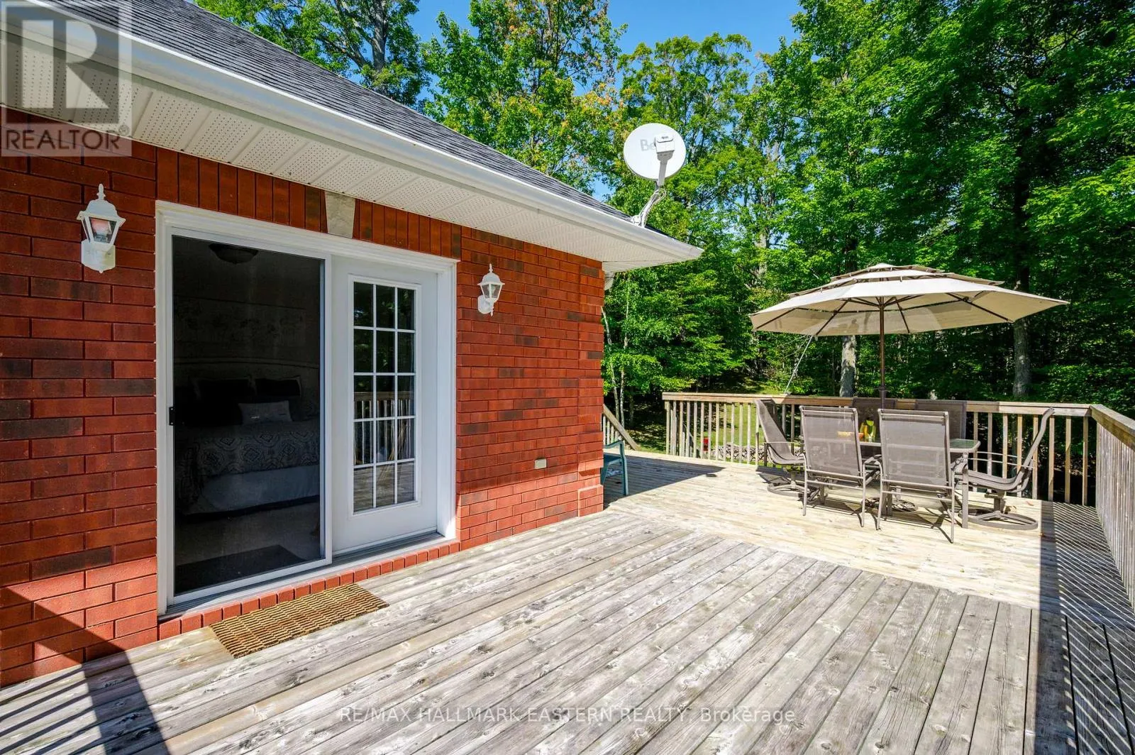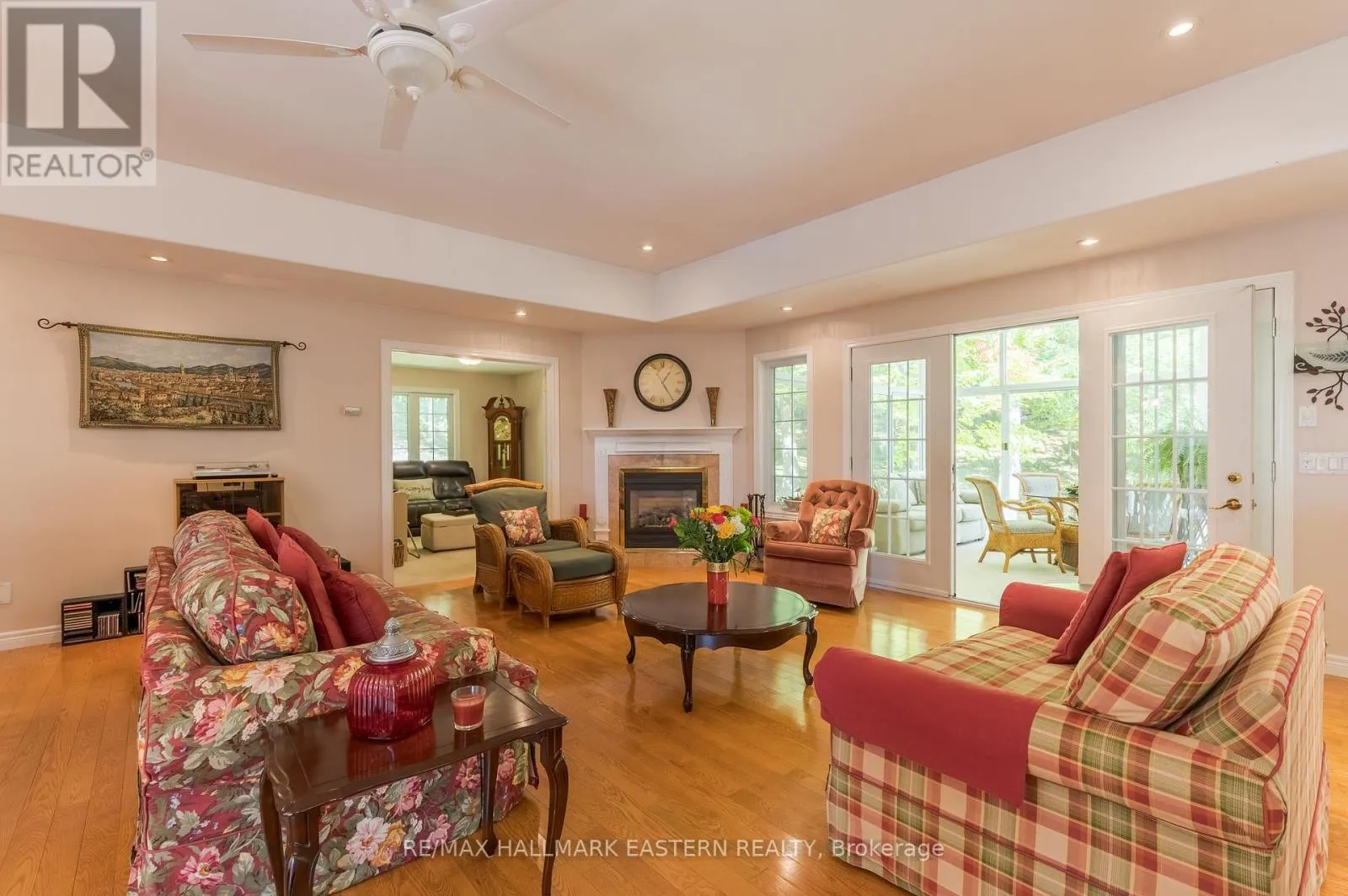 Cross Streets: Ski Hill Rd. ** Directions: Ski Hill Rd HWY 7A. Welcome to this custom-built, all-brick executive bungalow, offering nearly 4,000 sq ft of impeccably designed living space on a breathtaking treed and landscaped property. Privately set surrounded by nature, this residence blends refined elegance with everyday functionality. Step inside to a sun-filled, open-concept great room, where tray ceilings and a cozy gas fireplace set the stage for gatherings. The adjoining formal dining area flows seamlessly into the gourmet eat-in kitchen, complete with a centre island, built-in wine racks, and thoughtful finishes tailored to the culinary enthusiast. A wall of windows draws you into the three-season sunroom, a serene retreat with a walkout to the expansive wrap-around deck perfect for soaking in the beauty of the surrounding landscape. The primary suite is private featuring 5-piece ensuite with heated floors, a walk-in closet, and another walkout to the deck. A second bedroom enjoys private access to the main 4-piece bath, while a versatile den/office, convenient 2-piece powder room, and main-floor laundry add to the homes thoughtful design. The triple-car garage is fully insulated and accessible through the mudroom, offering convenience. The lower level recreation room features a second gas fireplace, and games area with pool table perfect for entertaining. The third bedroom connects to 3-piece bath. Another walkout takes you directly to the landscaped backyard oasis. This remarkable property offers privacy, tranquility, and beauty at every turn. Mature trees, curated gardens, and abundant wildlife create a peaceful backdrop for daily living, making this an ideal home for those who value both style and serenity. Bethany is a picturesque village known for its rolling hills, trails, and warm community feel. With quick access to Highway 7A and 115, commuters will appreciate the easy connections to Peterborough, Durham, and the GTA. (id:27476)