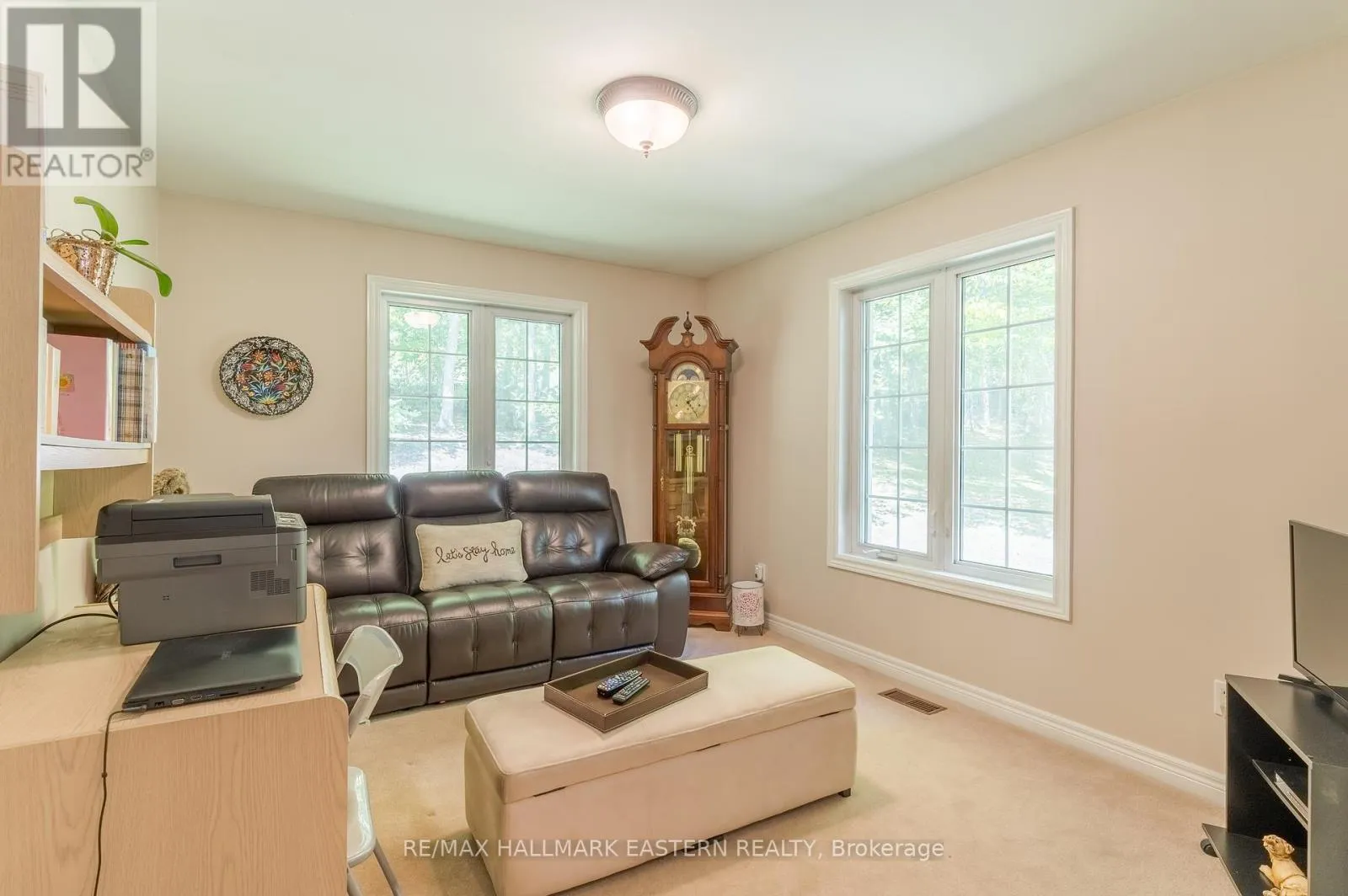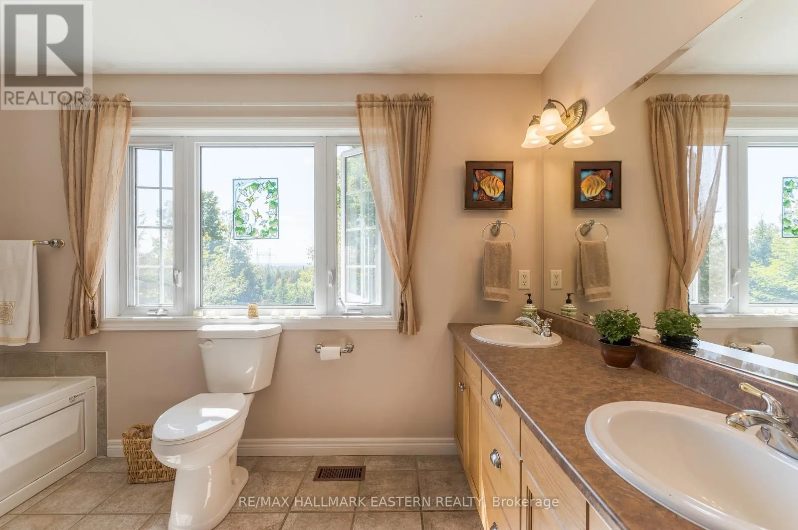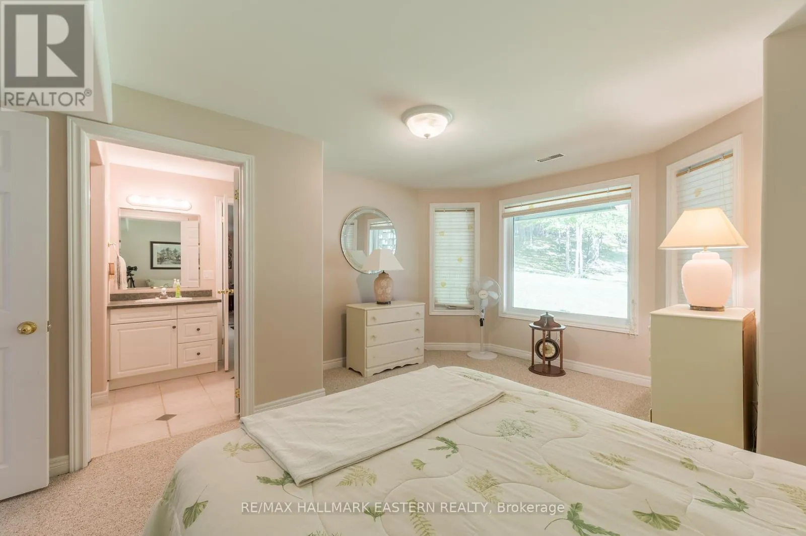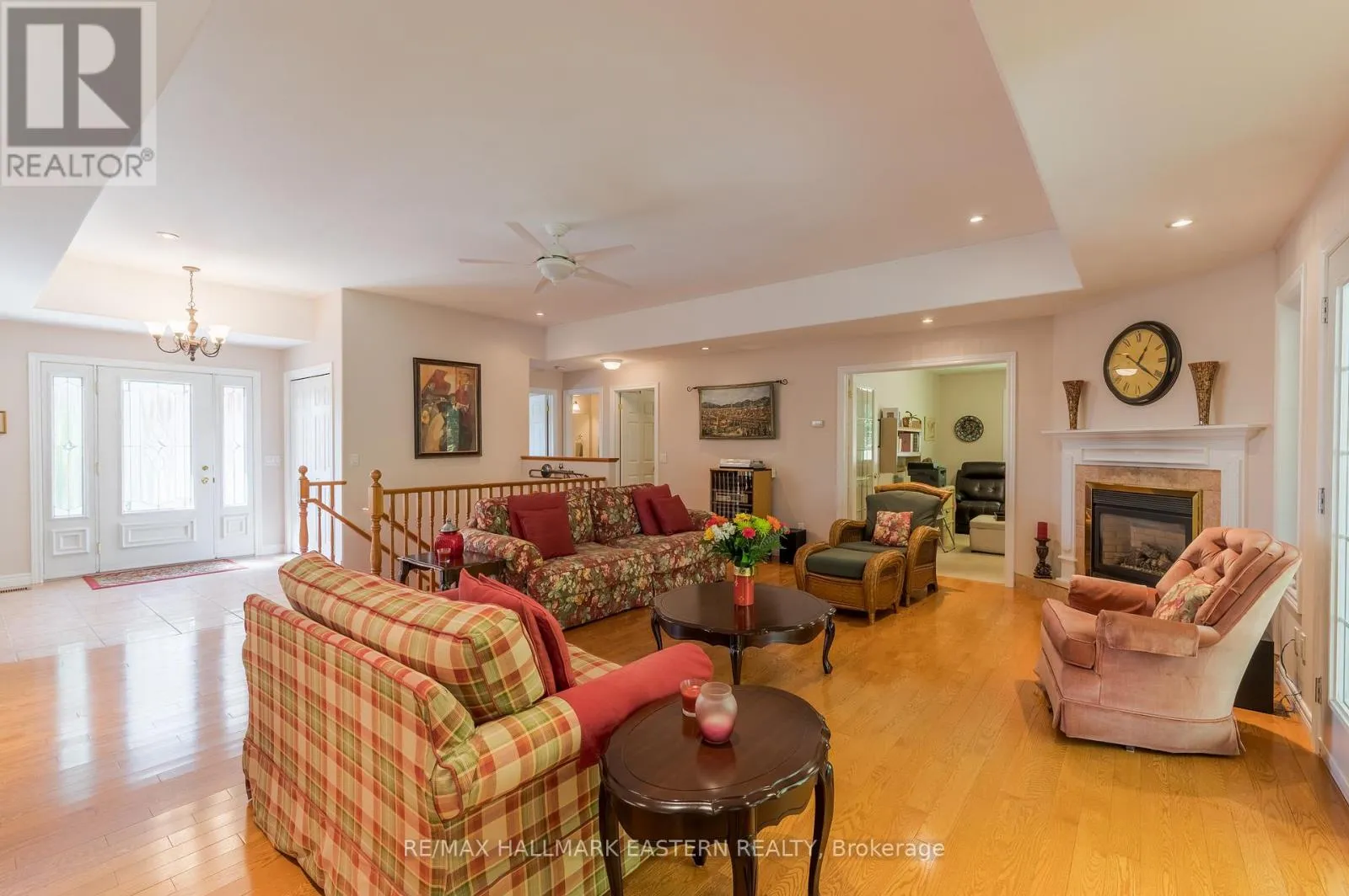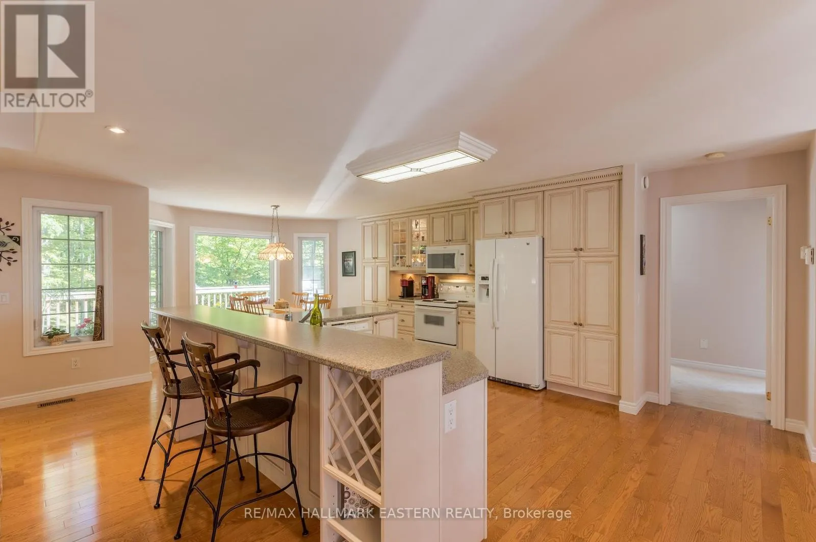 Cross Streets: Ski Hill Rd. ** Directions: Ski Hill Rd HWY 7A. Welcome to this custom-built, all-brick executive bungalow, offering nearly 4,000 sq ft of impeccably designed living space on a breathtaking treed and landscaped property. Privately set surrounded by nature, this residence blends refined elegance with everyday functionality. Step inside to a sun-filled, open-concept great room, where tray ceilings and a cozy gas fireplace set the stage for gatherings. The adjoining formal dining area flows seamlessly into the gourmet eat-in kitchen, complete with a centre island, built-in wine racks, and thoughtful finishes tailored to the culinary enthusiast. A wall of windows draws you into the three-season sunroom, a serene retreat with a walkout to the expansive wrap-around deck perfect for soaking in the beauty of the surrounding landscape. The primary suite is private featuring 5-piece ensuite with heated floors, a walk-in closet, and another walkout to the deck. A second bedroom enjoys private access to the main 4-piece bath, while a versatile den/office, convenient 2-piece powder room, and main-floor laundry add to the homes thoughtful design. The triple-car garage is fully insulated and accessible through the mudroom, offering convenience. The lower level recreation room features a second gas fireplace, and games area with pool table perfect for entertaining. The third bedroom connects to 3-piece bath. Another walkout takes you directly to the landscaped backyard oasis. This remarkable property offers privacy, tranquility, and beauty at every turn. Mature trees, curated gardens, and abundant wildlife create a peaceful backdrop for daily living, making this an ideal home for those who value both style and serenity. Bethany is a picturesque village known for its rolling hills, trails, and warm community feel. With quick access to Highway 7A and 115, commuters will appreciate the easy connections to Peterborough, Durham, and the GTA. (id:27476)