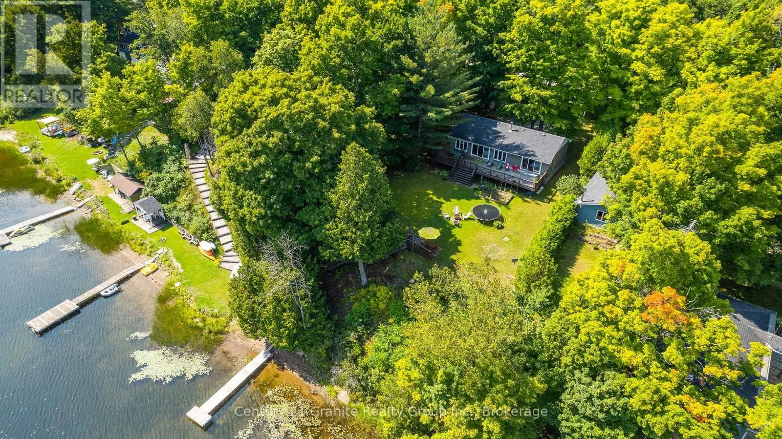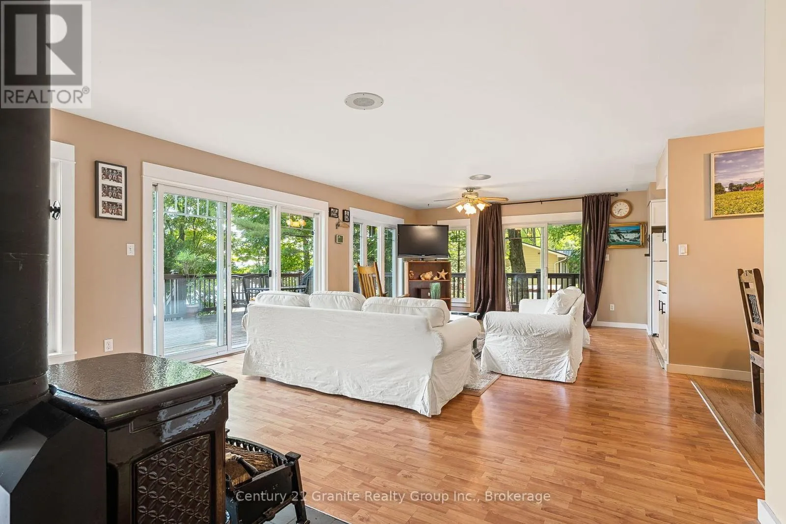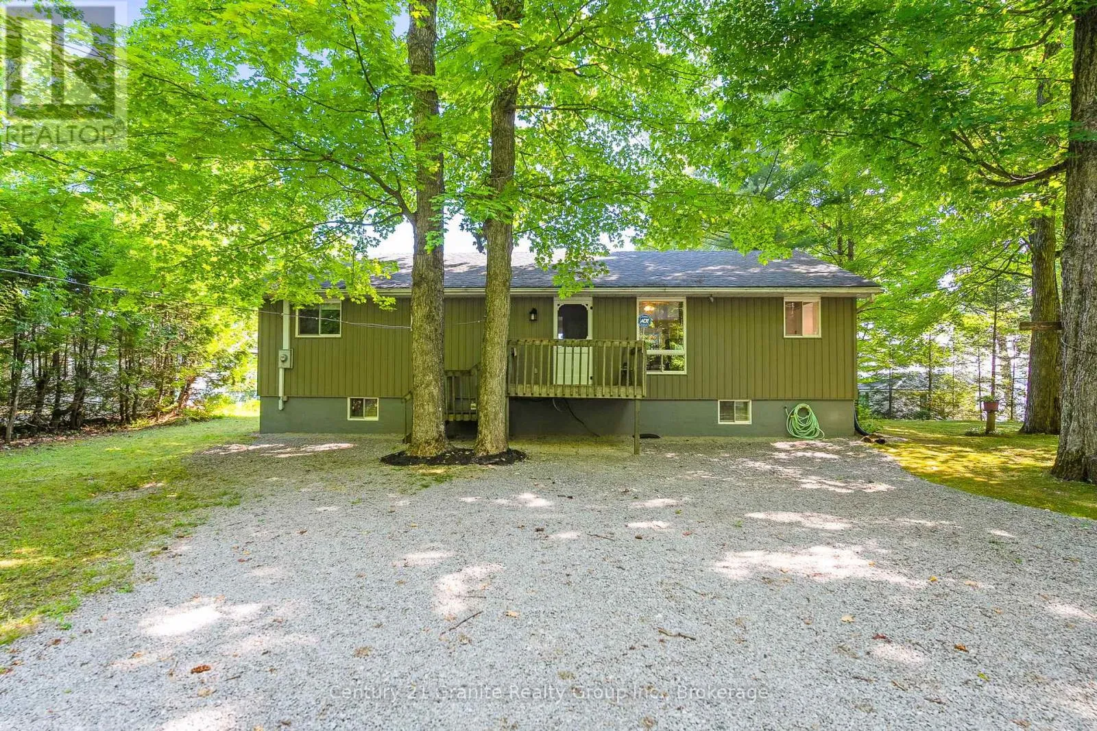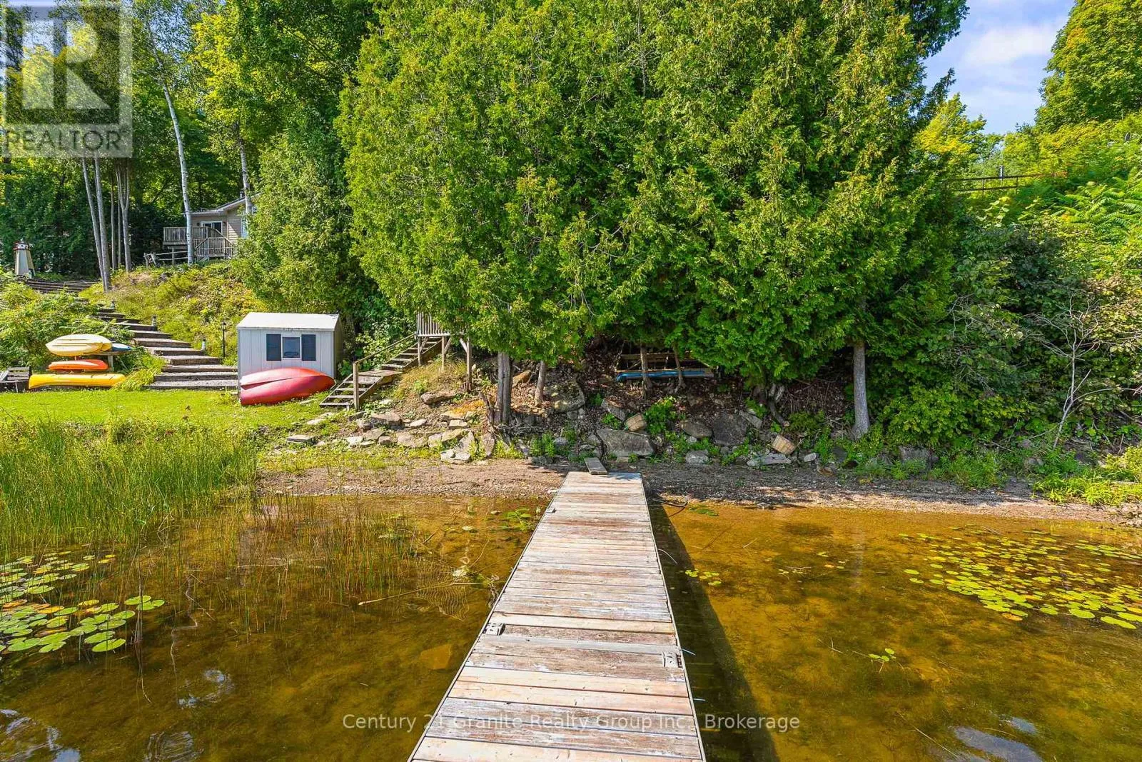 Cross Streets: Monck Road & Suter Drive. ** Directions: Monck Road to Suter Drive to sign on property. Morning light filters through the trees and glints off Head Lake as you sip your coffee on the deck. Its quiet. Just birdsong and the gentle lap of water against the shore. Set on a tree-lined lot with 100 feet of clean, east-facing shoreline, this 4-bedroom, 3-bath home offers year-round comfort and an easy rhythm of indoor-outdoor living. Inside, the open-concept layout makes the most of the view, with wall-to-wall windows and a cozy woodstove anchoring the main living space. The kitchen is generous and bright - perfect for casual meals, weekend guests, or feeding a full house after a day on the lake. The main-floor primary bedroom features direct access to the deck and a private 2-piece ensuite. Downstairs, the newly renovated lower level includes a large bedroom and wide-open space ready for games, guests, or whatever you need more room for. Steps lead from the house down to the dock, where you'll find deep, clear water and space to swim, paddle, or just float the afternoon away. There's also a 1.5-car garage, main-floor laundry, and thoughtful extras throughout, including most furnishings, a boat, paddle boat, and golf cart, all included in the sale. Under two hours from the GTA and fed by the untouched waters of QE II Wildlands Provincial Park, Head Lake is known for its clarity, calm, and quiet. And this is the kind of place where you can finally enjoy it. (id:27476)