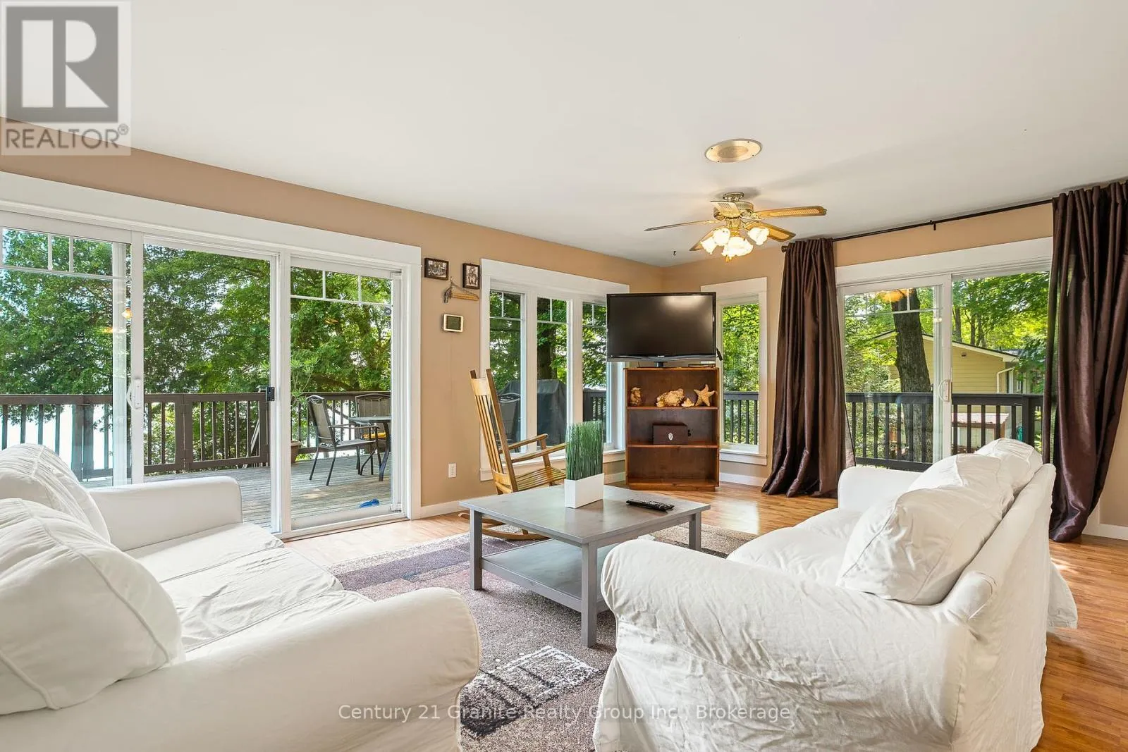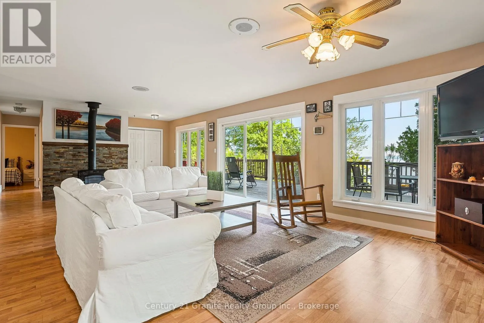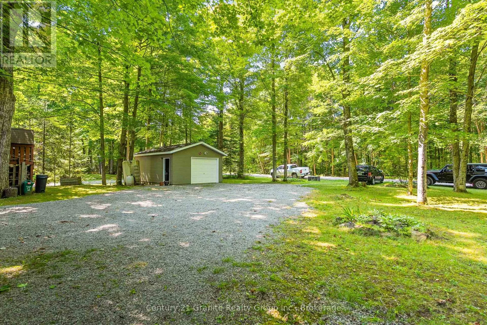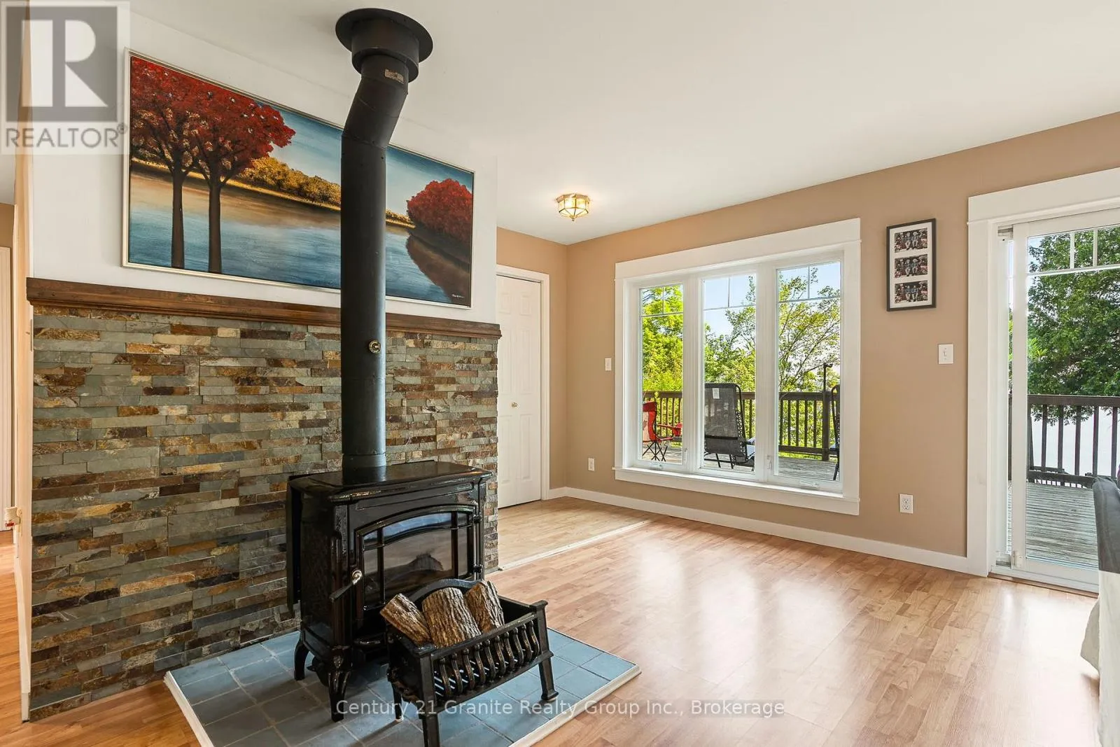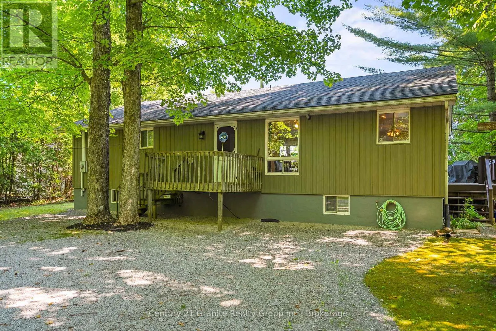Cross Streets: Monck Road & Suter Drive. ** Directions: Monck Road to Suter Drive to sign on property. Morning light filters through the trees and glints off Head Lake as you sip your coffee on the deck. Its quiet. Just birdsong and the gentle lap of water against the shore. Set on a tree-lined lot with 100 feet of clean, east-facing shoreline, this 4-bedroom, 3-bath home offers year-round comfort and an easy rhythm of indoor-outdoor living. Inside, the open-concept layout makes the most of the view, with wall-to-wall windows and a cozy woodstove anchoring the main living space. The kitchen is generous and bright - perfect for casual meals, weekend guests, or feeding a full house after a day on the lake. The main-floor primary bedroom features direct access to the deck and a private 2-piece ensuite. Downstairs, the newly renovated lower level includes a large bedroom and wide-open space ready for games, guests, or whatever you need more room for. Steps lead from the house down to the dock, where you'll find deep, clear water and space to swim, paddle, or just float the afternoon away. There's also a 1.5-car garage, main-floor laundry, and thoughtful extras throughout, including most furnishings, a boat, paddle boat, and golf cart, all included in the sale. Under two hours from the GTA and fed by the untouched waters of QE II Wildlands Provincial Park, Head Lake is known for its clarity, calm, and quiet. And this is the kind of place where you can finally enjoy it. (id:27476)