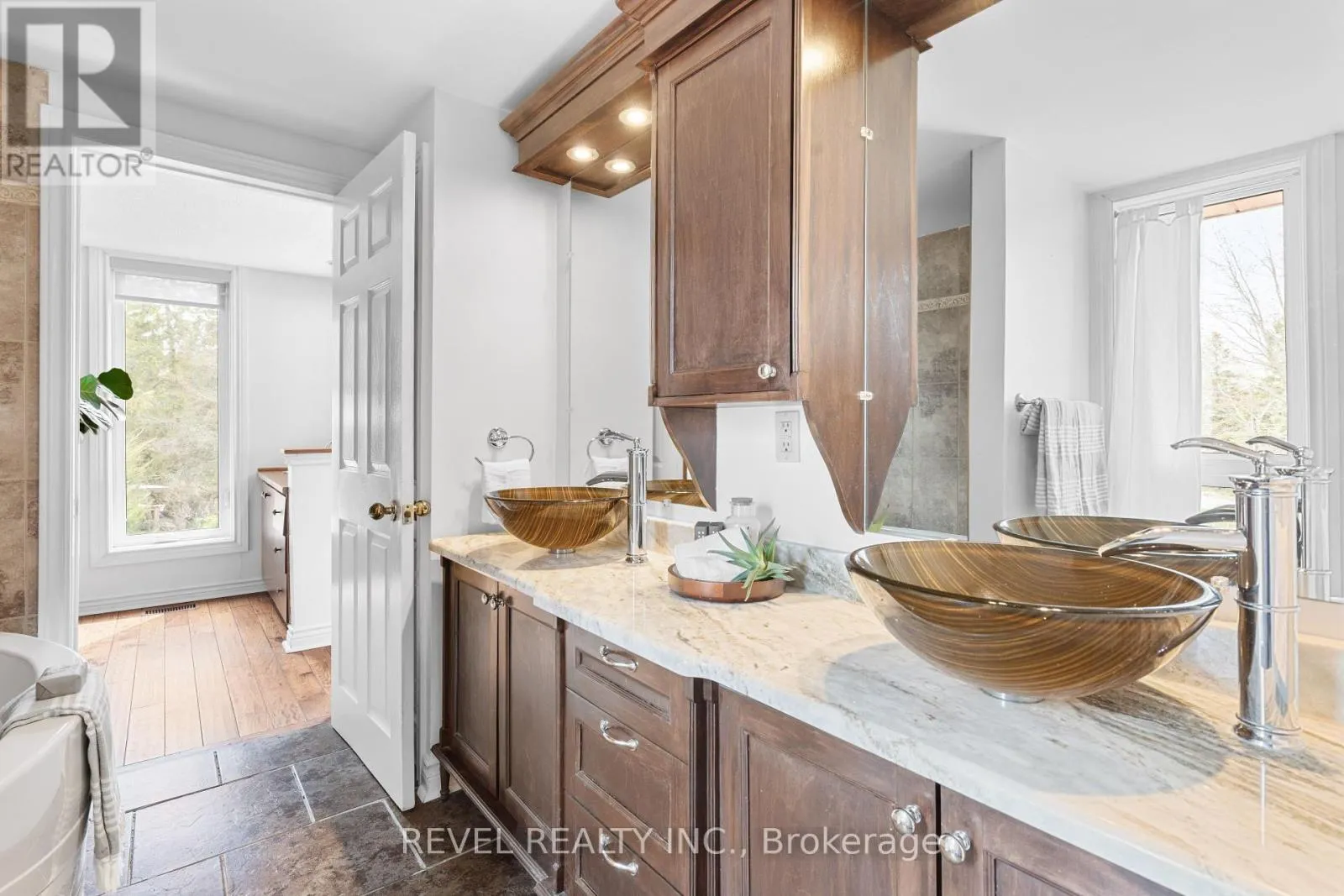 MCGILL/CEDAR Welcome to your dream lakefront lifestyle! This impressive 6-bedroom 3-bath, 4,800 sqft solid brick home sits proudly on 1.08 private acres with 162 feet of waterfront a rare gem just 1 hour from the GTA. Step inside to find hardwood and ceramic floors, an updated gourmet kitchen with granite counters, marble backsplash, gas range and multiple walkouts to lakeview decks from both the living room and the spacious upper level retreat. The nearly 1,000 sq ft primary suite is a true sanctuary, offering a walk-in closet, updated ensuite, private living area, and even a kitchenette perfect for relaxation or extended family stays. This home is ideal for multi-generational living, a luxurious full-time residence, or an income property, this home offers flexible space for all your needs. Complete finished in-law suite with cozy living area, kitchen, bath & walkout to yard & entrance from garage. Plenty of storage in the home. Bonus exterior boathouse at the lake, excellent for storing waterfront recreational toys or an entertaining space. This property is situated on a quiet street minutes to park & local shopping. The possibilities are endless with this home. Book a showing today & make this your dream waterfront home. (id:27476)