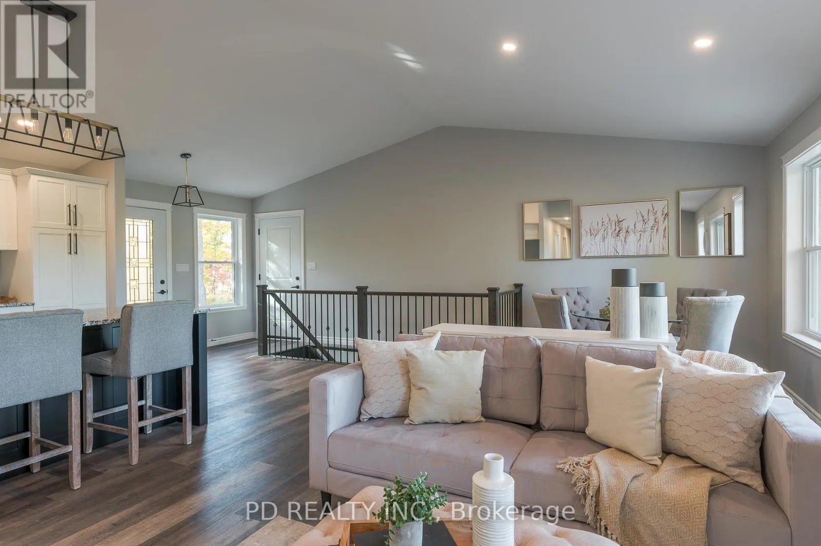 Cross Streets: Hwy 7A & East St. ** Directions: Hwy 7 A to East St. Stunning 3+2 Bed, 3 Bath Bungalow On A Beautiful Treed 1-Acre Lot! Built In 2023, This Modern Home Offers Open-Concept Living With Vaulted Ceilings, Pot Lights, And Walkout To An Expansive Deck That Is Perfect For Entertaining. Main Floor Features A Spacious Living/Dining Area, Kitchen With Granite Counters, Island With Seating, 3 Bedrooms Including Primary With 3-Piece Ensuite, And A 4-Piece Bath. Fully Finished Walkout Basement With Separate Entrance And Driveway Offers 2 Bedrooms, 4-Piece Bath With Laundry, Kitchen, And Cozy Living Room With Gas Fireplace Ideal For Extended Family Or Guests. Fully Insulated And Finished Garage With Direct Entry Into The Home, Plus Walkout Access To The Large Deck. Extras Include Natural Gas Heat, Central Air, On-Demand Hot Water, Soffit Lighting, Water Filtration System, And Large Windows In The Lower Level For Abundant Natural Light. Located Just Minutes To Hwy 407 And Approximately 1 Hour To The GTA. A Perfect Balance Of Luxury, Space, And Functionality! (id:27476)