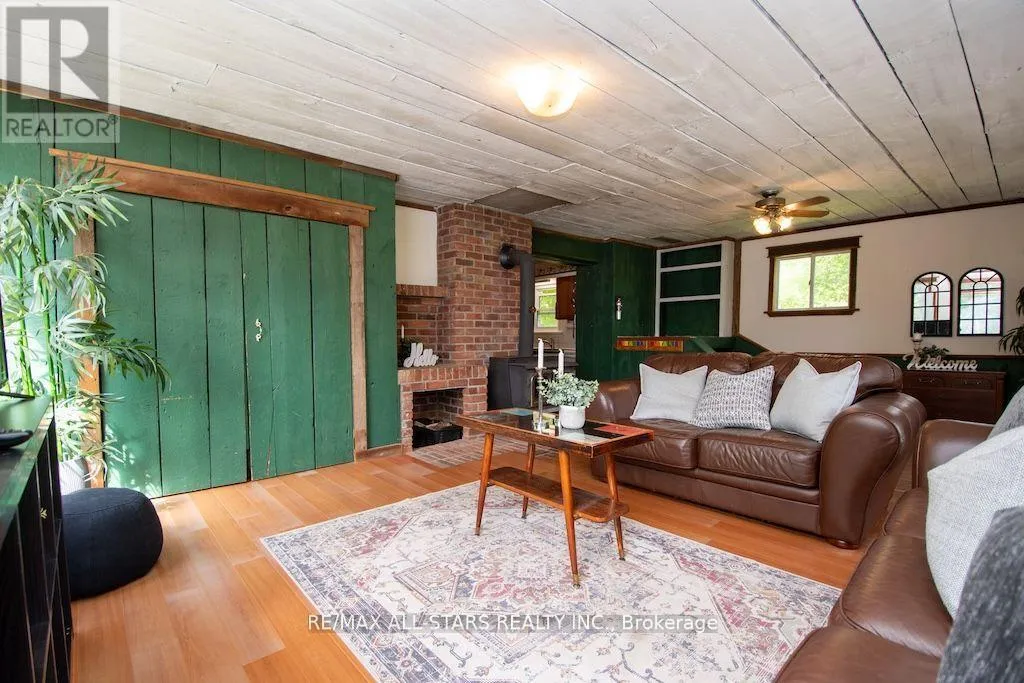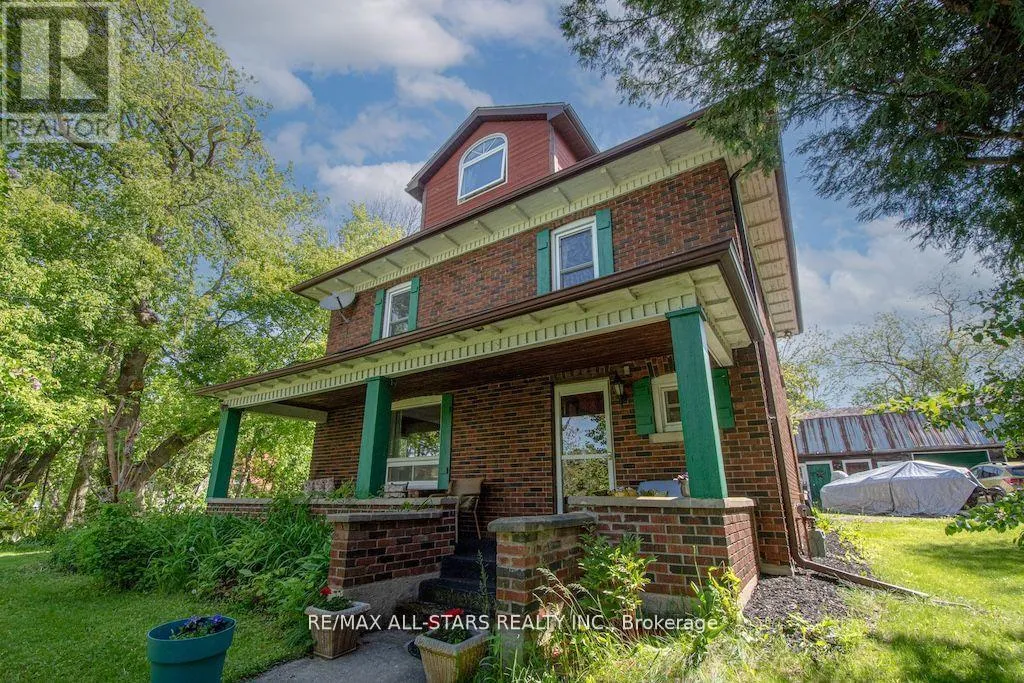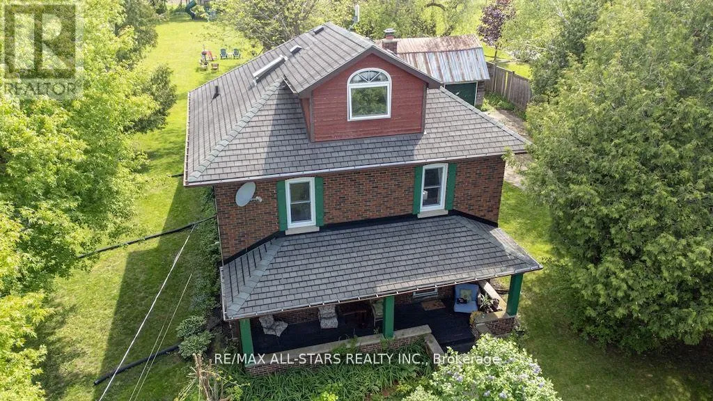 Cross Streets: Golf Course/ Janetville Rd. ** Directions: Hwy 35 to Golf Course Rd to #4784. Welcome to 4784 Regional Rd 57 Janetville, a century home with timeless charm! This captivating 2.5-storey brick and wood-sided home sits on a private 1-acre lot surrounded by mature trees and lush perennial and vegetable gardens. Enjoy peaceful country living while being just a short walk to Lake Scugog, a convenience store, park, and Wolf Run golf course. Inside, you'll find 4 spacious bedrooms, including a stunning third-level primary suite that offers a private retreat. The main floor boasts a cozy family room with a wood stove, a well-equipped kitchen with tile flooring and ample storage, and an impressive formal dining room featuring a massive stone fireplace and gleaming hardwood floors. A large living room with hardwood flooring and a convenient 2-piece bath complete the main level. The second floor includes a full 4-piece bath. Additional highlights include: detached 2-car garage with a large workshop equipped with hydro, expansive front porch perfect for relaxing evenings, natural gas heating for year-round comfort, fire pit area ideal for entertaining. Property backs onto serene farmland for extra privacy. This is your opportunity to own this charming, character-filled home in a tranquil setting with modern conveniences nearby. Easy commute to GTA and Hwy 407, as well as a quick 20 minute drive to Port Perry & Lindsay! (id:27476)