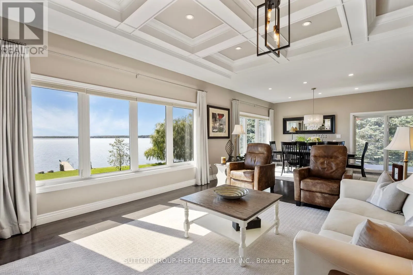 Cross Streets: Washburn Island Rd. & Hillside Dr. ** Directions: Simcoe St. N. to Ramsey Rd. go east to Ogema Rd., turn right, follow to Cottage Rd., turn right, follow to Washburn Island Rd., turn left follow to first street on right Hillside Dr. turn right. Life Is Good at the Lake! Beautifully Crafted Custom Built Bungalow in 2020 with High End Finishes Throughout. Thoughtfully Designed For Relaxation & Entertaining with West Exposure to Enjoy Stunning Sunsets Surrounded by Nature. Open Concept Home Featuring 9' Ceilings On Main Level with Views From Principal Rooms & Primary Bedroom. Step Inside The Front Door & Be Ready To Be Captivated By The Breathtaking View From The Great Room with Coffered Ceiling, Oversized Windows, Gas Fireplace, Stone Feature Wall & Custom B/I Shelving, Adjoining Elegant Dining Room Great For Hosting Those Holiday Dinners Open to the Gourmet Kitchen Featuring Custom Cabinetry with Large Centre Island, Granite Countertops, Pot & Pan Drawers & Wine Fridge. Walk Out from the Kitchen/Dining Area to a Party Sized Deck with Composite Decking & Regal Frameless Glass Railings for an Unobstructed View. Gleaming Maple Hardwood Flooring Flows From Dining & Living Rooms into the Primary Bedroom & the 2nd. Bedroom. Relax in the Main Floor Primary Suite with W/I Closet & 4 Pc. Bath & 5' Glass Shower, 6' Therapeutic Tub, Vanity with Leathered Granite Countertop & Heated Floor. 2nd. Bedroom on Main Level Would Make a Great Home Office, Main Floor Laundry Conveniently Located Next to the Kitchen with Access to the Oversized 2 Car Garage. Hardwood Staircase Leads to the Fully Finished W/O Basement with Rec Room featuring Wet Bar, Quartz Countertop, Electric Fireplace with Shiplap Feature Wall, Wine Cellar, 8' Patio Door to Stone Patio with Pergola, Water Feature & Landscaped Yard with 40' Dock. Plenty of Room for the Kids to Run Around! 3rd. & 4th. Bedrooms Overlook the Lake, 5th. Bedroom & 4Pc. Bath Finish the Lower Level. Private .53 Acre Lot Lined by Mature Trees, Paved Double Drive, On a Quiet Cul de Sac with Year Round Residents, Minutes to Port Perry & Lindsay, Great Fishing on the Trent System. Includes 1999 - 19' Sea Ray Bow Rider & Trailer. Year Round Waterfront Fun! Call for Your Private Viewing! (id:27476)