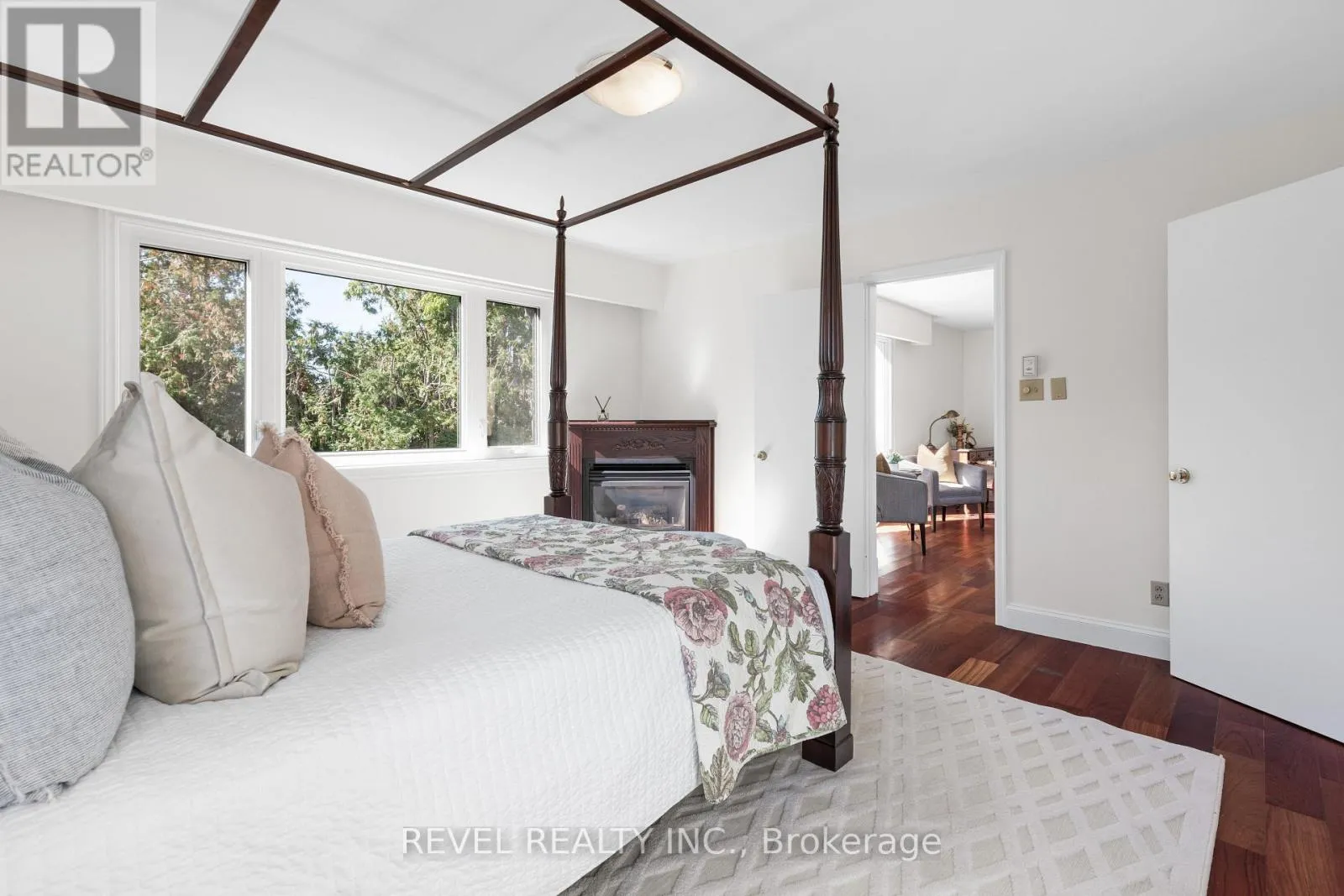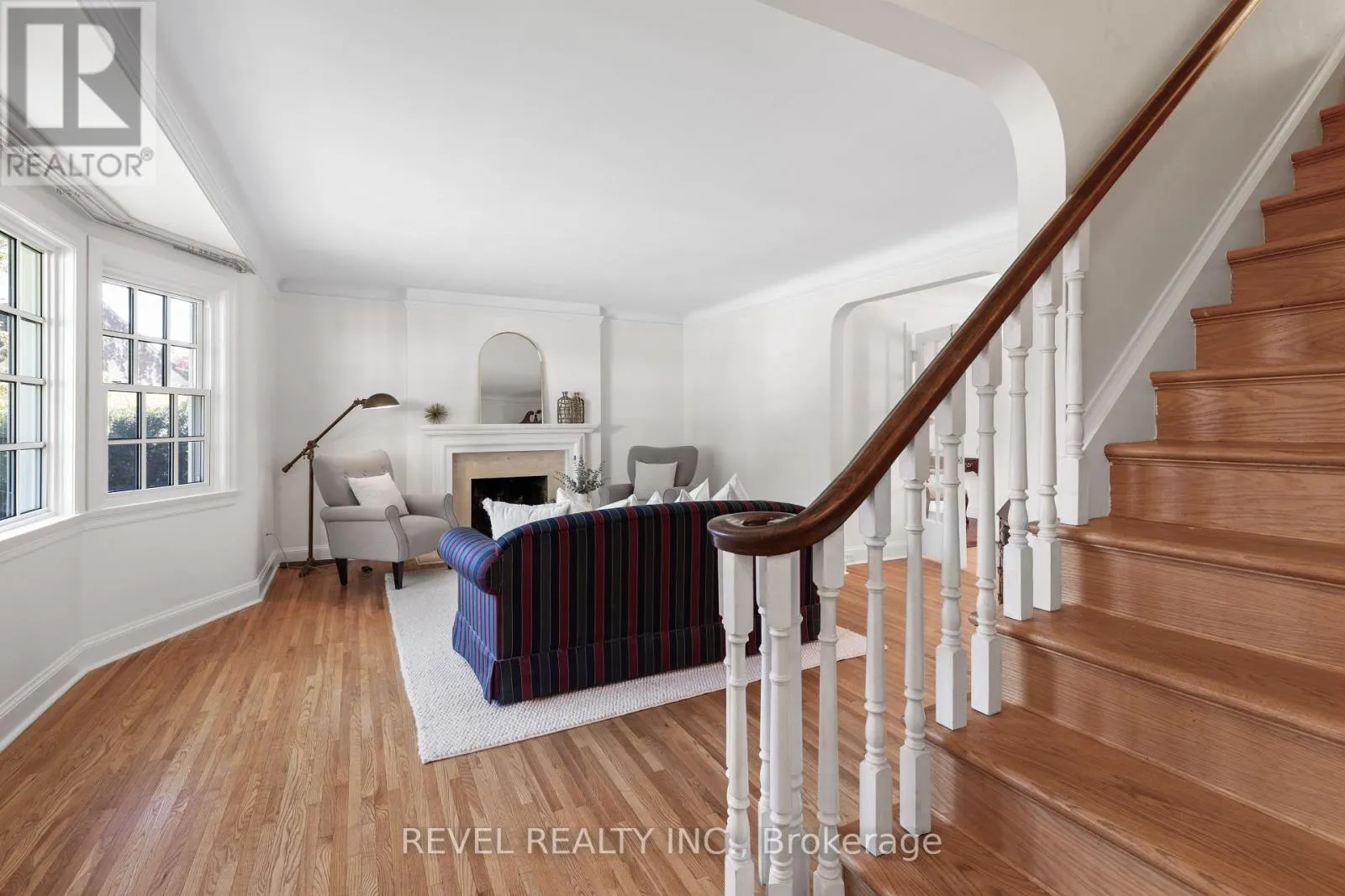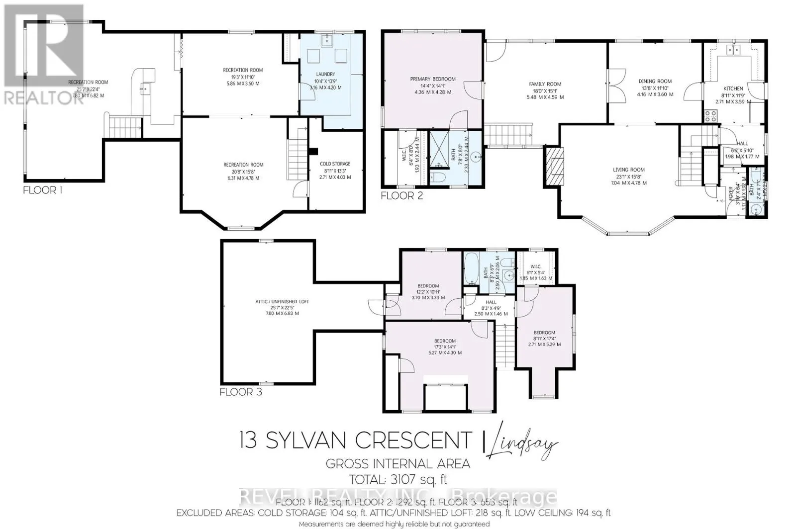 ALBERTS ST S TO SYLVAN CRES Welcome to 13 Sylvan Crescent, Lindsay, a stunning Cape Cod style home offering 4 bedrooms, 3 bathrooms, and timeless curb appeal in one of Lindsays most desirable neighbourhood. Step up to the inviting front entrance and be greeted by gorgeous hardwood floors, crown moulding, rounded ceilings, a built-in fireplace, and a bright bay window that floods the living space with natural light. The main level also features a formal dining room, a spacious kitchen, and an exceptional bonus area perfect for a sitting room, library, or music space with serene views of the backyard. The main floor primary suite is complete with a walk-in closet featuring built-in shelving, cozy corner fireplace and a private ensuite. Upper level has 3 generous size bedrooms & a 3pc bath. Additional unspoiled attic space with plenty of potential ready to be finished or storage area. The lower level offers two staircases, a large rec room with built-in bar, plenty of large windows, laundry, and generous storage. An attached breezeway conveniently connects the home from the kitchen to the garage. Outside, enjoy a beautifully landscaped backyard with interlocking stone patio, private treed setting, and peaceful garden space ideal for relaxing or entertaining. Updates include a metal roof, newer windows and doors, and well-maintained grounds. Nestled on a quiet crescent in a highly sought-after area of Lindsay, this property offers the perfect blend of charm, space, and location. Walking to shopping, hospital, community centre, library, schools, movies, theatrical theatre & resturants. Don't miss the chance to make this exceptional home yours! (id:27476)