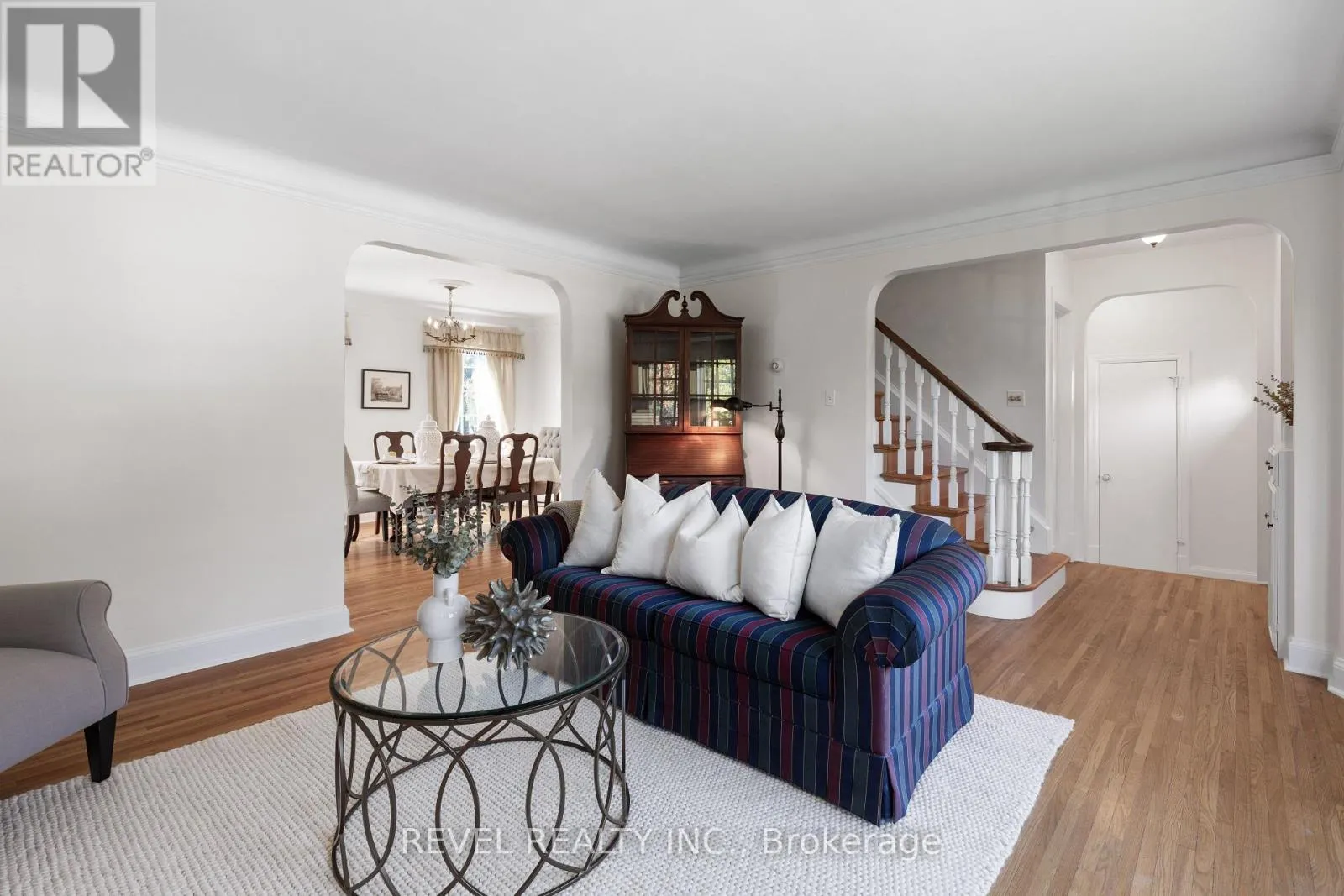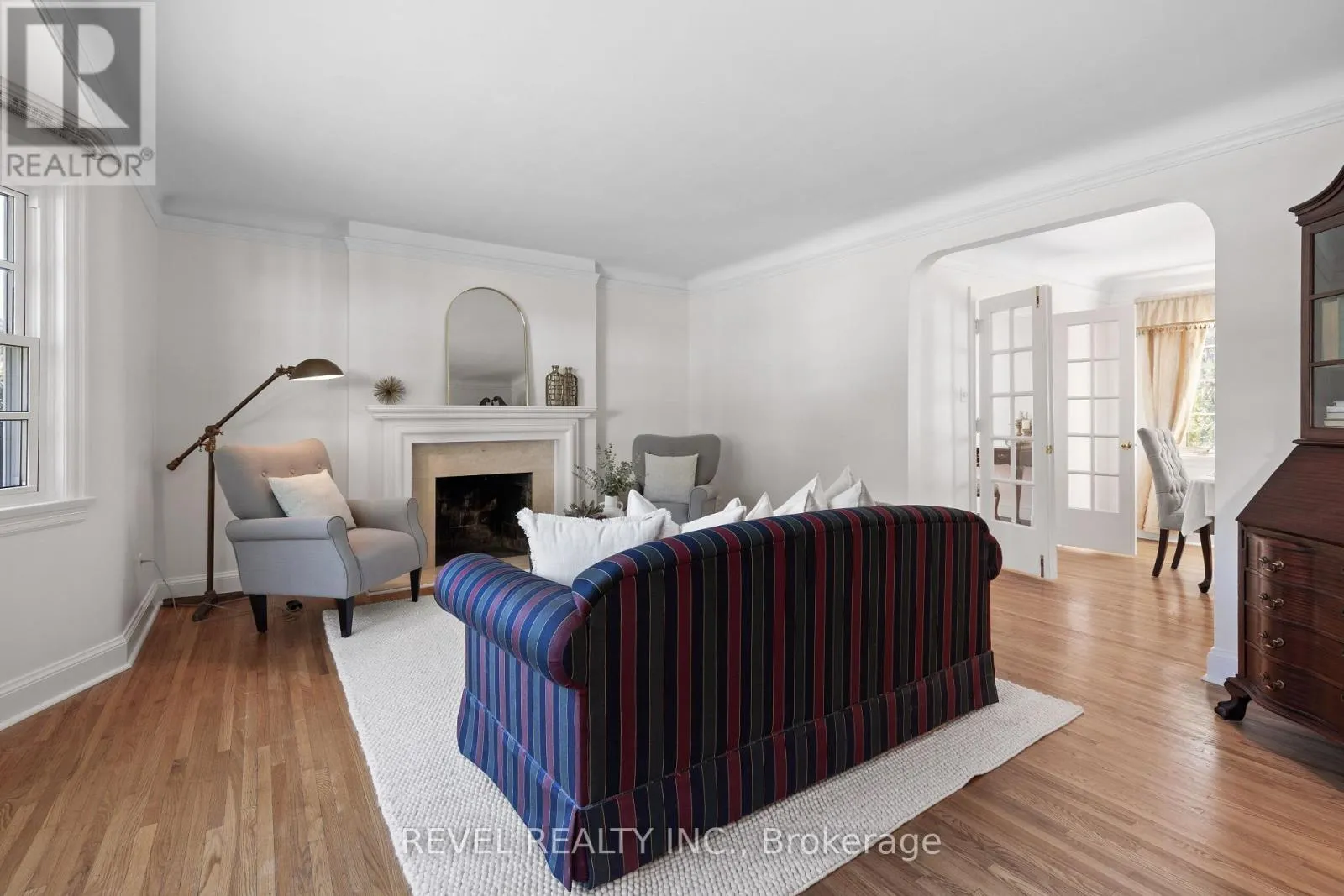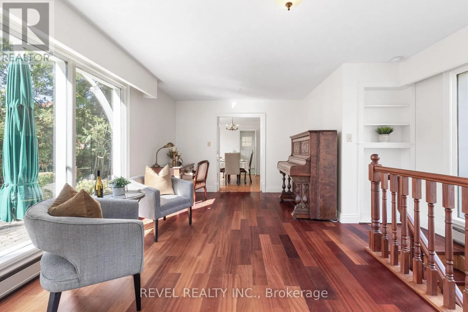 ALBERTS ST S TO SYLVAN CRES Welcome to 13 Sylvan Crescent, Lindsay, a stunning Cape Cod style home offering 4 bedrooms, 3 bathrooms, and timeless curb appeal in one of Lindsays most desirable neighbourhood. Step up to the inviting front entrance and be greeted by gorgeous hardwood floors, crown moulding, rounded ceilings, a built-in fireplace, and a bright bay window that floods the living space with natural light. The main level also features a formal dining room, a spacious kitchen, and an exceptional bonus area perfect for a sitting room, library, or music space with serene views of the backyard. The main floor primary suite is complete with a walk-in closet featuring built-in shelving, cozy corner fireplace and a private ensuite. Upper level has 3 generous size bedrooms & a 3pc bath. Additional unspoiled attic space with plenty of potential ready to be finished or storage area. The lower level offers two staircases, a large rec room with built-in bar, plenty of large windows, laundry, and generous storage. An attached breezeway conveniently connects the home from the kitchen to the garage. Outside, enjoy a beautifully landscaped backyard with interlocking stone patio, private treed setting, and peaceful garden space ideal for relaxing or entertaining. Updates include a metal roof, newer windows and doors, and well-maintained grounds. Nestled on a quiet crescent in a highly sought-after area of Lindsay, this property offers the perfect blend of charm, space, and location. Walking to shopping, hospital, community centre, library, schools, movies, theatrical theatre & resturants. Don't miss the chance to make this exceptional home yours! (id:27476)