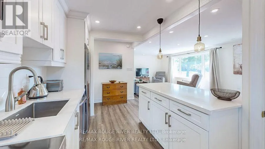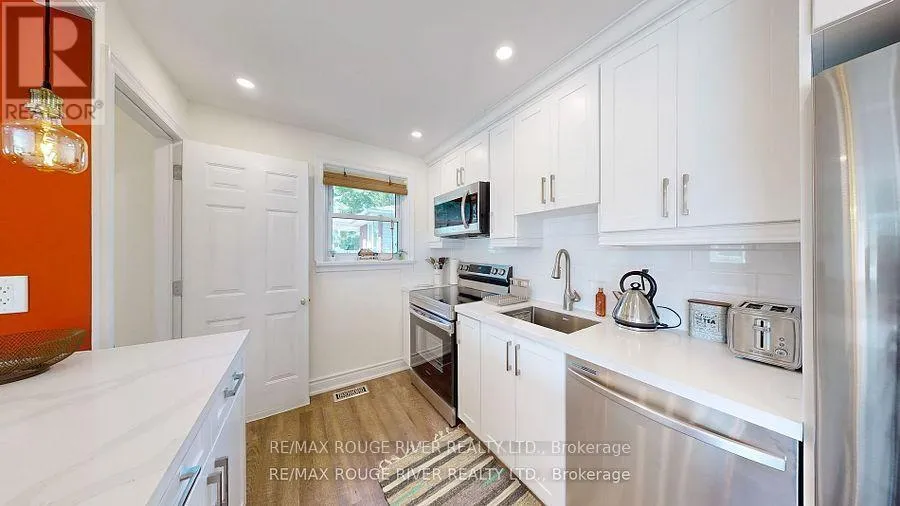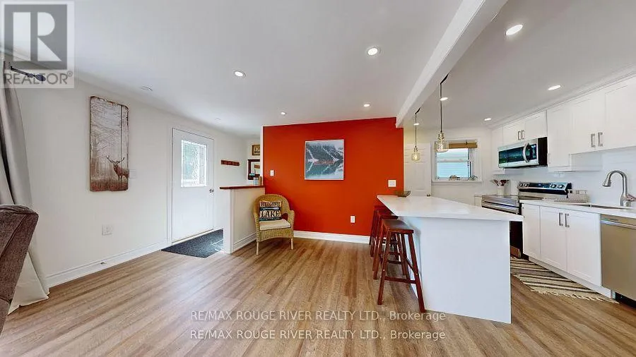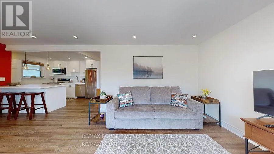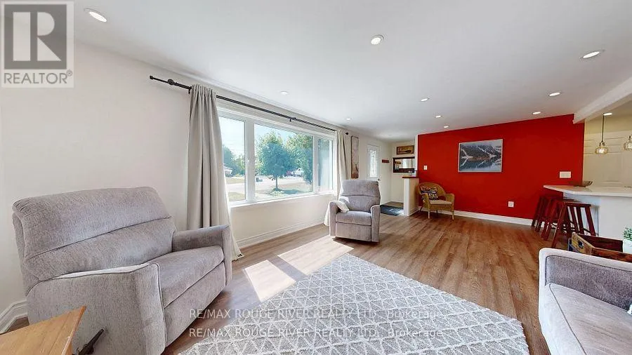 Queen St and Colborne St Fantastic recently renovated home on a beautiful 56.76 by 191.40 foot lot. Located within walking distance to the spectacular Cameron Lake, ATV Trails, Downtown Core, Professional Offices, the Locks and many shops to browse and fantastic restaurants to eat at. This openconcept and charming home is bright and spacious, the main floor consists of a large living room which has a picturesque window allowing sunlight to flow in, the kitchen has been recently renovated which boasts upgraded appliances, quartz counter tops, upgraded cabinets and lighting. Another unique feature is the three total bedrooms on the main floor and the fourth bedroom in the recently finished basement. The basement is an entertainers dream, the bonus is the separate side entrance which can allow you to rent the basement out for extra income in the future...there is ample room for a future kitchen and a bathroom. The basement includes a large finished recreation room along with the large fourth bedroom. Some other recently completed features: Furnace 2019, Painting, Ceiling Pot Lights, Flooring, and Trim. Enjoy entertaining friends and family on the lovely spacious front patio or stroll to the back and enjoy the serene beauty of the large backyard. Lots of room for the kids to play and privacy with trees lining the back area. The exterior also features a great detached garage along with parking for 4 additional cars on the driveway. A truly unique place to call home, a fantastic opportunity to live in the ever expanding Fenelon Falls. (id:27476)