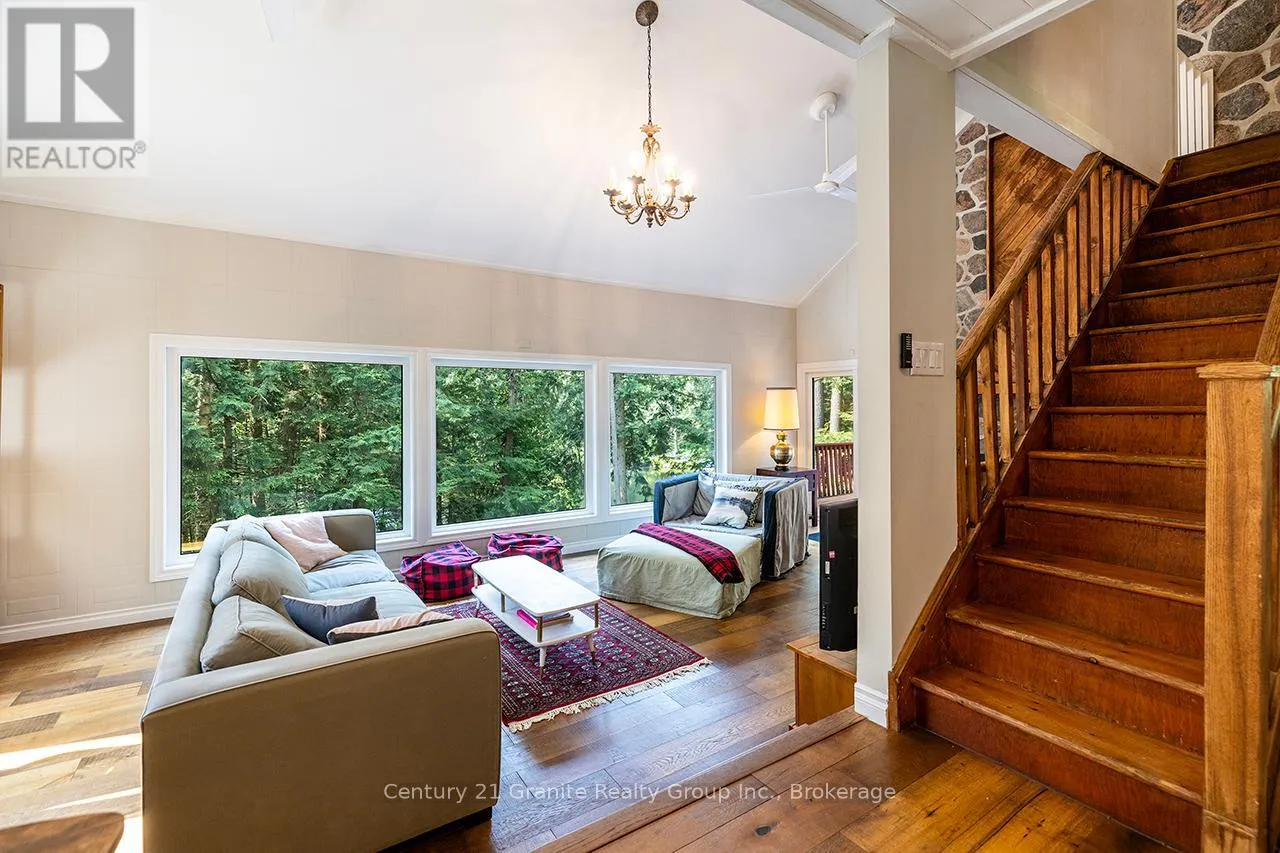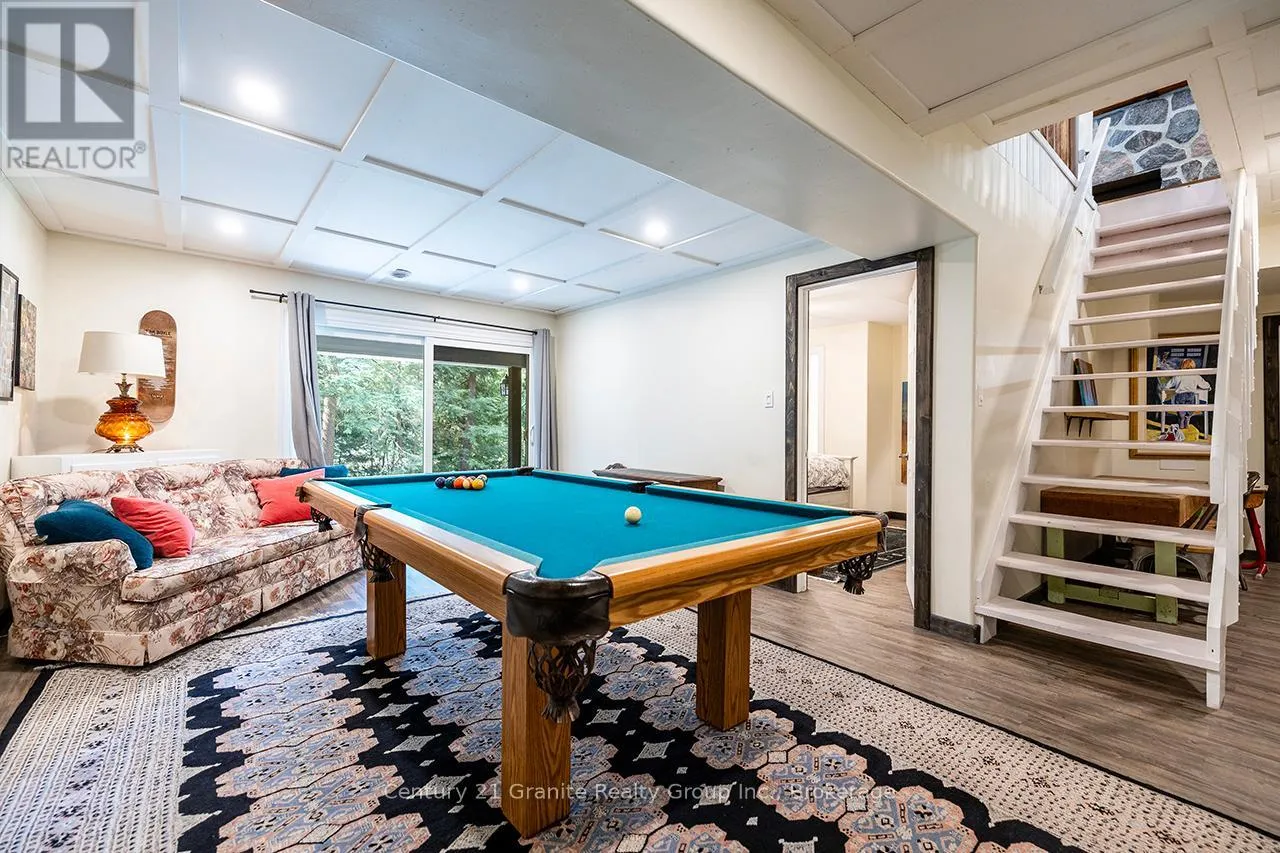 Cross Streets: Monck Rd/Hwy 35. ** Directions: Hwy 35 to Monck Rd to Nevison Drive. Private Gull River Retreat Turnkey Cottage with Airbnb Income! Set in a peaceful, tree-lined setting on the beautiful Gull River, this charming 4-season cottage offers the ideal family getaway or investment property complete with a proven, licensed Airbnb rental history and many returning guests. The calm riverfront is perfect for kids to swim, paddle, and play safely right from your own shoreline. The spacious great room features a cozy fireplace and walkout to a large deck ideal for relaxing or entertaining. The open-concept kitchen and dining area make it easy to cook and connect with friends and family. Upstairs, you'll find two generous bedrooms and a 4-piece bath. The finished lower level offers two more bedrooms, a fun-filled entertainment room (yes, the pool table is included!), and walkout access to the outdoors. Extensively updated with new windows, flooring, bathrooms, doors, heating, water system, and septic. Stylishly decorated and move-in ready, it also comes with an impressive inclusion list almost everything you need to start cottaging is already here! Enjoy year-round access and a great location under 2 hours from the GTA, close to golf, shopping, and local amenities. Whether you're dreaming of a full-time home, weekend retreat, or income-generating rental, this one has it all. (id:27476)