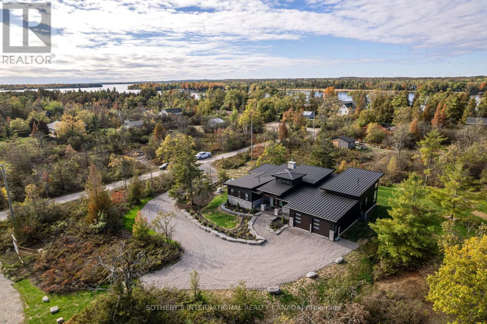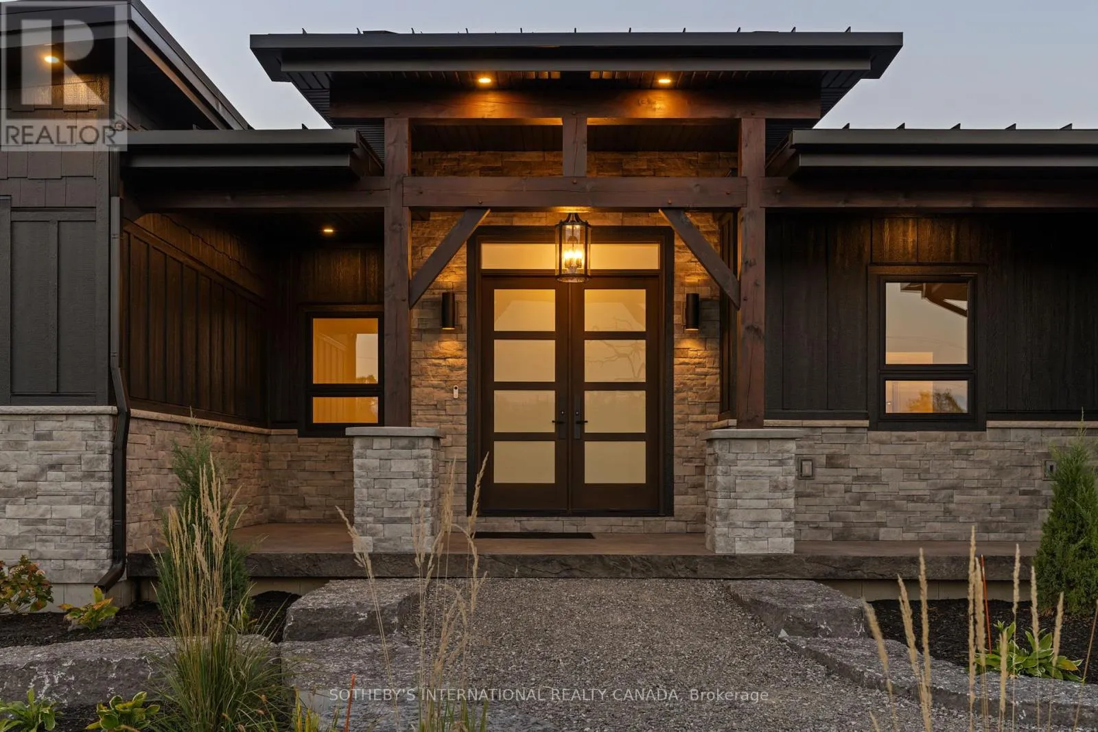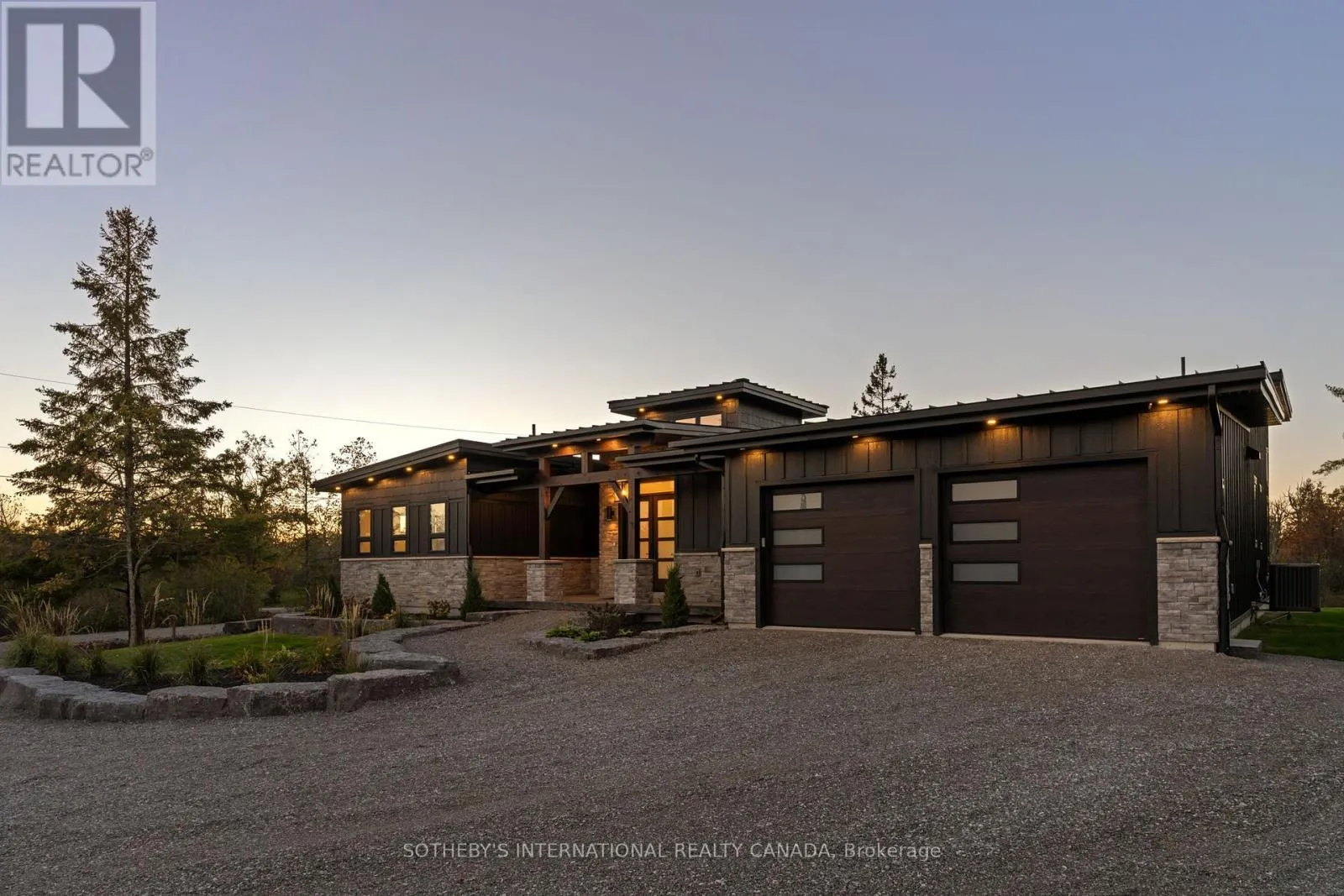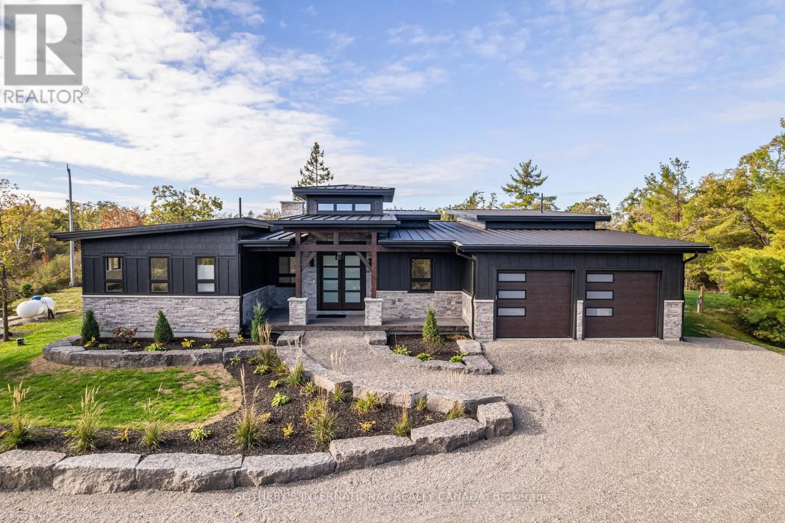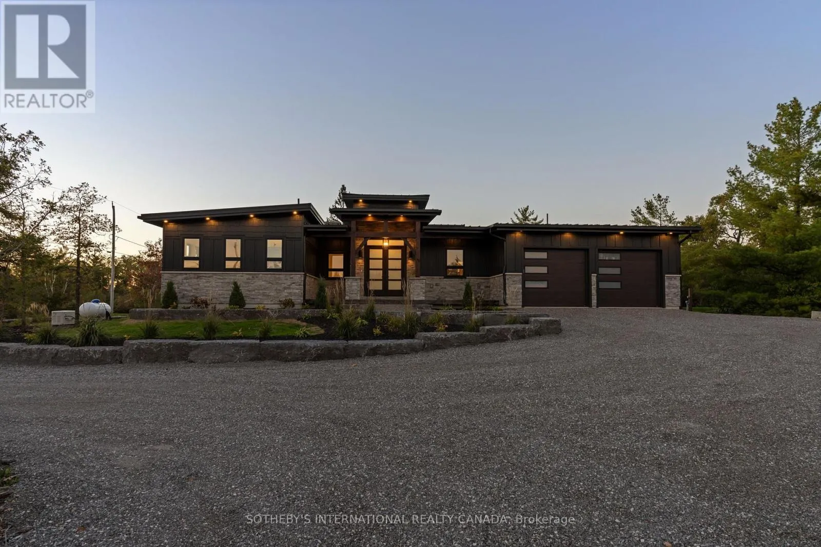 Cross Streets: County Rd 24 and Juniper Park St. ** Directions: Ask Google :). The Timbers on Juniper is a custom residence that epitomizes contemporary and timeless sophistication. Nestled within the serene landscape of Bobcaygeon, this home was crafted with genuine care for the people who'd live here. Defined by clean architectural lines, vaulted ceilings, and expansive floor-to-ceiling windows, the design welcomes light and connection at every turn. The modern timber frame construction is complemented by a steel roof, white oak flooring, and European-inspired corners, balancing strength and softness through texture, muted tones, and subtle architectural detail. Designed entirely for single-level living, the home delivers ease and accessibility ideal for families, professional couples, or those looking to age in place without compromise. The heart of the home features an open-concept living area anchored by a striking stone fireplace that rises to the vaulted ceiling, paired with a beverage centre complete with dual fridges-perfect for entertaining.The culinary kitchen offers custom cabinetry, premium wall appliances, and a dedicated butlers pantry, providing additional prep and storage space. Adjacent to the kitchen is an elegant appliance and coffee centre. Luxury continues with a spacious mudroom with entry from the garage and features custom built-ins, storage, and a charming doggie spa with sink. The primary suite includes an in-room washer and dryer, walk- in closet w/organizers, spa-like ensuite, and private walk-out access. Every practical detail has been elevated to higher standards- spray-foamed basement, full generator, reverse osmosis water system, and iron blaster with UV treatments ensuring comfort, efficiency, and peace of mind. Additional highlights include a private office, insulated garage, and meticulous landscaping that mirrors the home's architectural elegance. Located minutes from downtown Bobcaygeon with easy access to wonderful dining, great shopping, boat access to The Trent Severn Waterway and lovely neighbours! (id:27476)