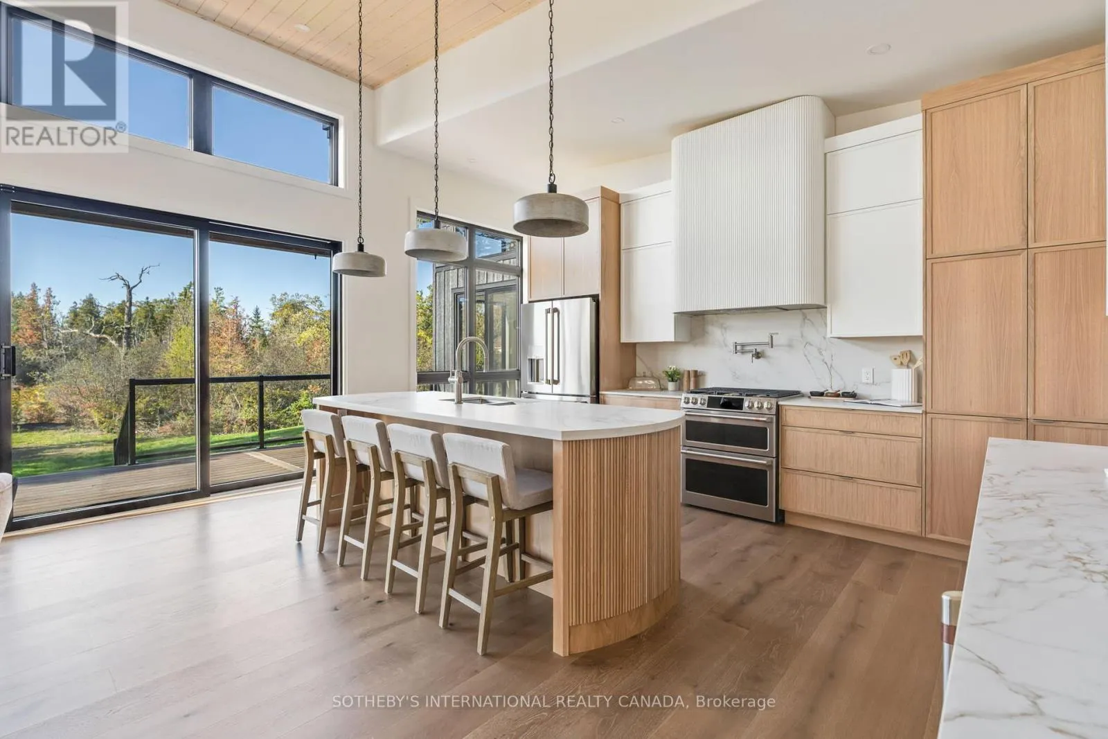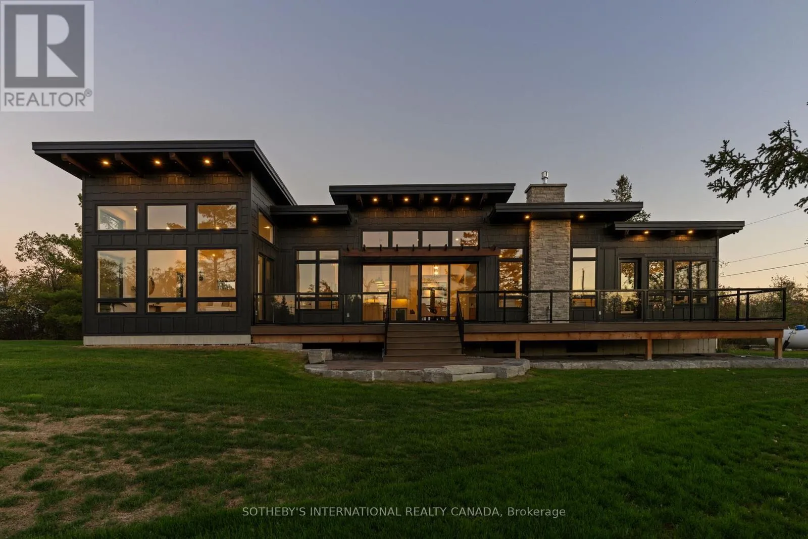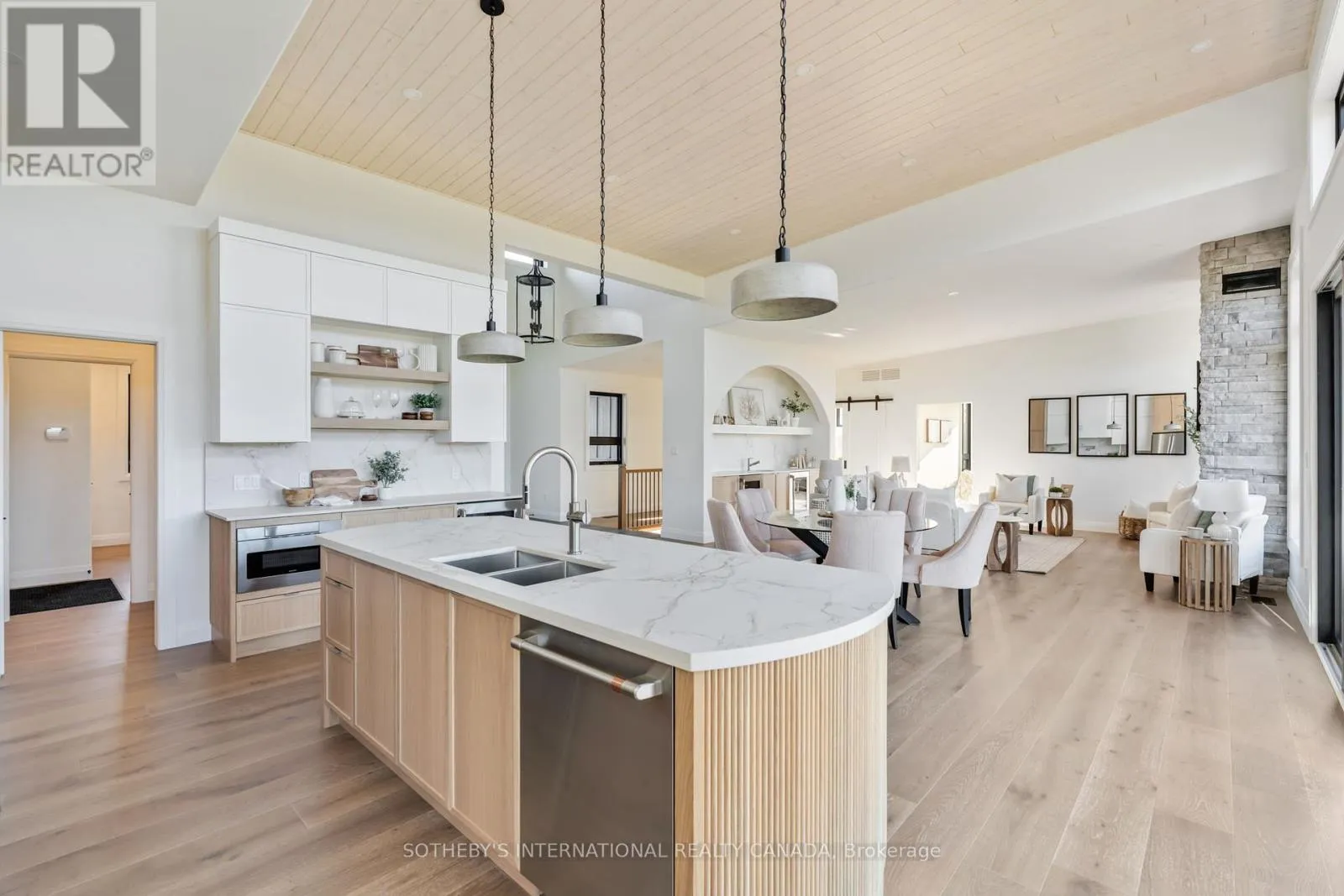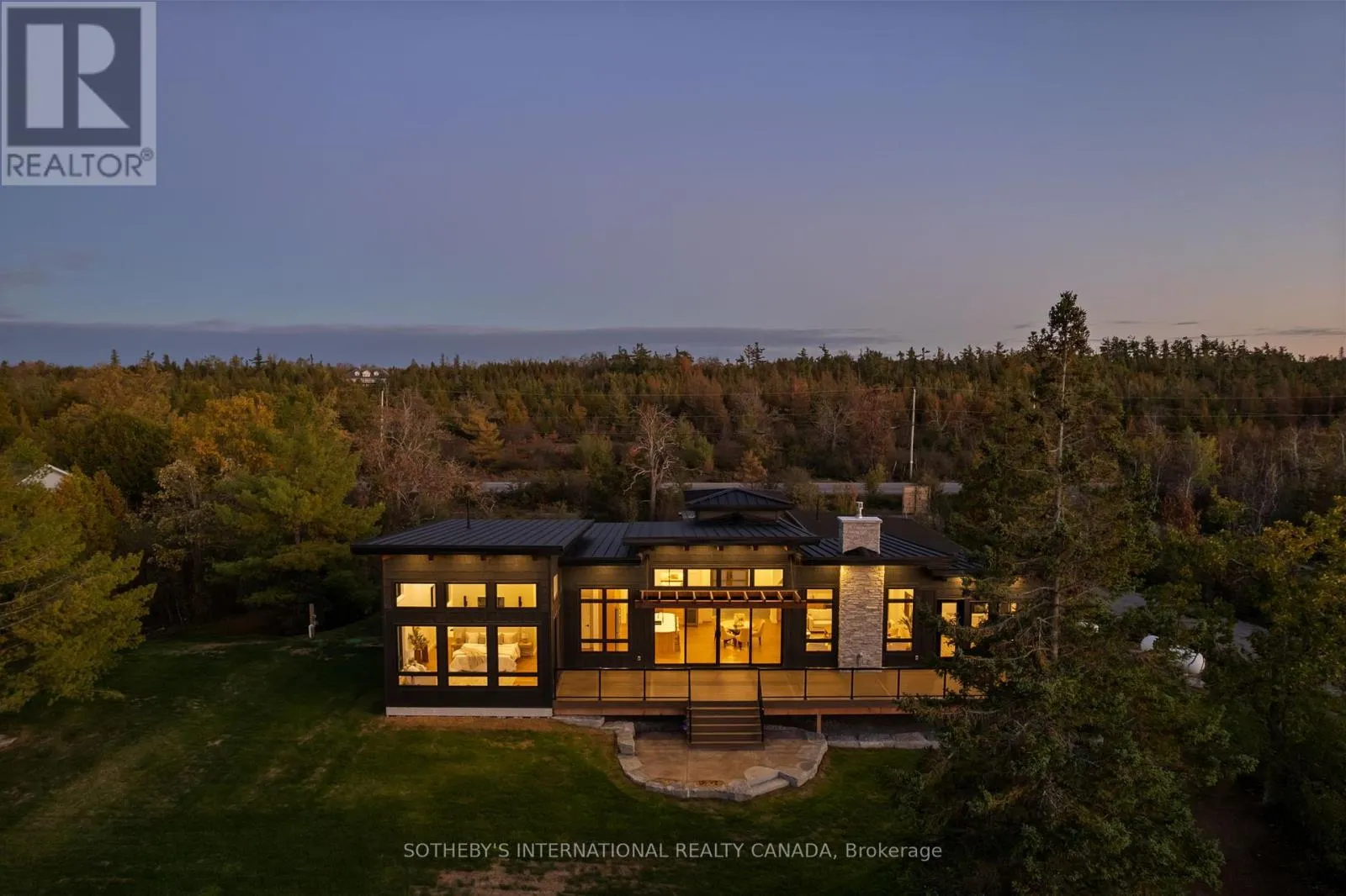 Cross Streets: County Rd 24 and Juniper Park St. ** Directions: Ask Google :). The Timbers on Juniper is a custom residence that epitomizes contemporary and timeless sophistication. Nestled within the serene landscape of Bobcaygeon, this home was crafted with genuine care for the people who'd live here. Defined by clean architectural lines, vaulted ceilings, and expansive floor-to-ceiling windows, the design welcomes light and connection at every turn. The modern timber frame construction is complemented by a steel roof, white oak flooring, and European-inspired corners, balancing strength and softness through texture, muted tones, and subtle architectural detail. Designed entirely for single-level living, the home delivers ease and accessibility ideal for families, professional couples, or those looking to age in place without compromise. The heart of the home features an open-concept living area anchored by a striking stone fireplace that rises to the vaulted ceiling, paired with a beverage centre complete with dual fridges-perfect for entertaining.The culinary kitchen offers custom cabinetry, premium wall appliances, and a dedicated butlers pantry, providing additional prep and storage space. Adjacent to the kitchen is an elegant appliance and coffee centre. Luxury continues with a spacious mudroom with entry from the garage and features custom built-ins, storage, and a charming doggie spa with sink. The primary suite includes an in-room washer and dryer, walk- in closet w/organizers, spa-like ensuite, and private walk-out access. Every practical detail has been elevated to higher standards- spray-foamed basement, full generator, reverse osmosis water system, and iron blaster with UV treatments ensuring comfort, efficiency, and peace of mind. Additional highlights include a private office, insulated garage, and meticulous landscaping that mirrors the home's architectural elegance. Located minutes from downtown Bobcaygeon with easy access to wonderful dining, great shopping, boat access to The Trent Severn Waterway and lovely neighbours! (id:27476)