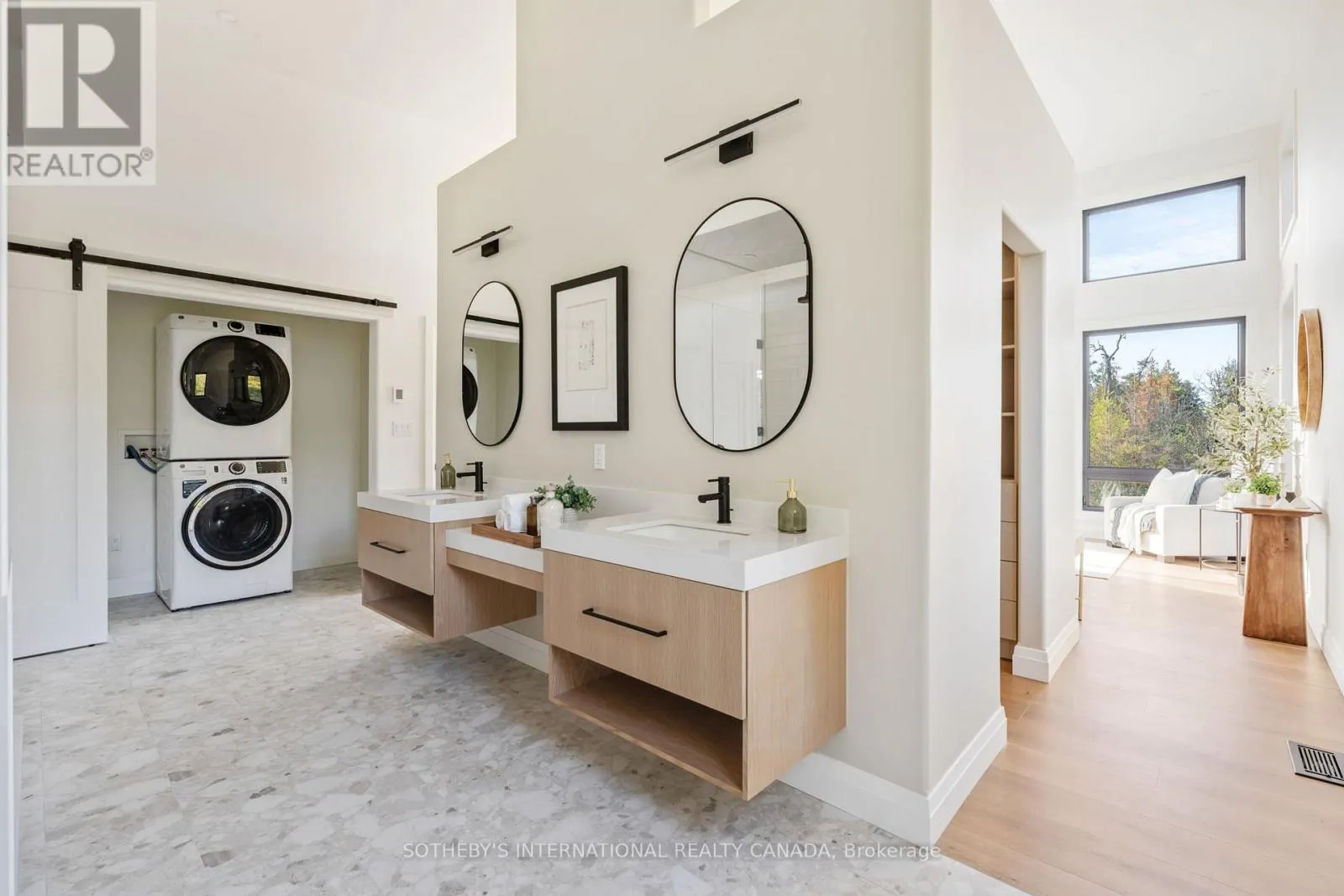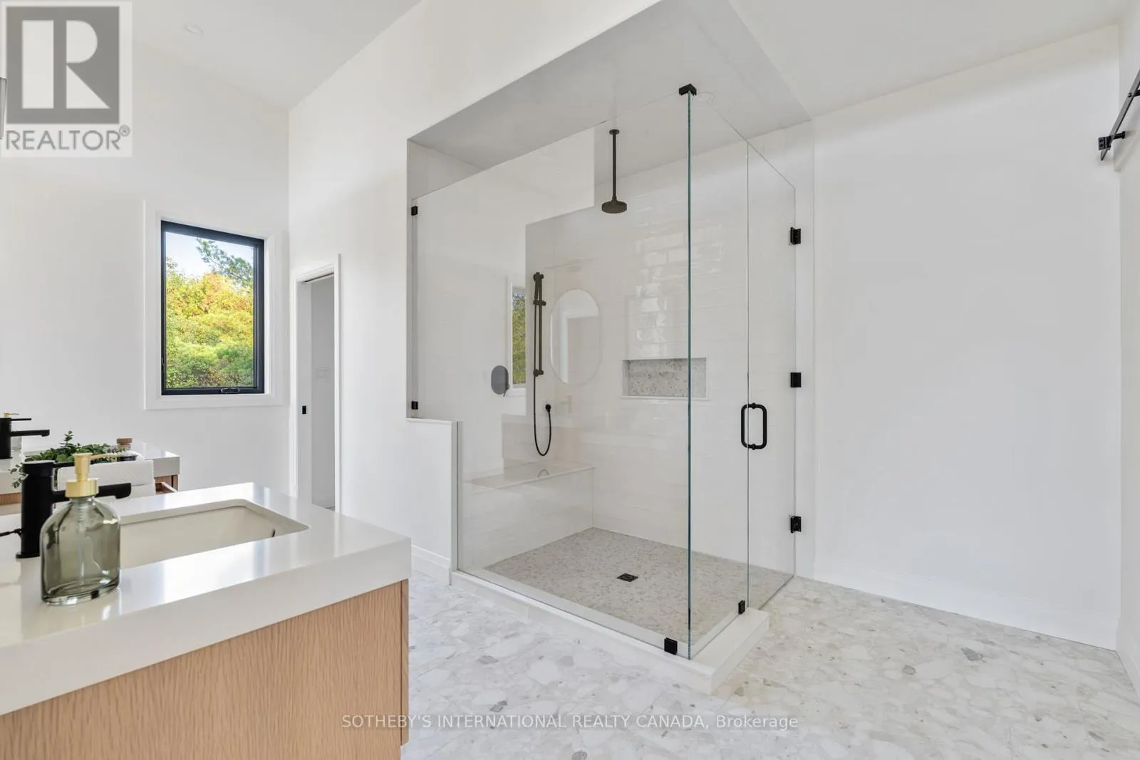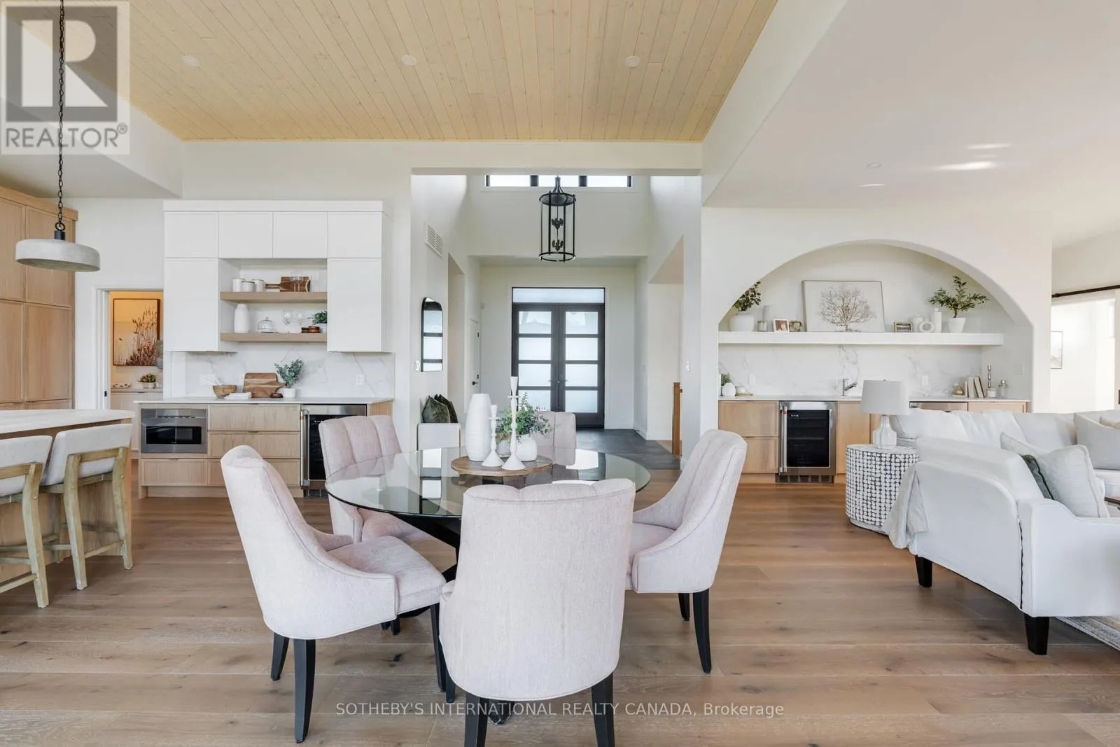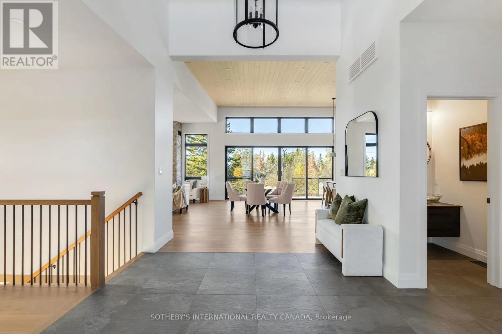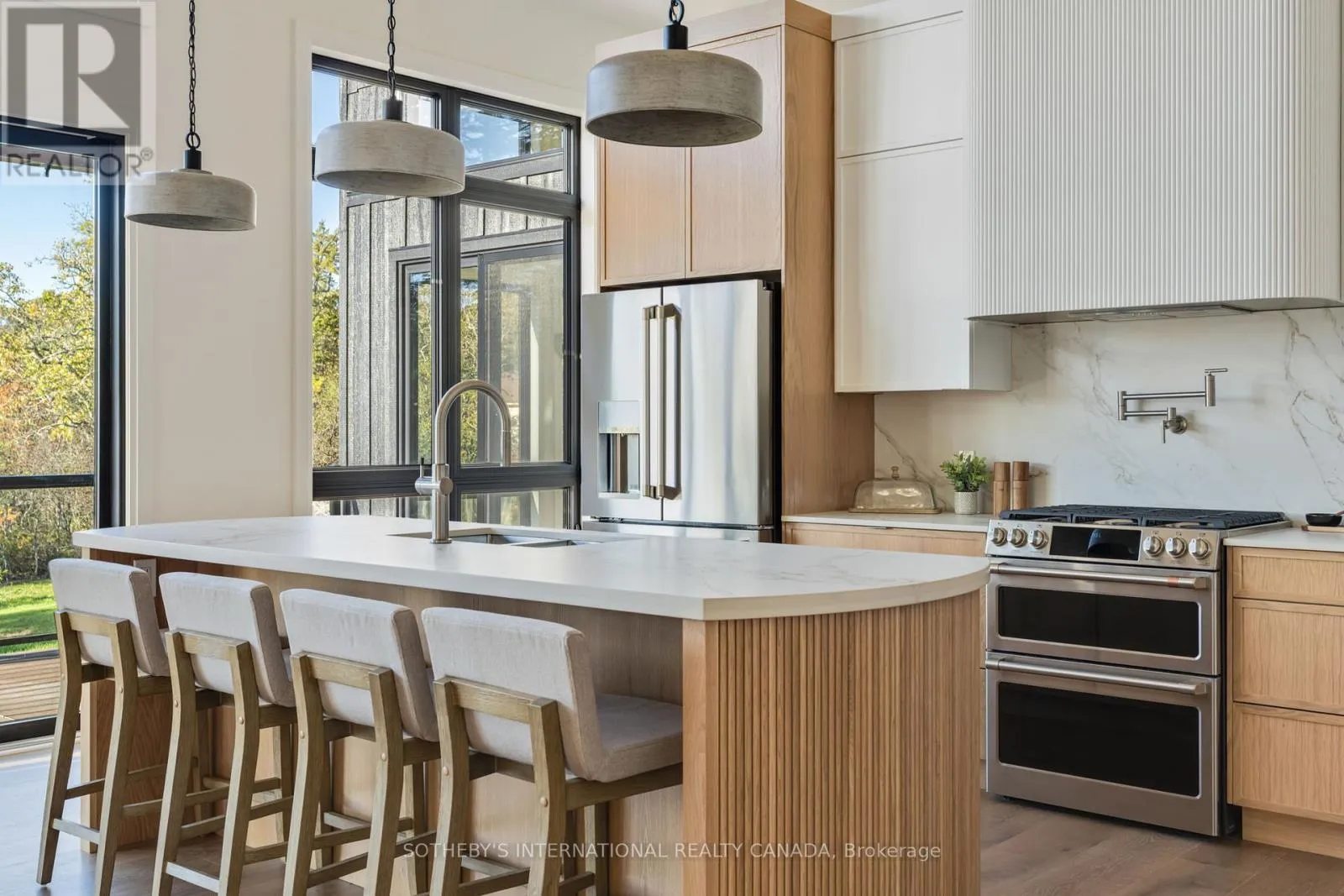 Cross Streets: County Rd 24 and Juniper Park St. ** Directions: Ask Google :). The Timbers on Juniper is a custom residence that epitomizes contemporary and timeless sophistication. Nestled within the serene landscape of Bobcaygeon, this home was crafted with genuine care for the people who'd live here. Defined by clean architectural lines, vaulted ceilings, and expansive floor-to-ceiling windows, the design welcomes light and connection at every turn. The modern timber frame construction is complemented by a steel roof, white oak flooring, and European-inspired corners, balancing strength and softness through texture, muted tones, and subtle architectural detail. Designed entirely for single-level living, the home delivers ease and accessibility ideal for families, professional couples, or those looking to age in place without compromise. The heart of the home features an open-concept living area anchored by a striking stone fireplace that rises to the vaulted ceiling, paired with a beverage centre complete with dual fridges-perfect for entertaining.The culinary kitchen offers custom cabinetry, premium wall appliances, and a dedicated butlers pantry, providing additional prep and storage space. Adjacent to the kitchen is an elegant appliance and coffee centre. Luxury continues with a spacious mudroom with entry from the garage and features custom built-ins, storage, and a charming doggie spa with sink. The primary suite includes an in-room washer and dryer, walk- in closet w/organizers, spa-like ensuite, and private walk-out access. Every practical detail has been elevated to higher standards- spray-foamed basement, full generator, reverse osmosis water system, and iron blaster with UV treatments ensuring comfort, efficiency, and peace of mind. Additional highlights include a private office, insulated garage, and meticulous landscaping that mirrors the home's architectural elegance. Located minutes from downtown Bobcaygeon with easy access to wonderful dining, great shopping, boat access to The Trent Severn Waterway and lovely neighbours! (id:27476)