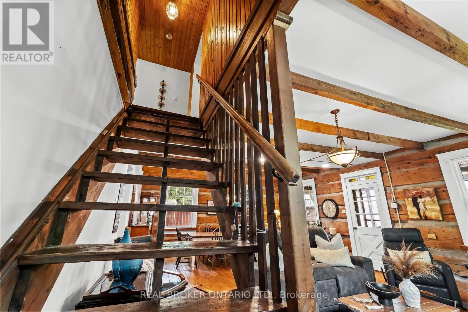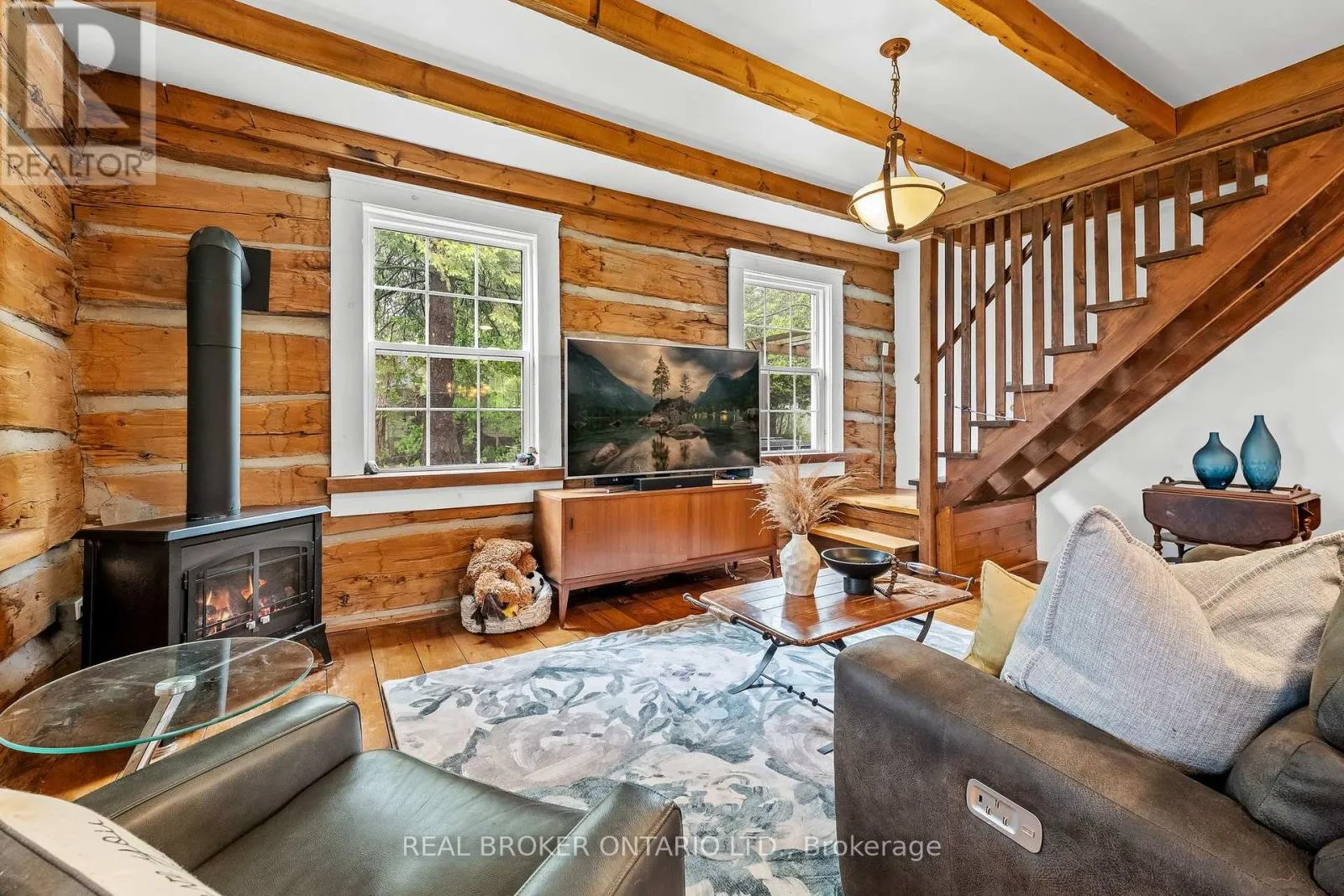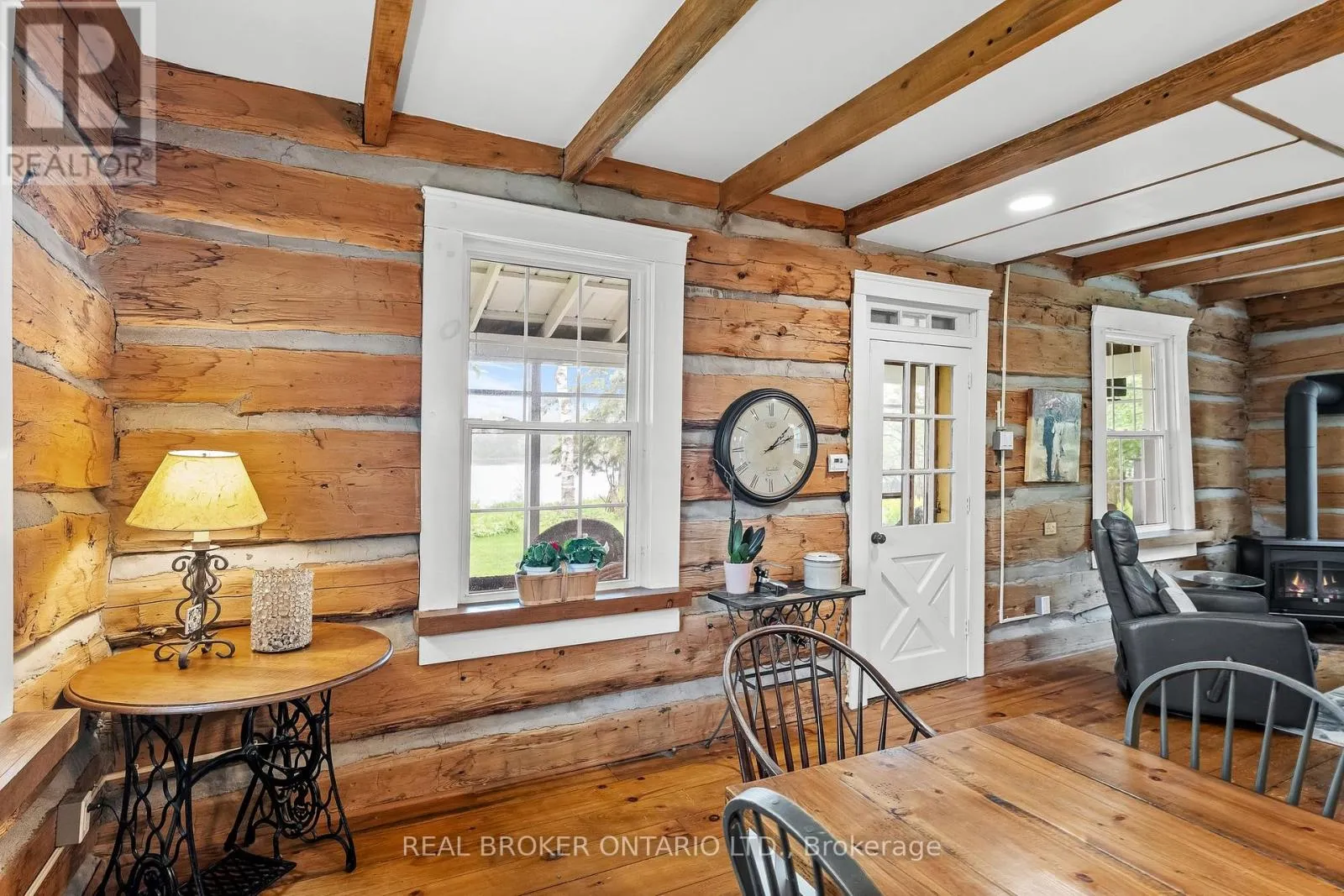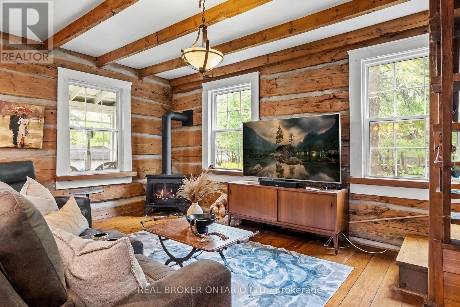 Cross Streets: Cowans Drive to Cowans Cres. ** Directions: Peace Rd to Cowans Drive. Imagine ending your workday in a tranquil four-season retreat along the historic Trent-Severn Waterway, with 75 feet of direct frontage on the peaceful Pigeon River-your gateway to endless boating adventures through Pigeon Lake and beyond. Overlooking the natural beauty of Emily Provincial Park, this property captures the essence of cottage living with all the comforts of home. Originally crafted in the 1860s, the authentic log cabin was lovingly relocated and expanded with a thoughtful modern addition. Inside, you'll find an inviting blend of history and function with an eat-in kitchen, two full bathrooms, second-floor laundry, and three spacious bedrooms. Recent upgrades include newer wiring, windows, shingles, and carefully executed restoration work that preserves the cabin's warm, rustic character while adding modern convenience. Outdoors, life flows effortlessly from the screened-in porch overlooking the river, perfect for summer evenings. Launch your canoe, paddle board, boat or simply drop a line from your private dock and embrace the riverside lifestyle that makes this home truly one-of-a-kind. Peaceful, picturesque, and rich in character-this is more than a home; it's your front-row seat to the Trent-Severn. (id:27476)