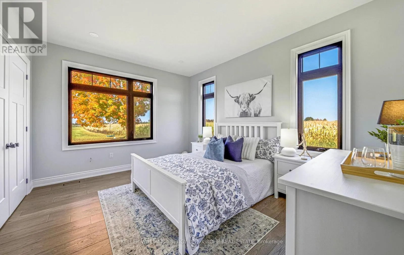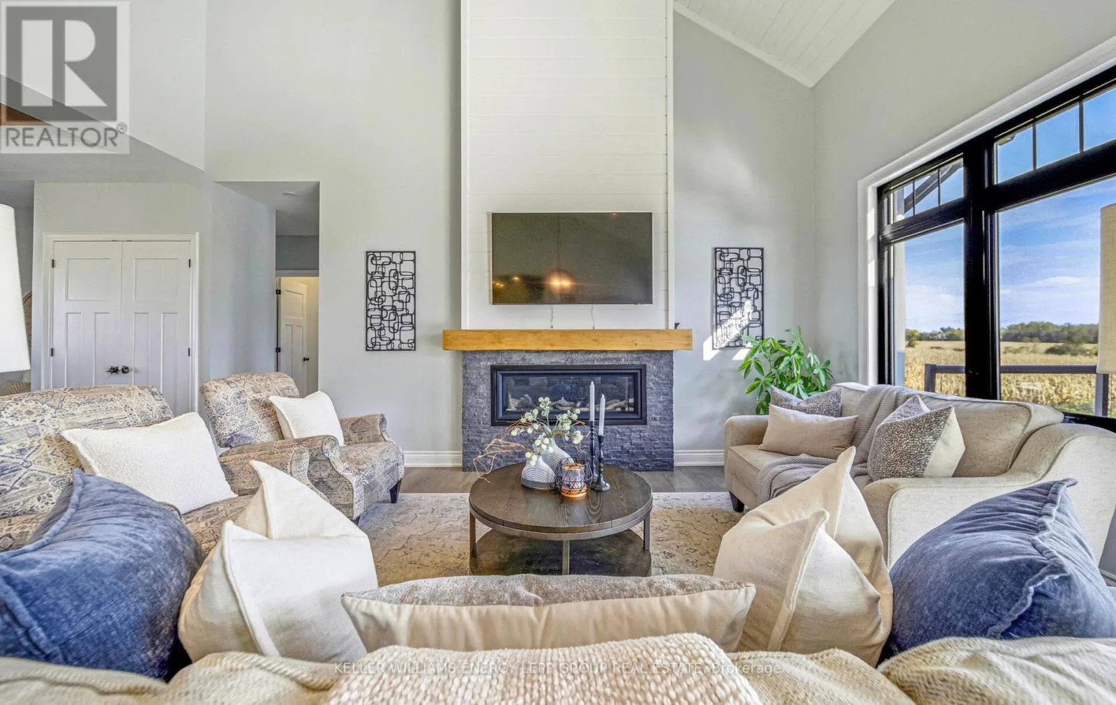 Glenarm Road & 46 Custom-Built Bungalow on 2.75 Acres - Woodville! Discover this stunning custom-built (2021) bungalow on a picturesque country lot in the peaceful community of Woodville. Surrounded by farmer's fields and on Approx. 2.75 acres of land. Just minutes from town conveniences, this home blends rural charm with high-end features and modern design. Step inside through the oversized 4ft x 8ft front door to find hickory hardwood flooring, a solid maple staircase, and soaring cathedral ceilings in the elegant family room. Enjoy large windows, pot lights, and a cozy fireplace with seamless flow into the dining area. The updated kitchen features a large island with bar seating, quartz countertops, high-end professional appliances, backsplash, and modern cabinetry under high ceilings with pot lights. The luxurious primary suite offers a walk-in closet, spa-like ensuite with in-floor heating, and a walkout to the expansive 1,800 sq ft deck with a 12ft x 8ft patio door overlooking the backyard. The walk-out basement provides extra living space with a family room, bedroom, full bath, and second kitchen and updated laminate floors. Upper deck is fully sealed, providing a waterproofed walkout patio from the basement. Enjoy direct access to the 30' x 34' heated attached garage with two oversized 10' x 10' insulated doors and a heated loft above, currently used as an office. A 6-person hot tub (2021) and a new 36' x 18' above ground saltwater pool (2025) with 1,100 sq ft pool deck make the backyard a true retreat. Landscaping includes armour stone features and an upper deck with glass railings for relaxation or entertaining. The home is powered by a 24 kW Generac generator and offers 400 amp service across 4 panels. A great feature in the garage, a built-in dog washing station that also works perfectly for rinsing tools.Located minutes from Woodville and a short drive to Lindsay, this home offers the tranquility of rural living with modern comfort and convenience-a true turnkey retreat. (id:27476)