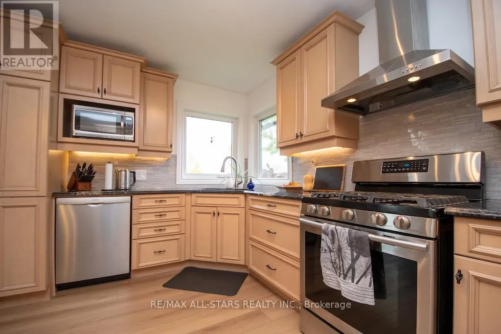 Cross Streets: Hwy 35/Long Beach Road. ** Directions: Hwy 35 to Long Beach Road, Right onto Anderson Drive, Right onto Victoria Drive. Wow!! Your opportunity to live in the serene waterfront community of Southview Estates awaits in this exceptional 2+3 bedroom bungalow @ 120 Victoria Dr. The covered front porch grants direct access to tranquil waterfront views, complimented by a newly installed stamped-concrete walkway. Enjoy the comfortable layout and freshly painted neutral colors throughout this home. The dream kitchen includes modern appliances, granite countertops, & quality cabinetry. This bright & airy home boasts a main floor great room, den, spacious primary suite with walk-in closet & 4 pc ensuite, 2nd bedroom, additional 4 pc bath, and main floor laundry. The fully finished basement includes a spacious rec room with fireplace & wet bar, an office, 2 bedrooms and a 4 pc bath. Discover the expansive backyard overlooking a tree-lined greenbelt, complete with an oversize deck. Savor all that the lakeside lifestyle offers with your annual $30. Association fee - a beach, park, boat launch, private docking privileges (additional $50. annual fee), community center & ball diamond. This property blends indoor comfort with outdoor charm with its close proximity to the Trans Canada Trail system for hiking, biking, ATV and snowmobile use. The perfect retreat for your lakeside lifestyle! (id:27476)