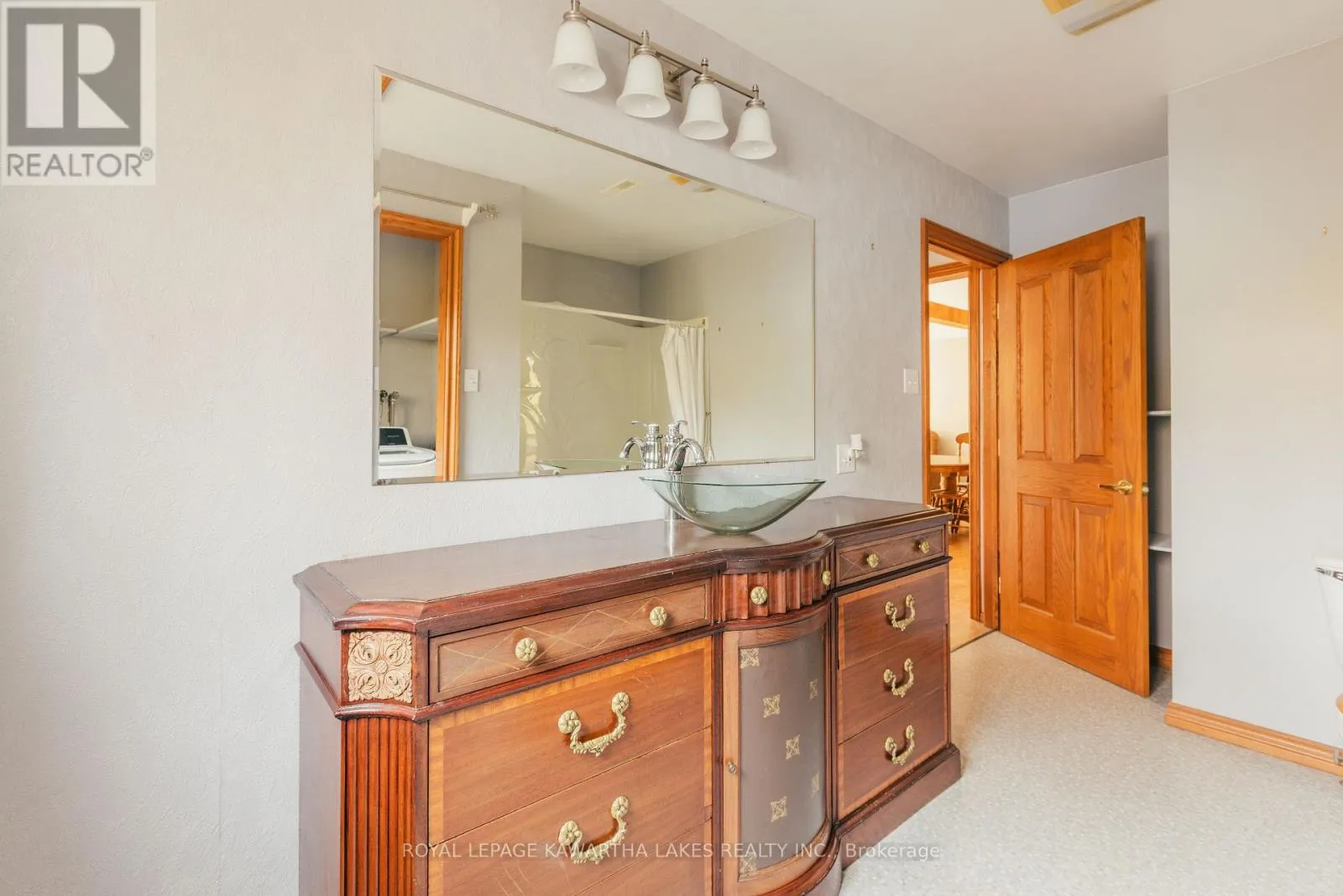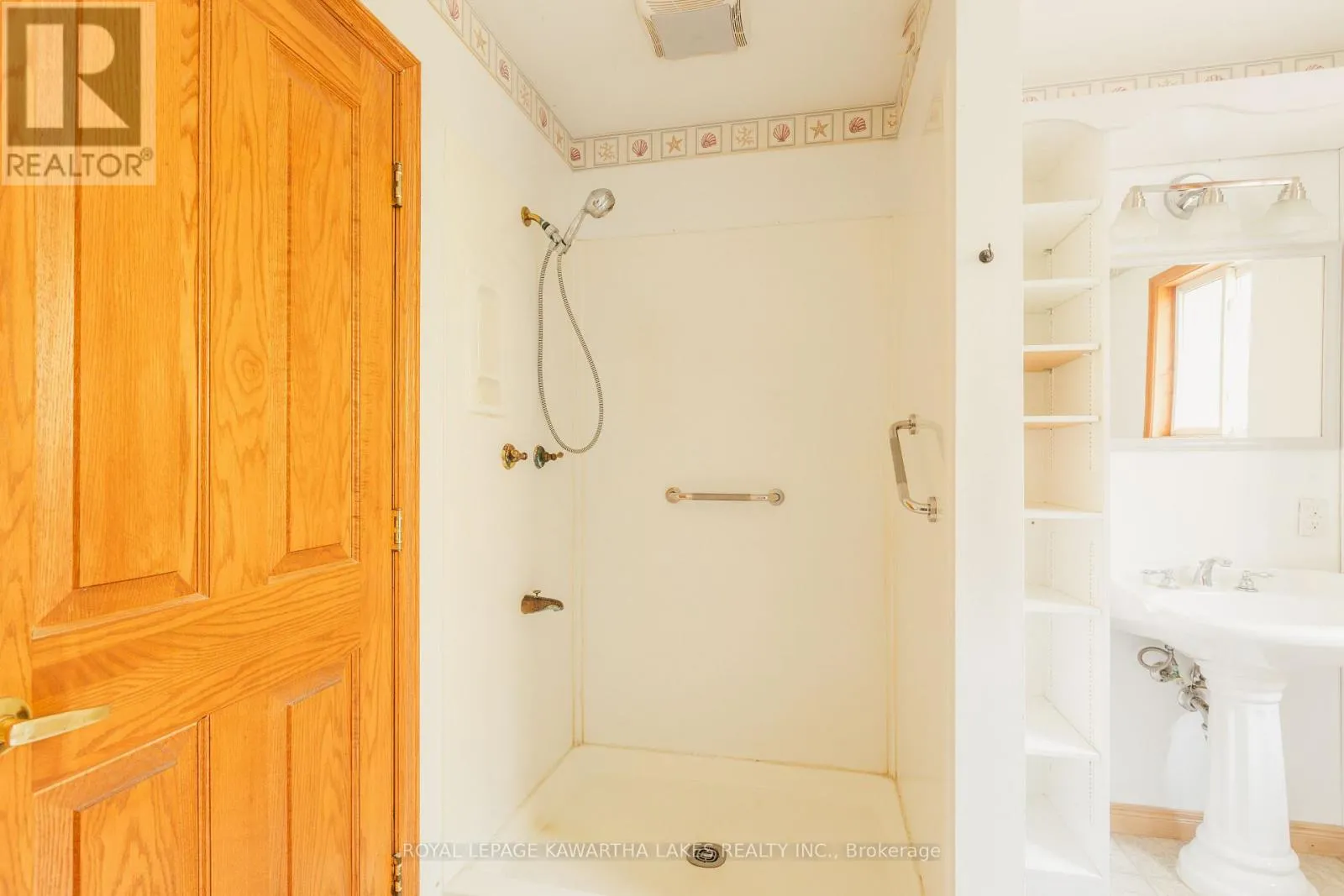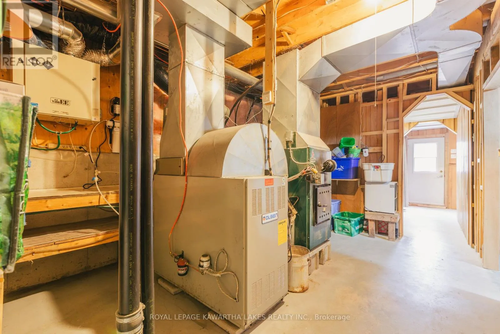 HWY 48 Nestled in a lush, private 2 acre forest, this 1200 sqft raised bungalow offers tranquility and natural beauty, often with deer grazing right on the front lawn. The open concept main living space features vaulted ceilings and a stunning wall of windows that frame the surrounding trees. The master bedroom includes a walk in closet and ensuite, while the second bedroom is located on the opposite end of the home, next to a second full bath with laundry. The partially finished walkout basement has a spacious rec room (or potential third bedroom), a 2pc bath, and generous storage rooms. An electric dumbwaiter transports groceries from the foyer up to the kitchen. Outside there is a 25' x 35' workshop, tool shed, and firewood shed. Drilled well, steel roof, fibre optic internet available, and just down the road a boat launch to beautiful Balsam Lake. Built in aprx 1998. (id:27476)