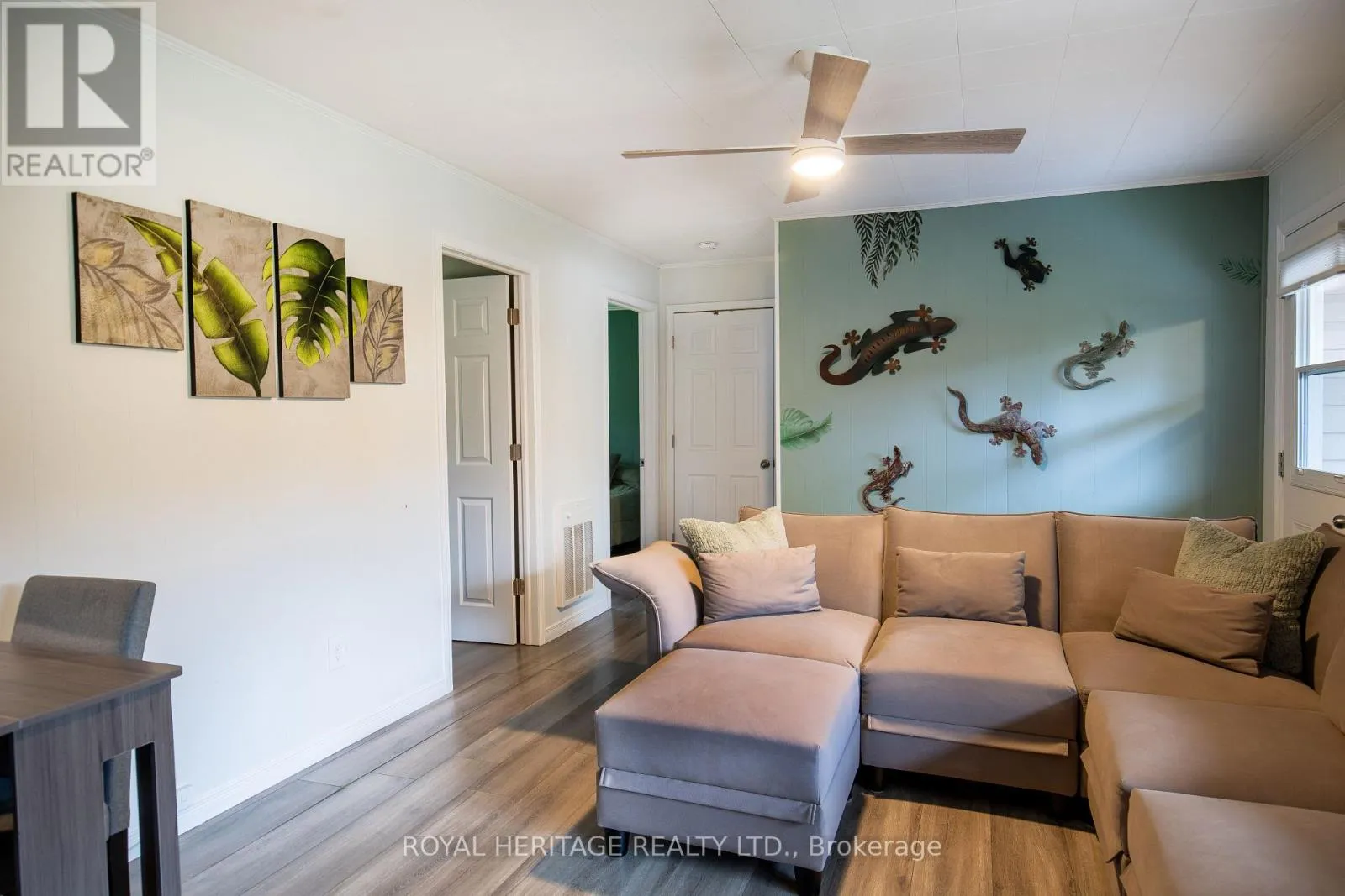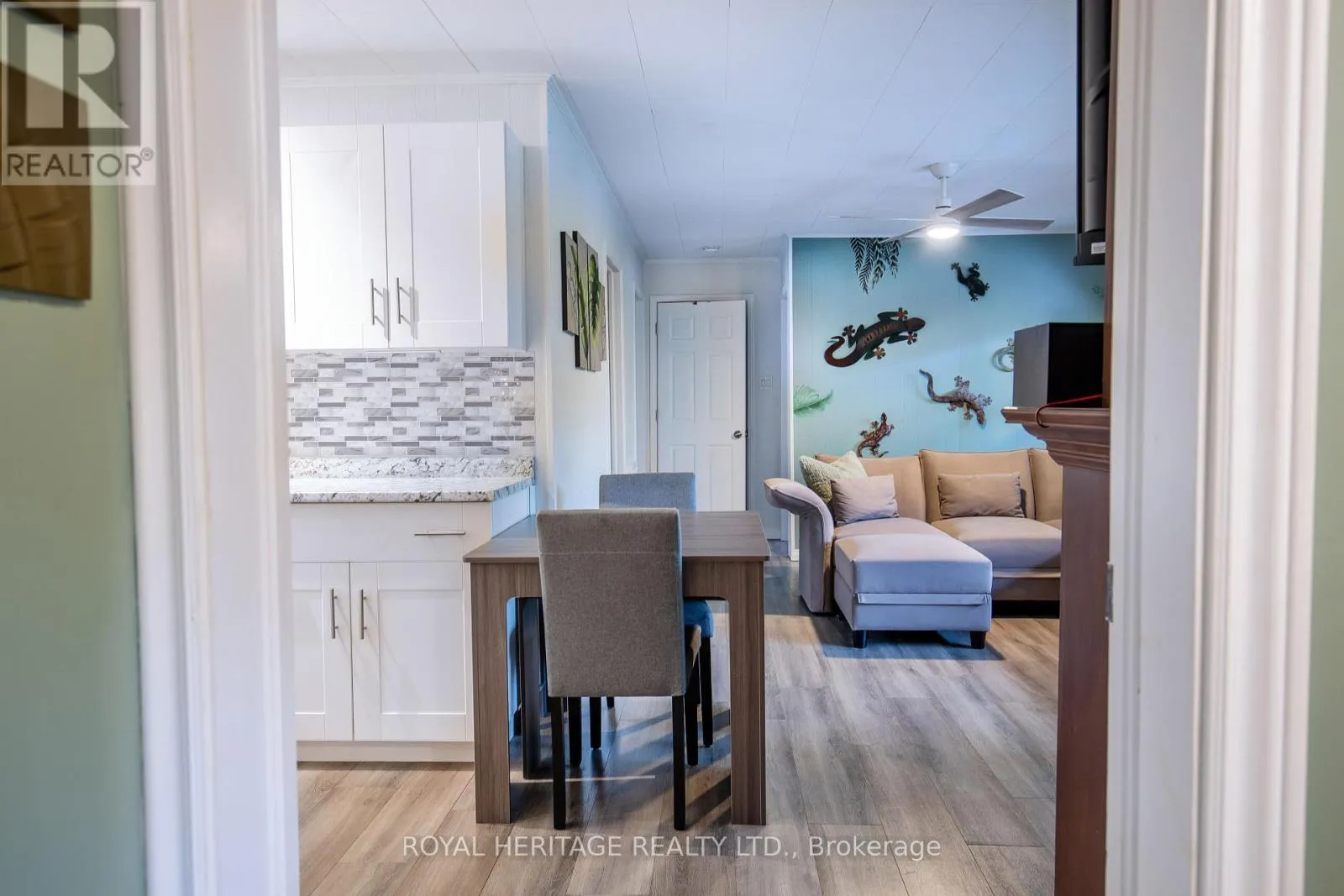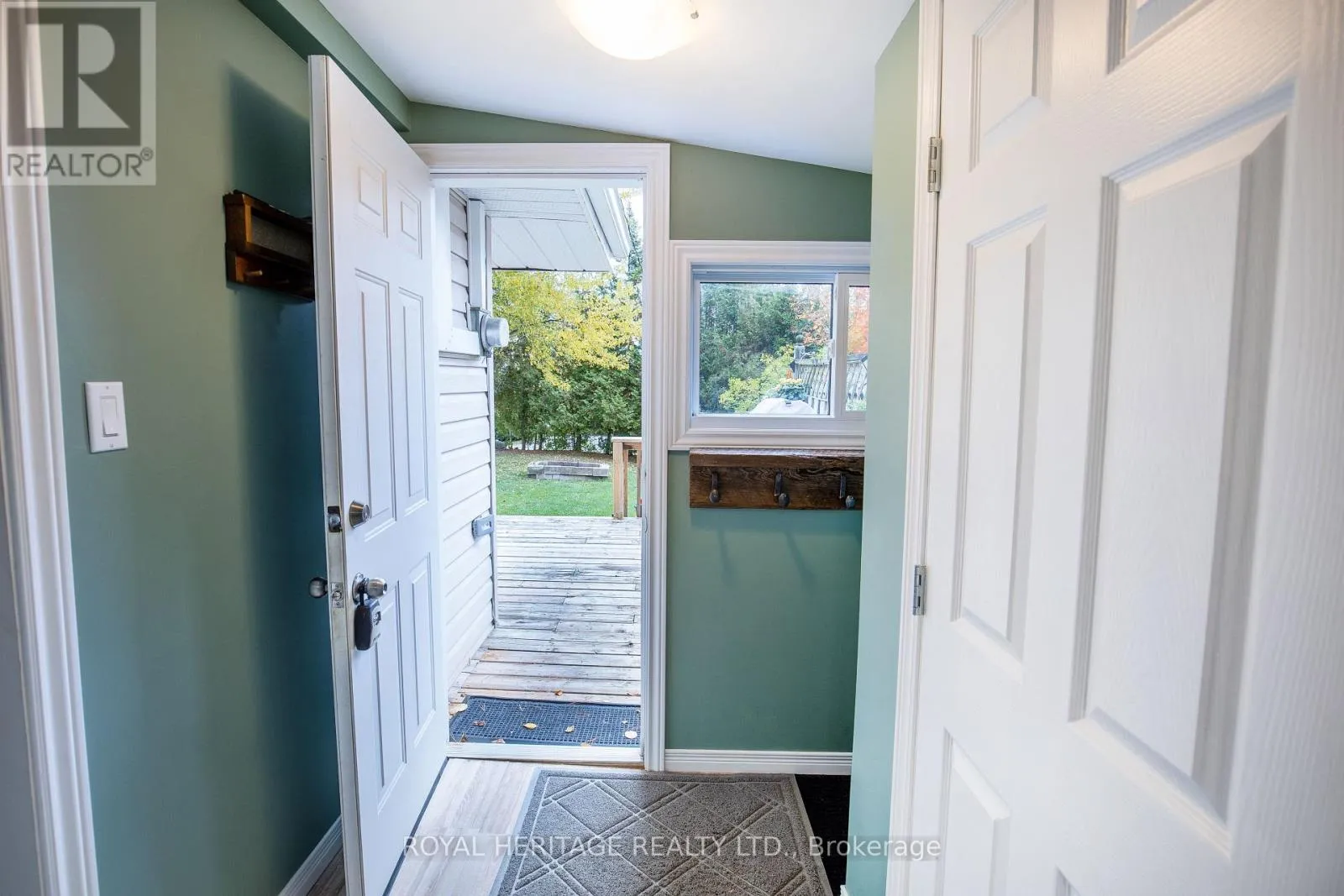 Cross Streets: 35 & King's Wharf. ** Directions: King's Wharf Road to Crosby. Nestled on the quaint waterfront community of Lakeview Estates, you'll find this super cozy, low-maintenance 3-bedroom home. Nothing to do but Unpack, perfect for those looking to start their home ownership journey or those needing to downsize. Located on the west shore of Pigeon Lake & close to Bobcaygeon, this 4-season home is perfect. Within walking distance to the community park with water access, playground, boat launch and boat docking. Spend your days lakeside. Bright living room with propane fireplace, newer kitchen, 3 bedrooms and full bath. Newer steel roof, vinyl siding, fascia & soffit & windows. Updated electrical panel & Plumbing in September 2024. Beautifully treed, private lot with road access from the rear as well. The association fee is only $70 per year! (id:27476)