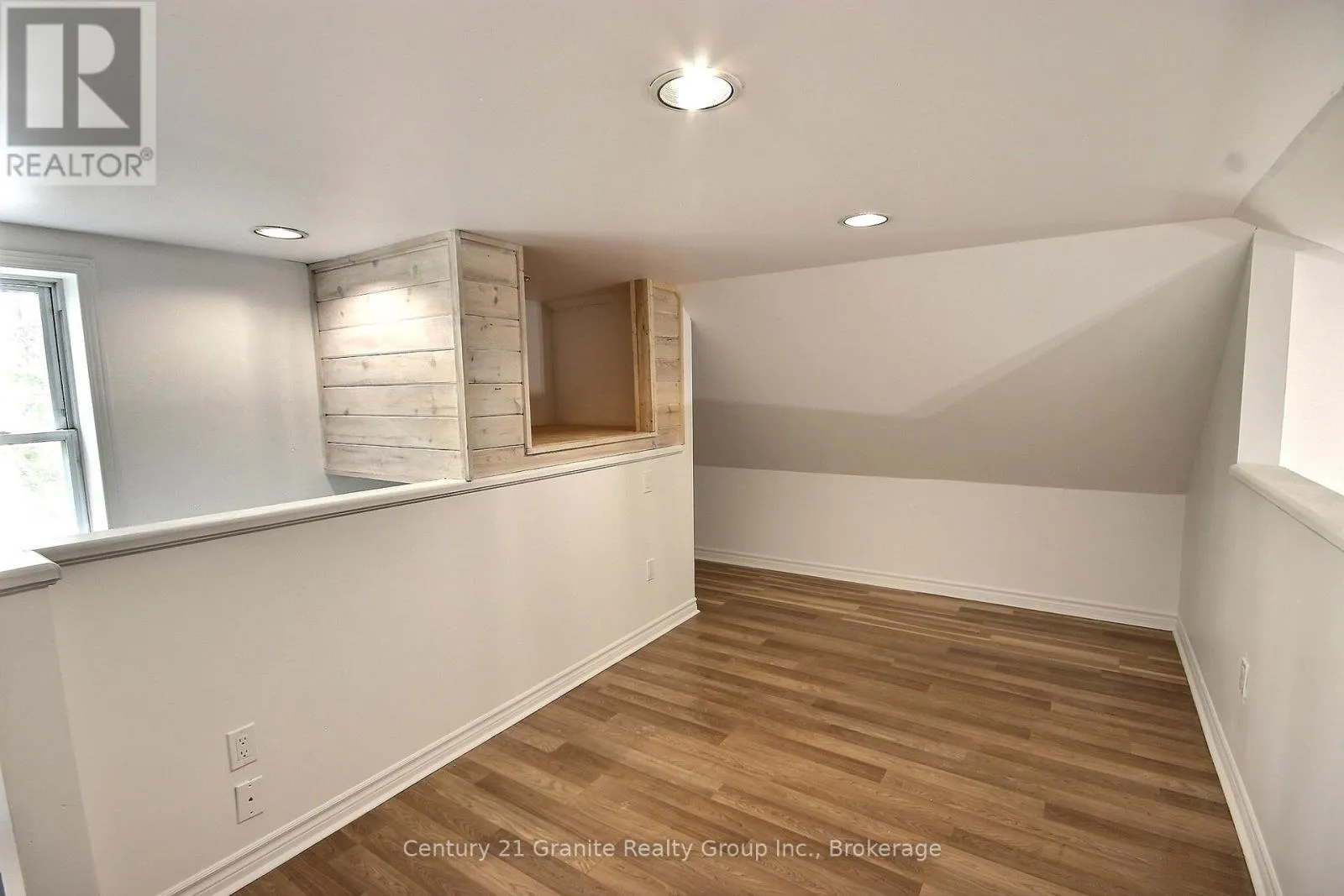 Cross Streets: County Rd 121 and County Rd 503. ** Directions: From County Rd 121 and County Rd 503 turn onto county Rd 503 and immediate right onto Dickson Rd. Looking for something special? Looking for something affordable? Looking for something that is move in ready? This could be the one for you! Located in the charming town of Kinmount this home was once the Baptist Church and has since been renovated to become a delightful 2 bedroom home. As soon as you enter the front door you'll be delighted with the openness of the living room with cathedral ceiling. The woodstove will take away any chills and help keep heating costs down. An oversized bathroom includes the laundry all on the main floor. The kitchen has just been renovated and is large enough for a small bistro sized table and chairs. The huge primary bedroom runs just off the kitchen and incudes such features as an oversized closet and walkout to deck with screened in gazebo. Upstairs and overlooking the living room is the second bedroom. A perfect spot for children to claim as their own. Kinmount is an amazing town that includes such features as the Kinmount Fair, and the world famous Highlands Theatre and Museum. The waterfront park is just a short walk away on the beautiful Burn River, and shopping is also only a few steps away from home. Located on a dead end street means quiet living in this quaint Ontario town. (id:27476)