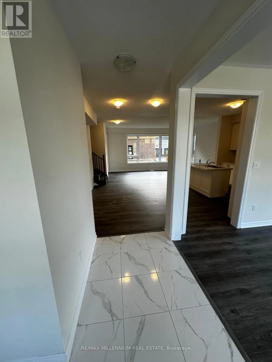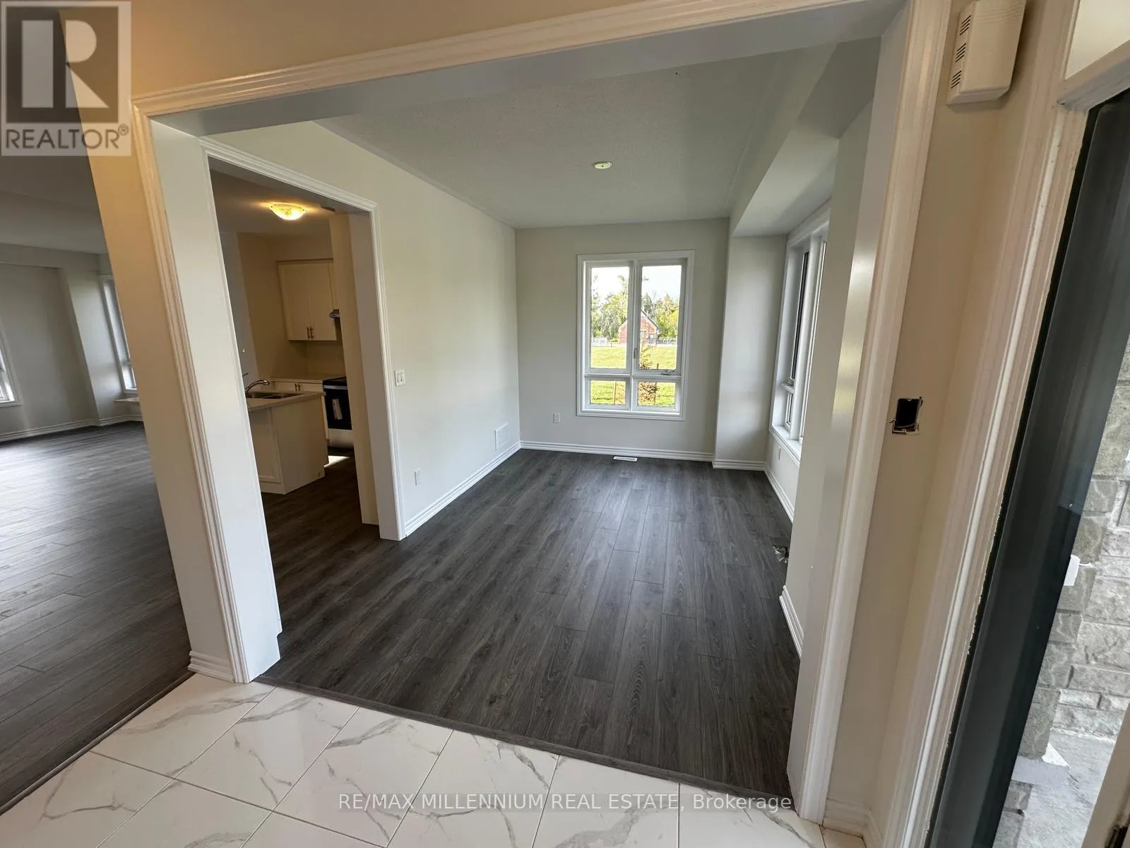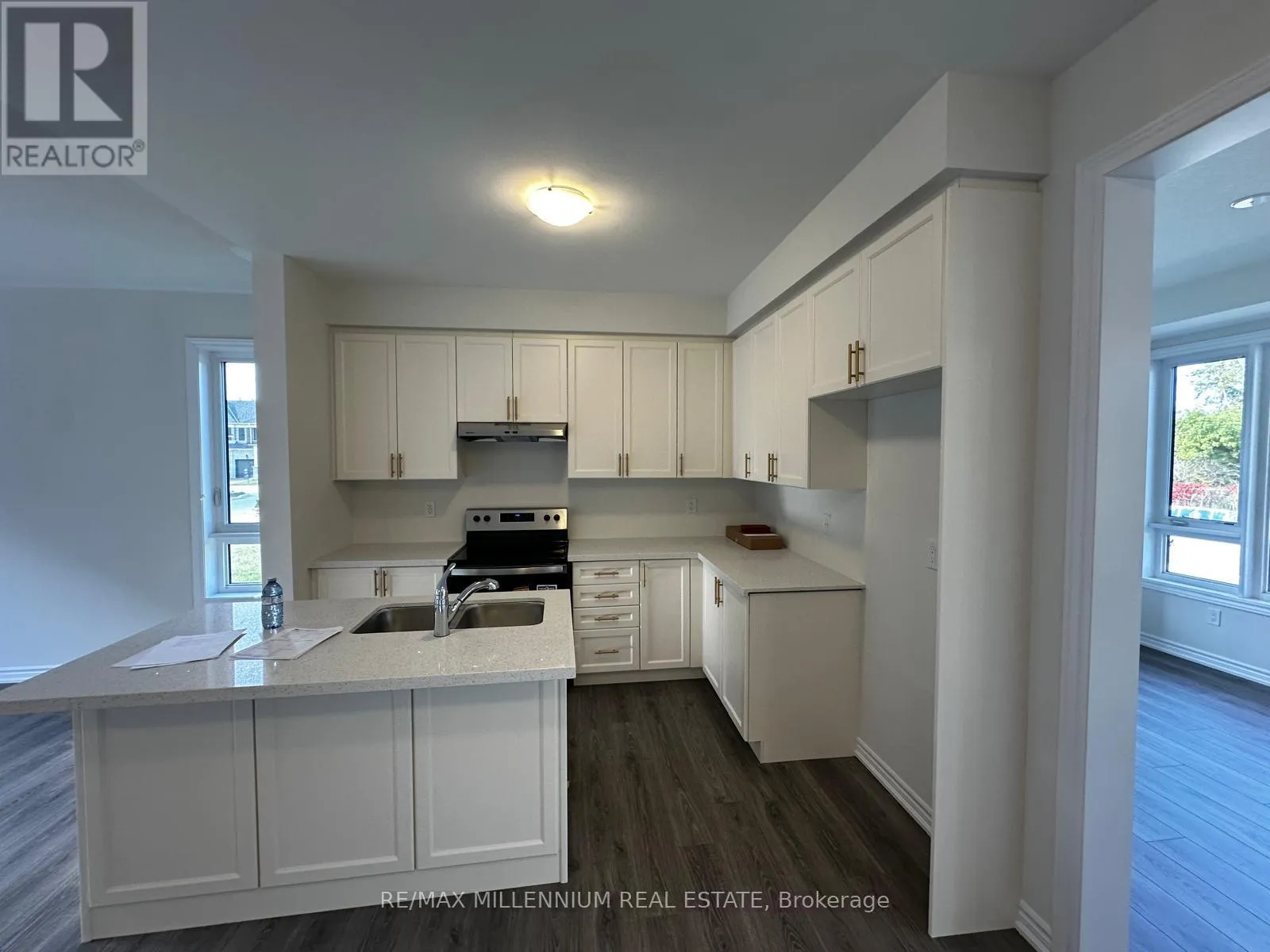 Cross Streets: Lindsay St North/ Eglington St. ** Directions: In front of Pioneer Park. Garage on the Back Entrance. Brand new never lived freehold townhome by Fernbrook Homes in the Hygge community. Rear lane layout with a two car detached garage and a private yard between the home and the garage. Bright open concept main floor with approximately nine foot ceilings and large windows that bring in natural light. Chef's kitchen with upgraded quartz counters, stainless steel appliance package with self clean range, fridge, dishwasher, and hood fan, a double bowl sink, and an extended breakfast bar. Upper level features laminate flooring in all bedrooms and the hallway, a primary bedroom with a walk in closet, and an ensuite with a glass shower and a quartz countertop. Quality construction includes HRV, a high efficiency gas furnace with a humidifier, smooth ceilings in the kitchen and all bathrooms, two exterior water taps, and a full unfinished basement for storage. Driveway and community landscaping to be completed on the builder schedule. Enjoy nearby nature, parks, and future neighbourhood amenities along the Scugog River with easy access to schools, shopping, the hospital, and major routes. Ideal for families and professionals seeking a clean modern home in a growing area. (id:27476)
