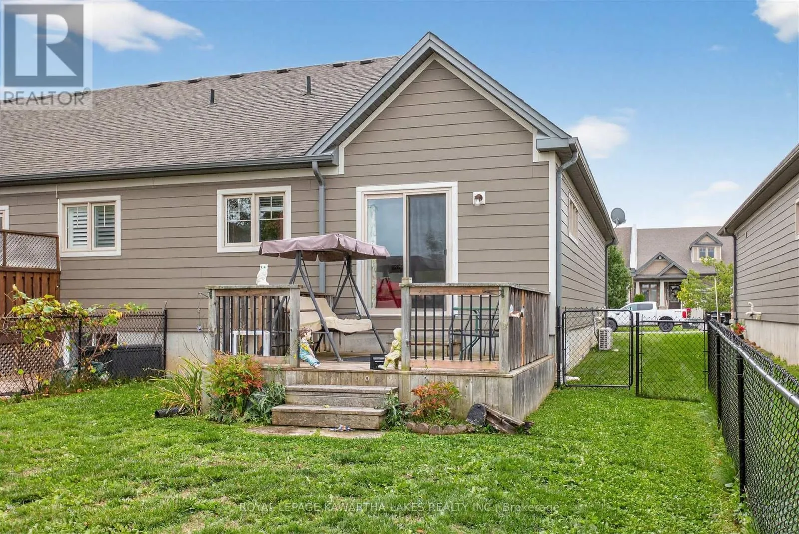 Cross Streets: Angeline St N & Kent St W. ** Directions: Angeline St North of Kent St W. This charming end-unit 1+1 bedroom freehold townhome offers the perfect blend of comfort, convenience, and style all in just the right size. Ideal for downsizers or anyone seeking a low-maintenance lifestyle, this home features an inviting open-concept layout designed for relaxed living and entertaining. The main floor boasts a spacious primary bedroom with a large walk-in closet and private 3-piece ensuite, plus a step-saving kitchen, main floor laundry, and a bright, airy living space enhanced by extra windows that fill the home with natural light. From here, walk out easily to a private backyard with convenient side access, perfect for soaking in the cozy fall vibes. Downstairs, the finished basement offers a generous rec room, a full 4-piece bath, and an additional bedroom ideal for guests or hobbies. Additional features include a 1-car garage, plenty of storage, and a warm, welcoming atmosphere throughout. All of this is located just steps to shopping, hospital, parks, and more you'll love the walkable, community-focused lifestyle. Whether you're enjoying a crisp autumn stroll or entertaining family and friends, this home has it all. Don't miss this opportunity end-unit homes in this location dont last long! (id:27476)