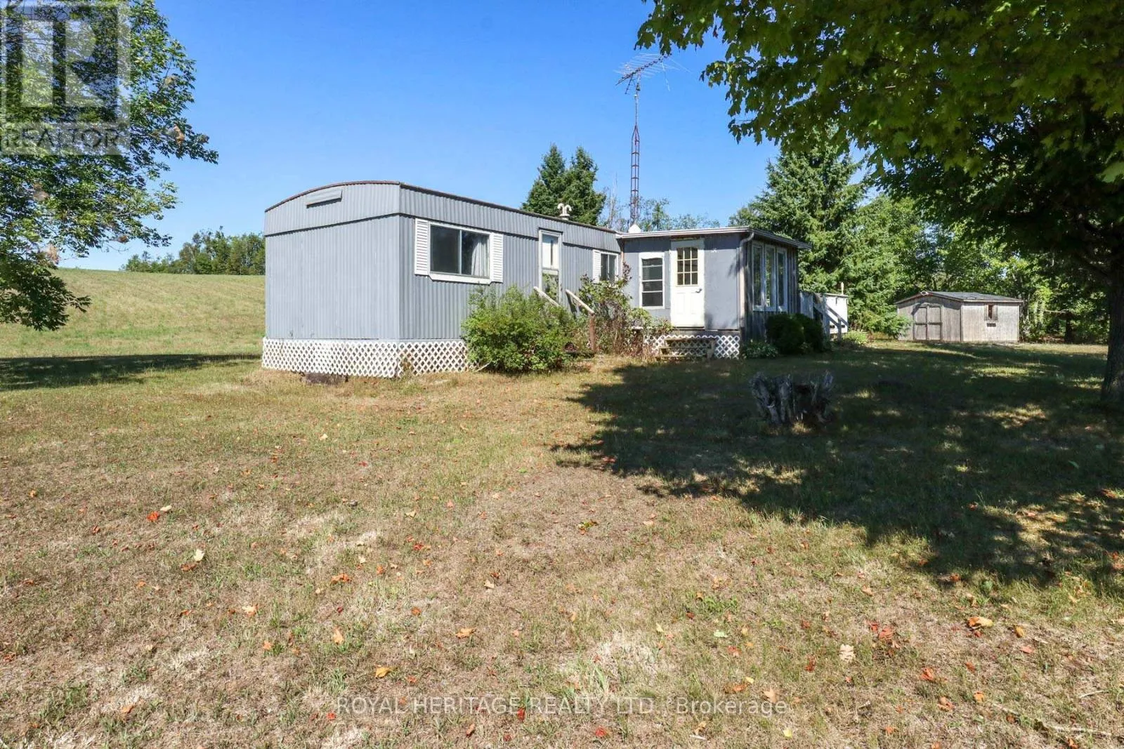 Hwy 49 and Irwin Rd Welcome to 161 Devitt's Road, Bobcaygeon! Discover a great Opportunity to enter the real estate market with this charming 1.34-acre property, ideally located just minutes from Bobcaygeon. The inviting year-round manufactured home, securely placed on piers, features 2 bedrooms and a 4-piece bathroom, nestled amidst picturesque rolling hills and farms. Inside, the home offers open-concept kitchen, dining and living room area, perfect for comfortable living and entertaining. A hallway leads to two well-appointed bedrooms and a 4-piece bathroom, which also includes convenient washer/dryer combo unit. The home is efficiently heated by a propane furnace (2013). Enjoy your morning coffee in the delightful 3-season sunroom or relax on the front deck, both offering serene views. The expansive property boasts matures, established gardens and a newer custom Shed. Situated on a quiet municipal road, this location benefits from year-round maintenance and convenient garbage/recycling pick-up. Essential utilities include a dug well and septic system. The surrounding area features a harmonious blend of farms and residential homes, with nearby trails providing opportunities for outdoor enjoyment. Find your own peaceful paradise close to the amenities of Bobcaygeon or a short drive to Fenlon Falls! (id:27476)