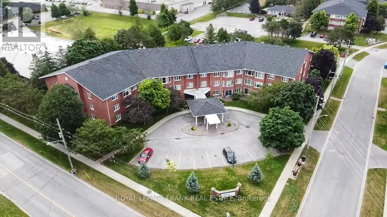 Cross Streets: Heritage Way/Colborne. ** Directions: Colborne St. W. to Heritage Way - Building 2 on Left When you pull into Heritage Way. Hello Gorgeous! Lux Condo offered at Heritage Gardens East in the Heart of Lindsay. Prepare to be wowed by this sumptuously renovated ground floor walk-out suite created with heart and soul for the finest in luxury living. Lovely updated ceramics flow from the foyer through to a swoon-worthy kitchen that serves up style and sets the mood. Sporting an array of cabinetry, including display cabinets that showcase your glassware in a chic, glass-on-glass style. Modern recessed ceiling with pot lights and vintage inspired accent wall adding texture, soothing pastel hues and a bit of fun that you will love. Gorgeous granite countertops, backsplash and SS appliances...all paired beautifully with the timeless white cabinets. Unwind in the spacious living/dining area complimented by a charming adjacent sunroom...rich hardwood flooring, crown molding, lovely picture window with custom blinds and all enhanced by a calming glow from the decorative wall mounted fireplace. 2 beautifully renovated baths, marble and granite tops and one with a big frameless glass shower. The oversized principal bedroom floods with natural light from a wall of delightful picture windows. Second bedroom seamlessly opened up to the sunroom creating a multi-functional space inviting you to walk out and relax on the private patio. In-suite laundry, designated parking spot and locker space. A friendly community and beautifully maintained building with a wonderful lobby to greet you and your guests. Lots of activities to enjoy at your leisure and many amenities to share with friends and family. Guest suit, party room, library, workshop, pool table, shuffleboard, patios and BBQ area. Invite your visitors for a dip in the fabulous outdoor pool too! Minutes to shopping, pharmacy and hospital. A Carefree and Gracious Lifestyle Awaits you. "Must See"...Snap it Up Now! (id:27476)