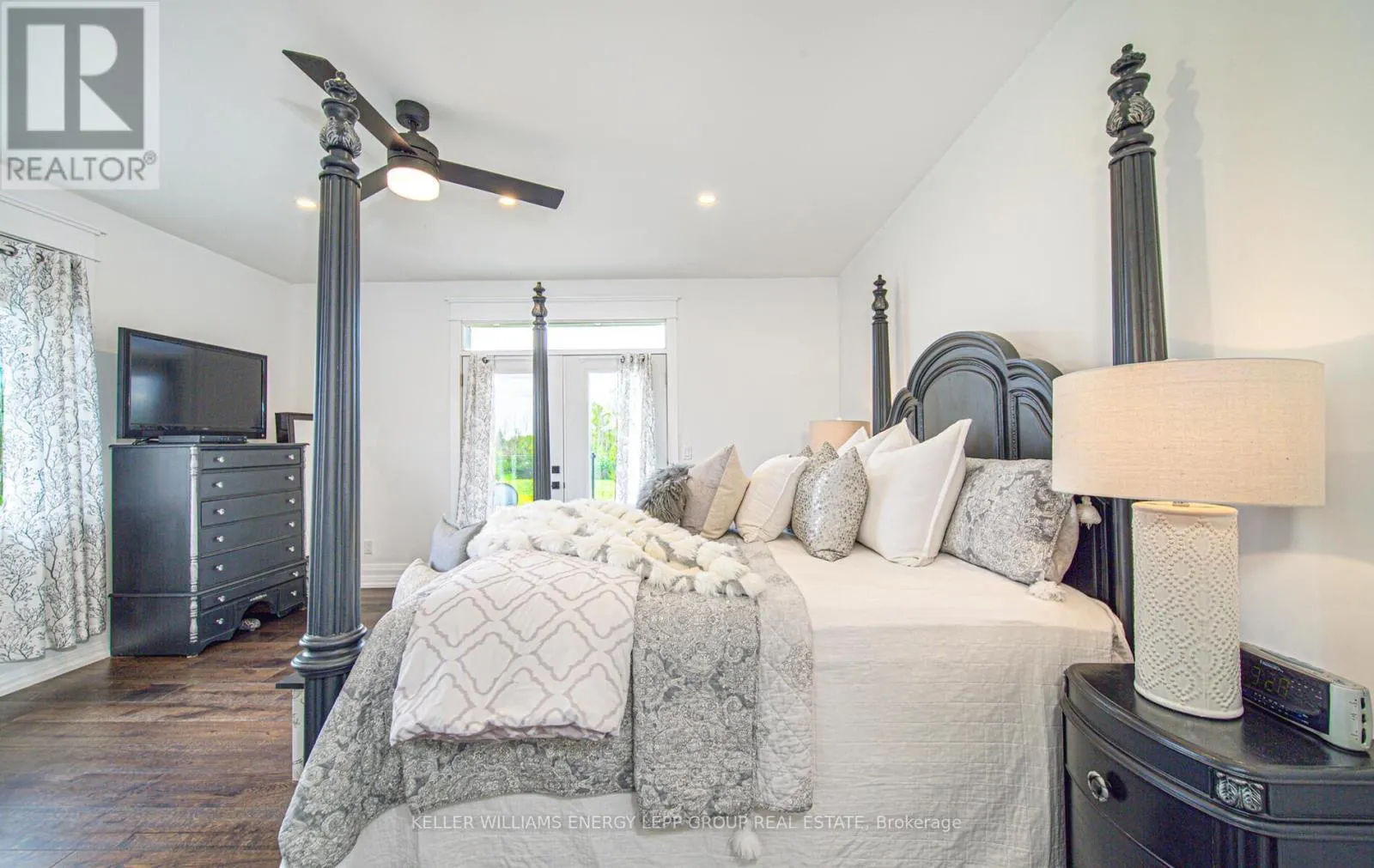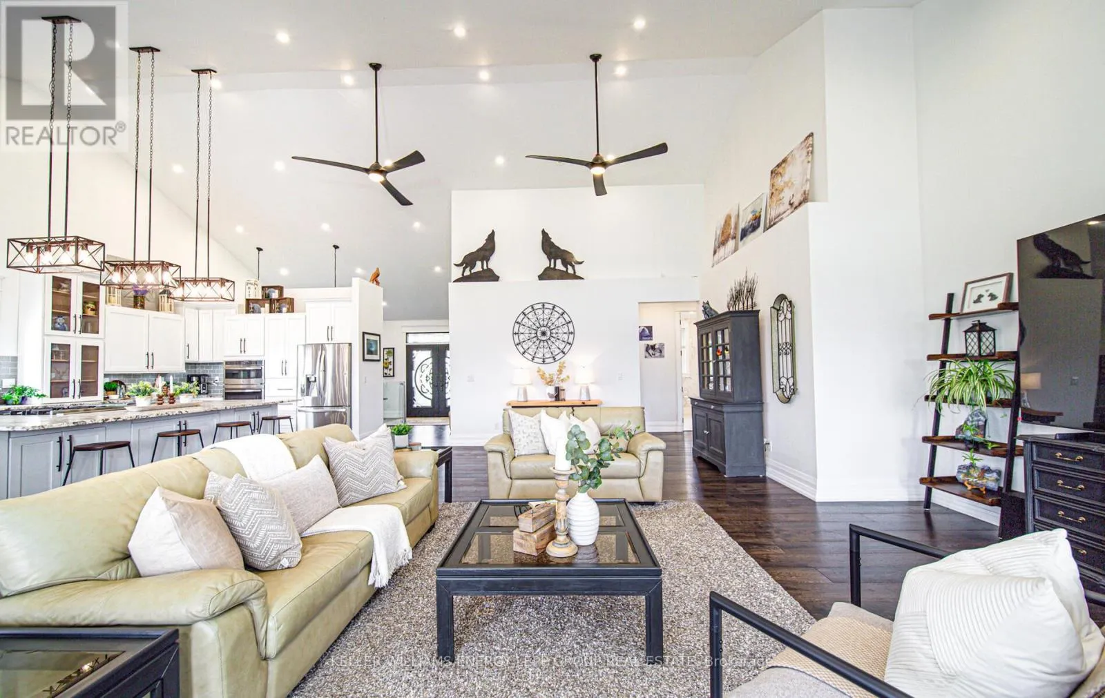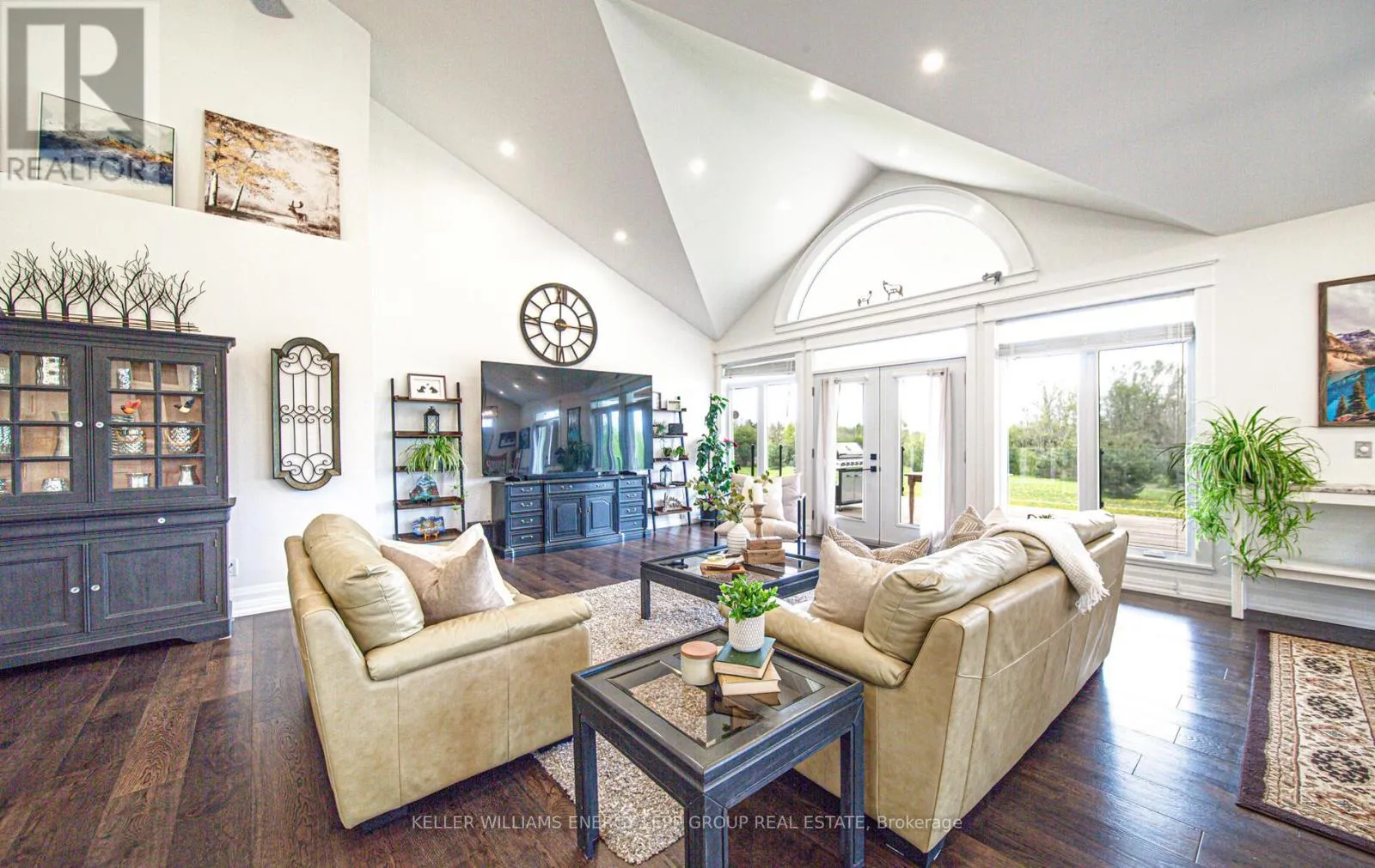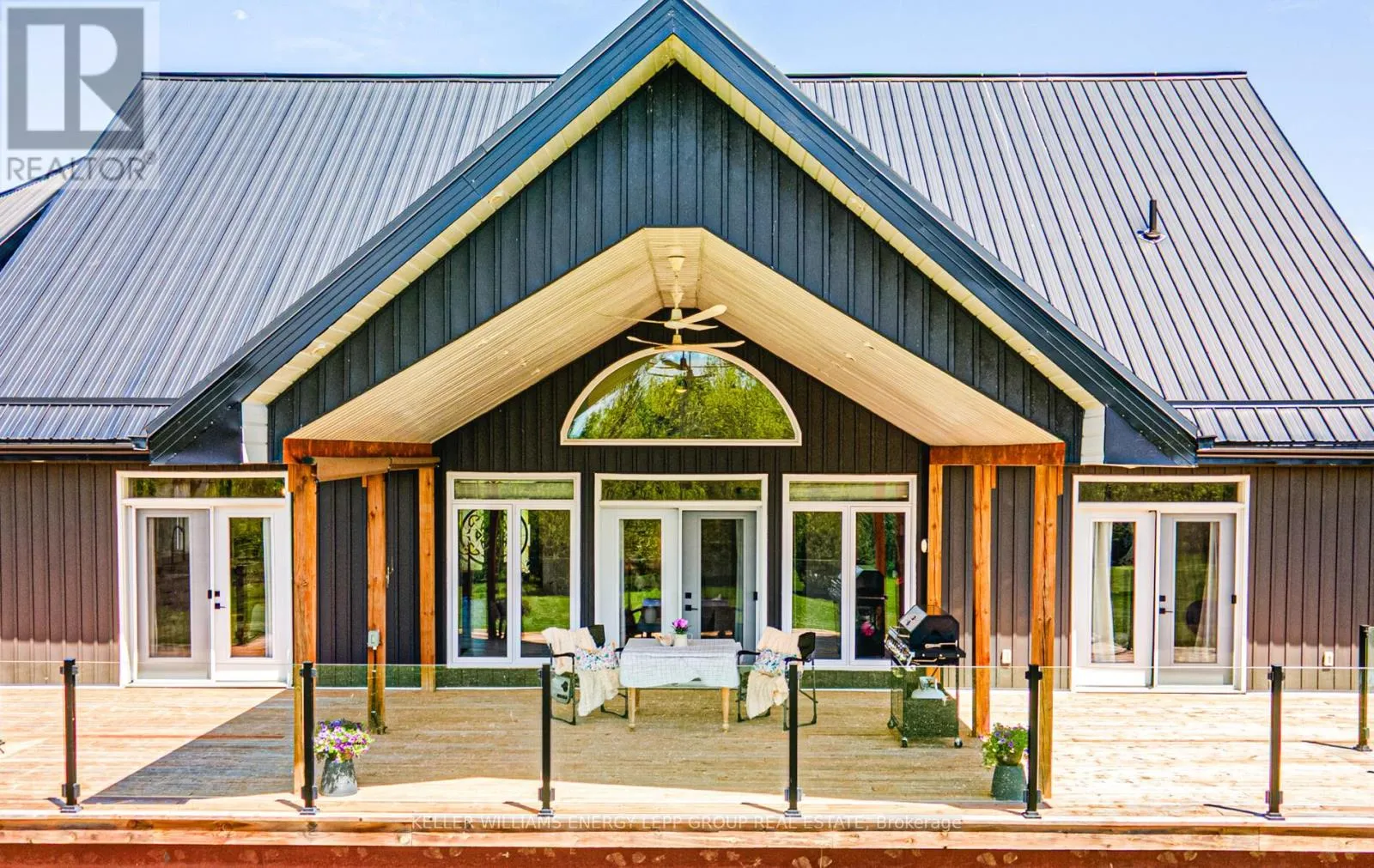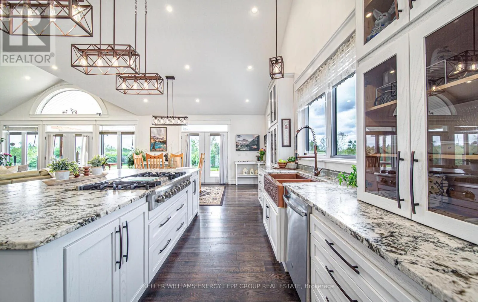 Ogemah Rd / Rainbow Ridge Rd This beautiful 3-bedroom, 3-bathroom custom-built home is set on a private 7.4-acre lot and offers exceptional space and craftsmanship throughout. Featuring 9-ft ceilings and 8-ft glass doors, the home is finished with 8-inch engineered hardwood flooring. The spacious living room boasts 16-ft cathedral ceilings, pot lights, ceiling fans, and 7-ft windows that flood the space with natural light and provide a seamless walkout to an approx. 800 sq ft deck with custom aluminum frameless glass railing perfect for alfresco dining and entertaining. Enjoy five walkouts to the main deck, ideal for seamless indoor-outdoor living. The gourmet kitchen is a showstopper, featuring maple cabinetry with solid oak doors, a distressed leather granite countertop, and a massive 5x10 center island. The primary bedroom includes a walk-in closet, walkout to the deck, and an opulent 5-piece ensuite. The 2,525 sq. ft. basement offers three additional walkouts and endless potential. Additional highlights include upper and lower garages, perfect for vehicles, tools, or extra storage. Located just 10-15 minutes from shops, a bakery, pharmacy, and restaurants, with easy access to parks, a library, medical services, and only a 5-minute walk to year-round recreation on Lake Scugog, including a nearby boat launch for convenient lake access. (id:27476)