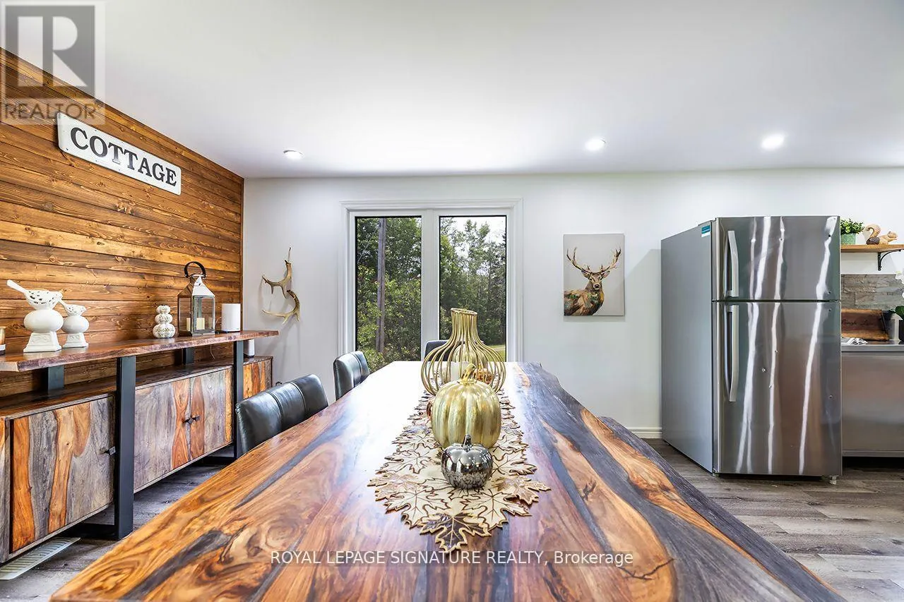 Cross Streets: Monck Road & Buller Road. ** Directions: Monck Road to Buller Road. Charming Country Retreat at 147 Buller Rd., Norland, Ontario! Discover your dream home nestled on a serene 2.3-acre lot just off a well-maintained municipal road, offering easy access to essential services, including school bus pick-up. This stunning residence features four spacious bedrooms and two modern bathrooms, providing ample space for family and guests. Since February 2022, the current owners have invested over $145,000 in thoughtful upgrades, ensuring a blend of comfort and contemporary style. Recent enhancements include brand new, energy-efficient windows and engineered wood siding, along with a comprehensive electrical overhaul that features a GenerLink connection. Experience outdoor living at its finest with a detached two car garage, newly constructed decks, stylish patio, and a charming gazebo perfect for entertaining or relaxing in nature. The interior boasts a solid stainless steel chefs kitchen, complemented by custom finishes throughout that add a unique touch to this beautiful home. Additionally, plumbing updates include a state-of-the-art water filtration system equipped with a UV light for clean, fresh water. This property exudes warmth and character, making it a perfect sanctuary for those seeking peace and quiet without compromising on modern conveniences. The home can also be sold fully furnished, making it an ideal turn-key solution for your next adventure. Don't miss the opportunity to make this charming retreat your own. New Well cover, Septic has been inspected, repaired and pumped and is in good working order.Well cover newly replace, septic has been pumped and inspected (please see attachments). (id:27476)