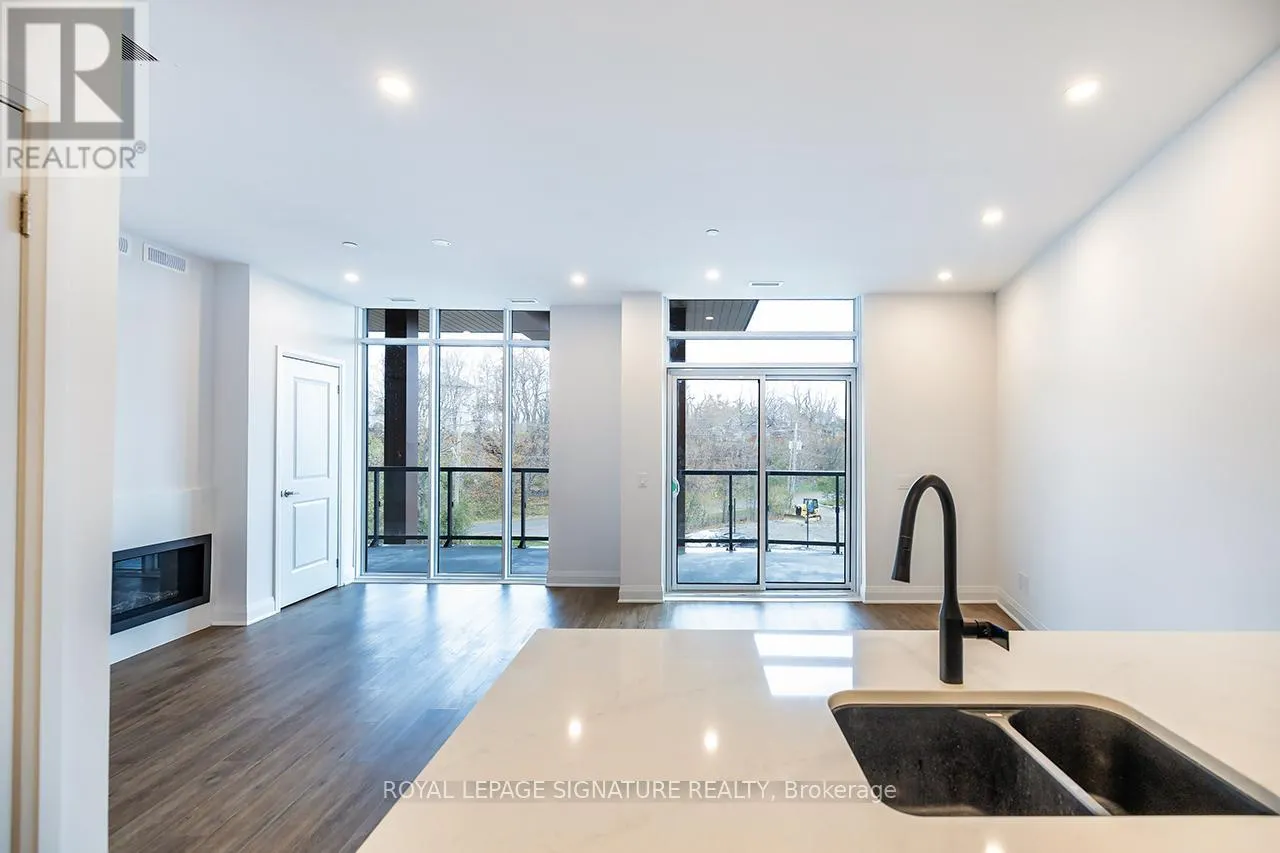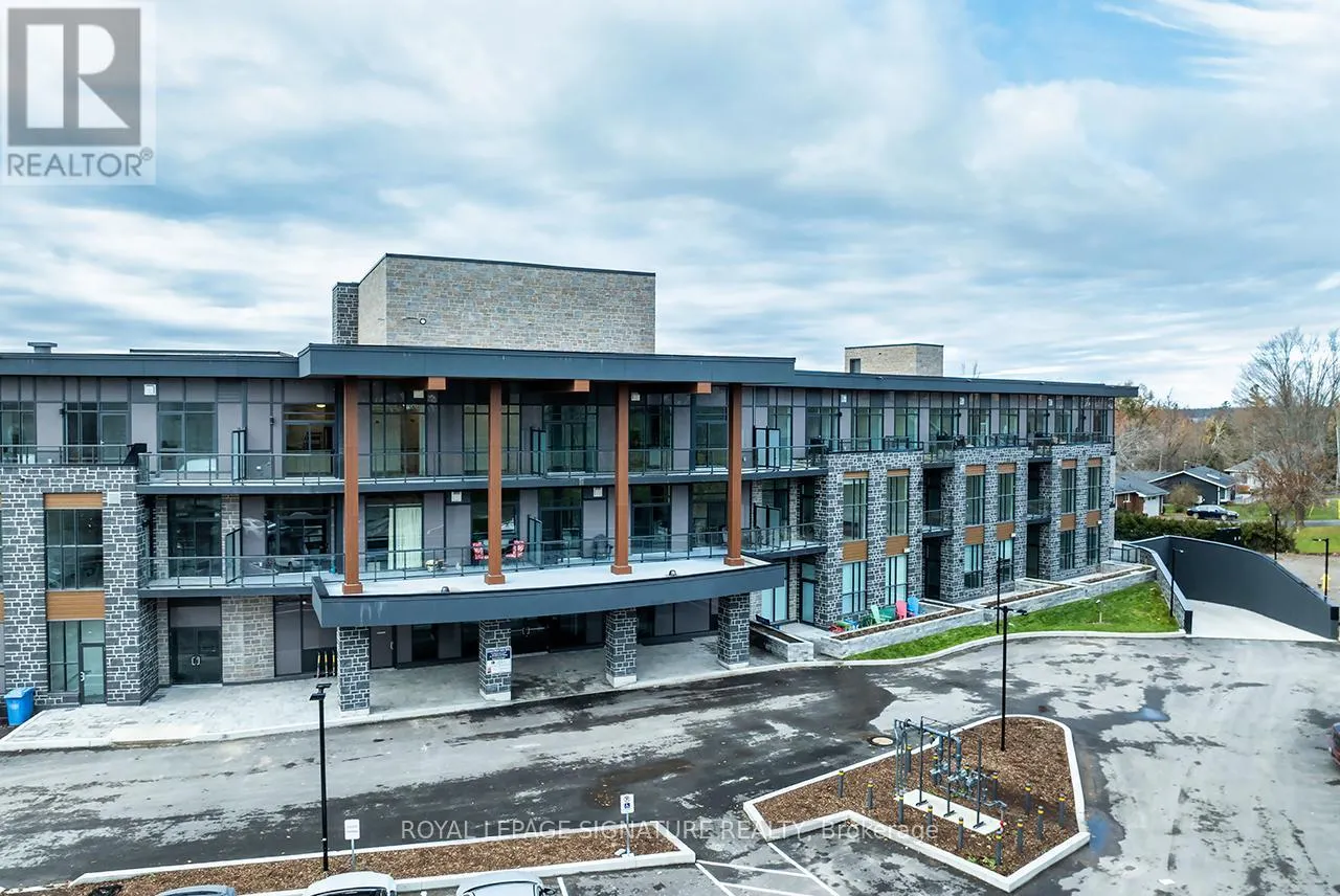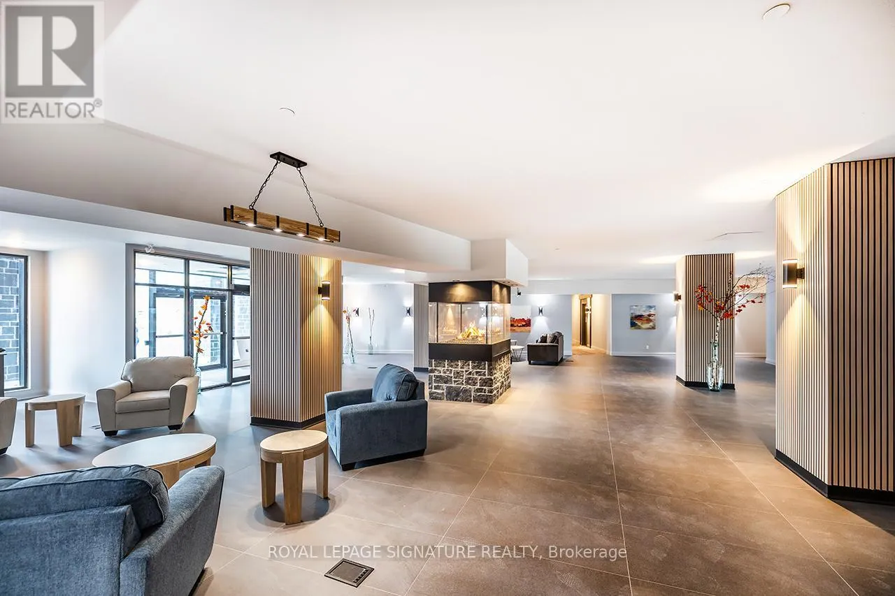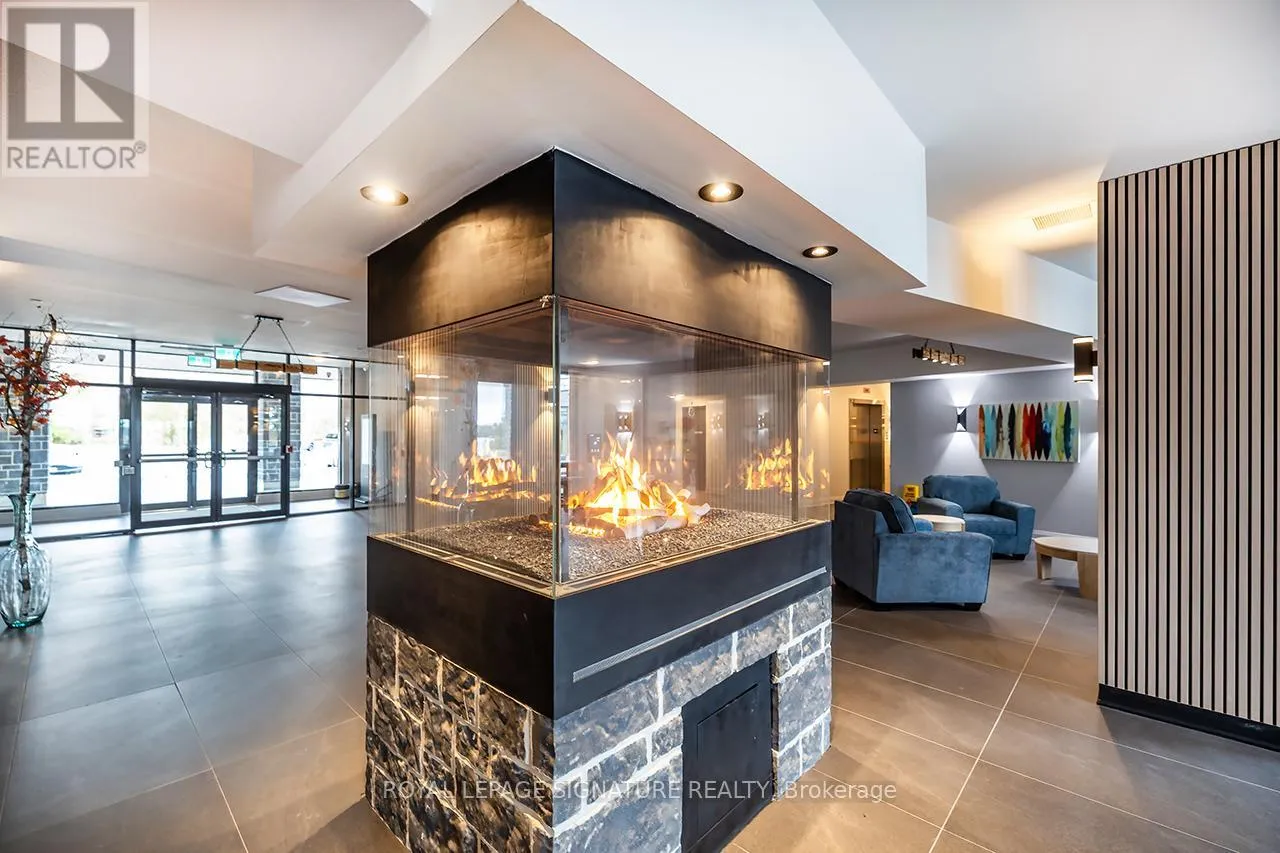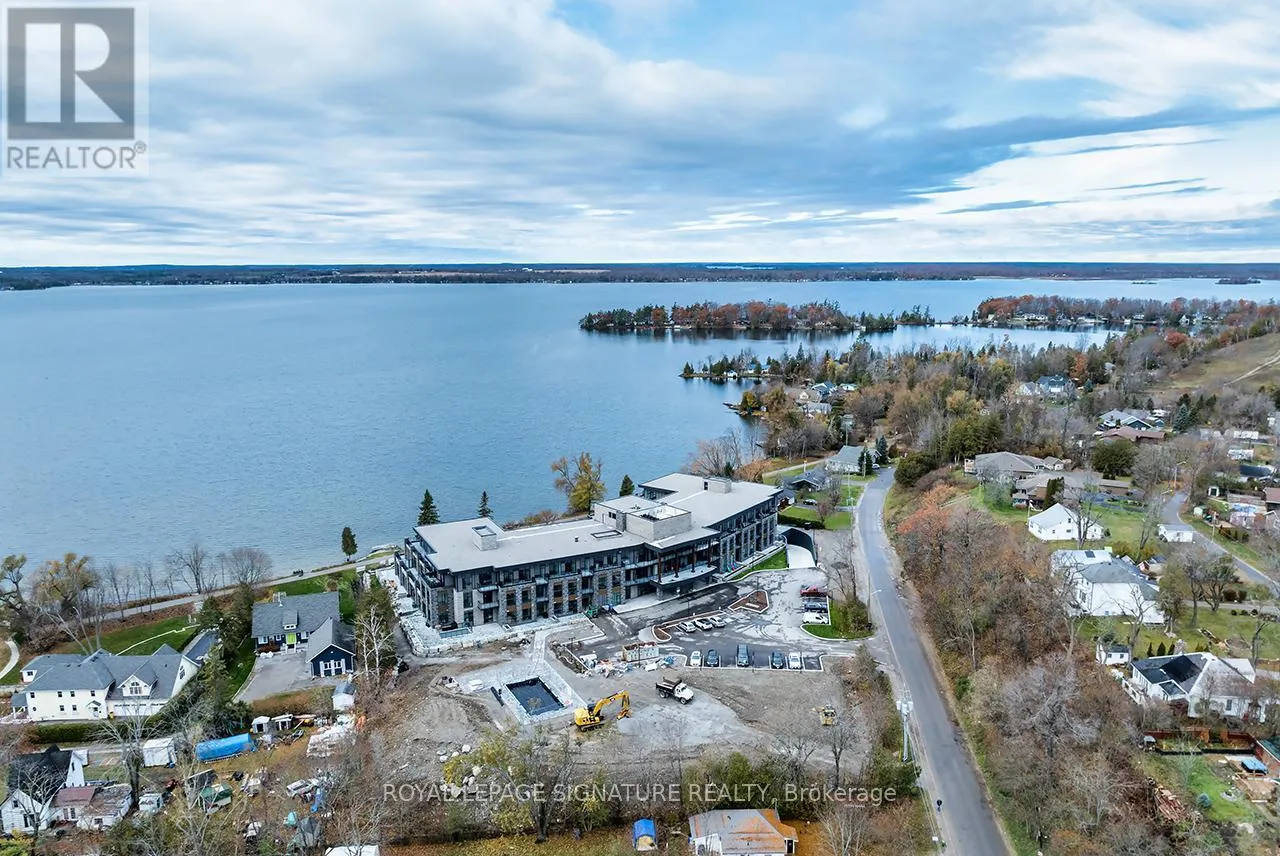 Cross Streets: Colborne St & Louisa St. ** Directions: Type \"99 Louisa St\" into Waze!. Welcome to a rare opportunity to lease in Fenelon Falls' newest and most luxurious boutique condo building-nothing else like it in the Kawarthas. Perfectly positioned on the west shore of Cameron Lake, this top-floor suite delivers unmatched views, direct access to Cameron Lake & the Victoria Rail Trail, and resort-style living year-round. This brand-new, never-lived-in 1 Bedroom + Den, 2-bathroom penthouse-level suite is bright, modern, and beautifully designed. Enjoy spacious open-concept living with 9 ft ceilings, floor-to-ceiling windows, a cozy gas fireplace, and a chef's kitchen featuring a gas cooktop, quartz counters & a breakfast bar. The primary bedroom includes a walk-in closet and sleek 3-piece ensuite, while the den is ideal for a home office or guest area. A massive 216 sq ft private balcony with gas bbq hook up offers fresh air and room to unwind. Includes one underground parking spot & large locker. Resort-like amenities including a party room with terrace overlooking the lake, gym/yoga room & sauna, outdoor pool/hot tub & tennis/pickleball court, 2 guest suites & plenty of visitor parking! Just a 5-minute walk brings you to Fenelon Falls' charming downtown, complete with all the amenities and services you need, including cafes, specialty shops & great restaurants. Enjoy the sights of boats navigating Lock 34 of the Trent-Severn Waterway, and catch events at the beloved Grove Amphitheatre. (id:27476)