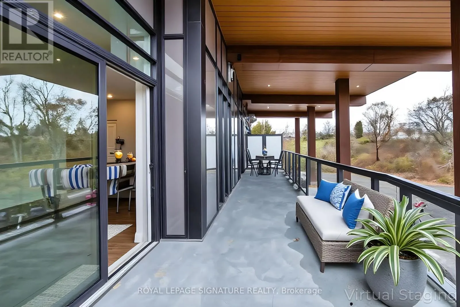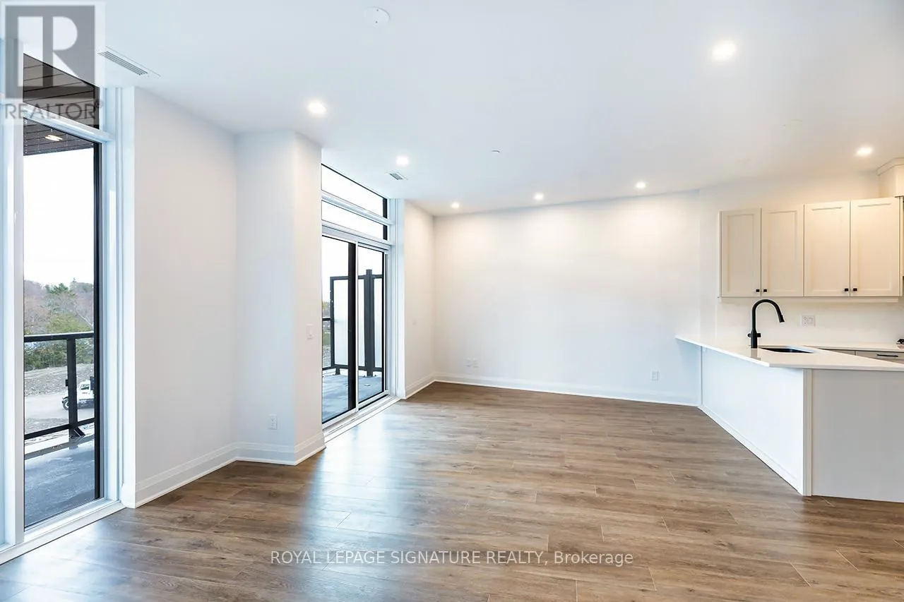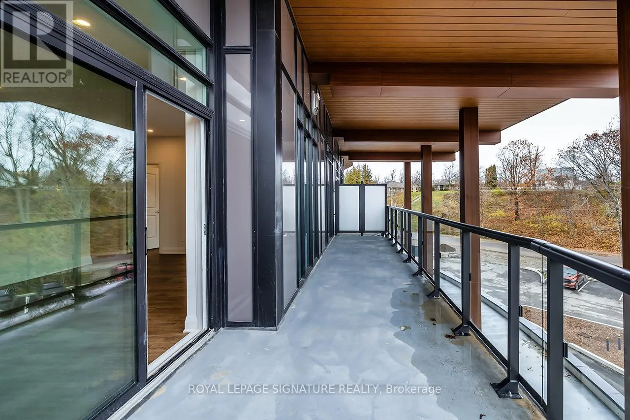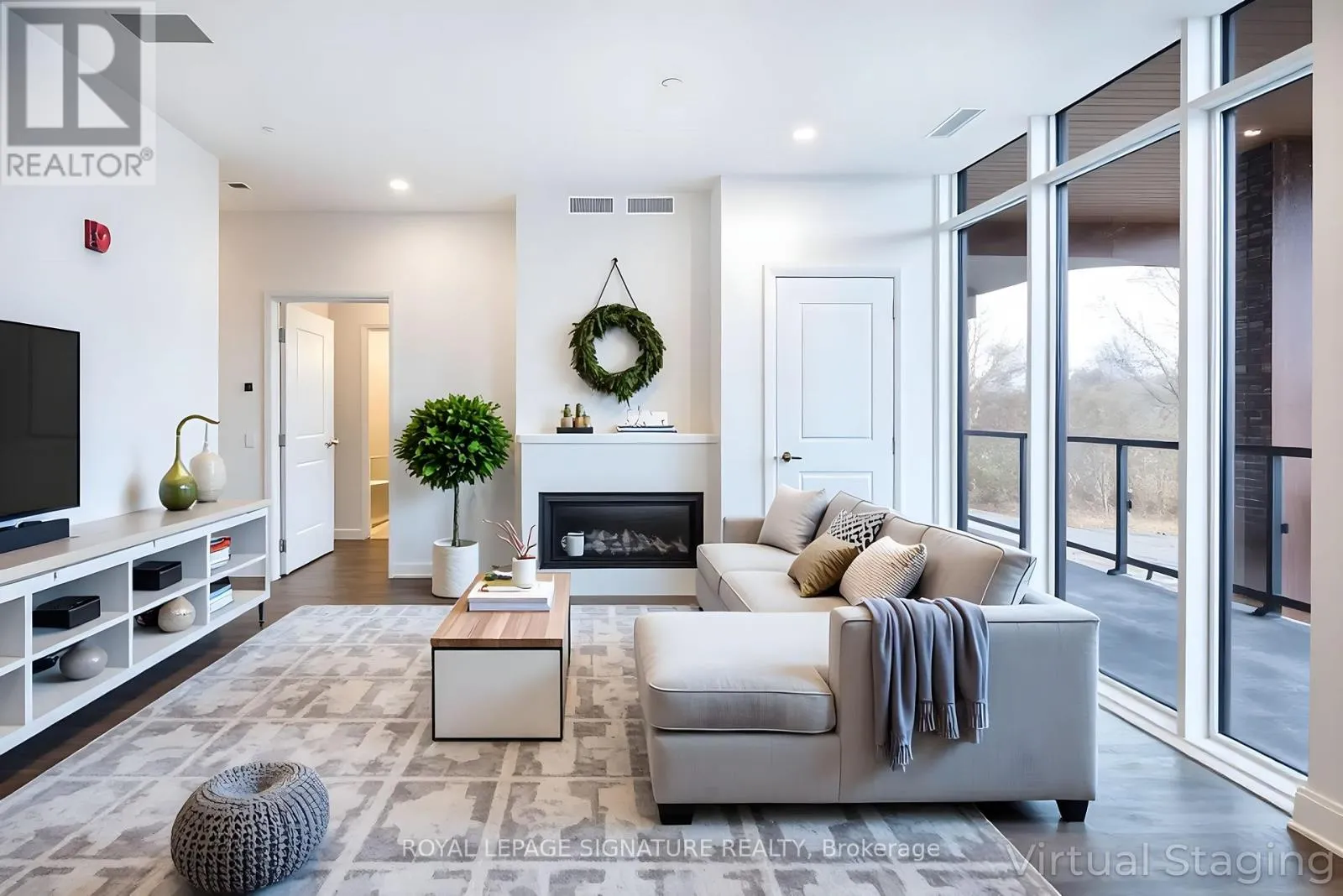 Cross Streets: Colborne St & Louisa St. ** Directions: Type \"99 Louisa St\" into Waze!. Welcome to a rare opportunity to lease in Fenelon Falls' newest and most luxurious boutique condo building-nothing else like it in the Kawarthas. Perfectly positioned on the west shore of Cameron Lake, this top-floor suite delivers unmatched views, direct access to Cameron Lake & the Victoria Rail Trail, and resort-style living year-round. This brand-new, never-lived-in 1 Bedroom + Den, 2-bathroom penthouse-level suite is bright, modern, and beautifully designed. Enjoy spacious open-concept living with 9 ft ceilings, floor-to-ceiling windows, a cozy gas fireplace, and a chef's kitchen featuring a gas cooktop, quartz counters & a breakfast bar. The primary bedroom includes a walk-in closet and sleek 3-piece ensuite, while the den is ideal for a home office or guest area. A massive 216 sq ft private balcony with gas bbq hook up offers fresh air and room to unwind. Includes one underground parking spot & large locker. Resort-like amenities including a party room with terrace overlooking the lake, gym/yoga room & sauna, outdoor pool/hot tub & tennis/pickleball court, 2 guest suites & plenty of visitor parking! Just a 5-minute walk brings you to Fenelon Falls' charming downtown, complete with all the amenities and services you need, including cafes, specialty shops & great restaurants. Enjoy the sights of boats navigating Lock 34 of the Trent-Severn Waterway, and catch events at the beloved Grove Amphitheatre. (id:27476)