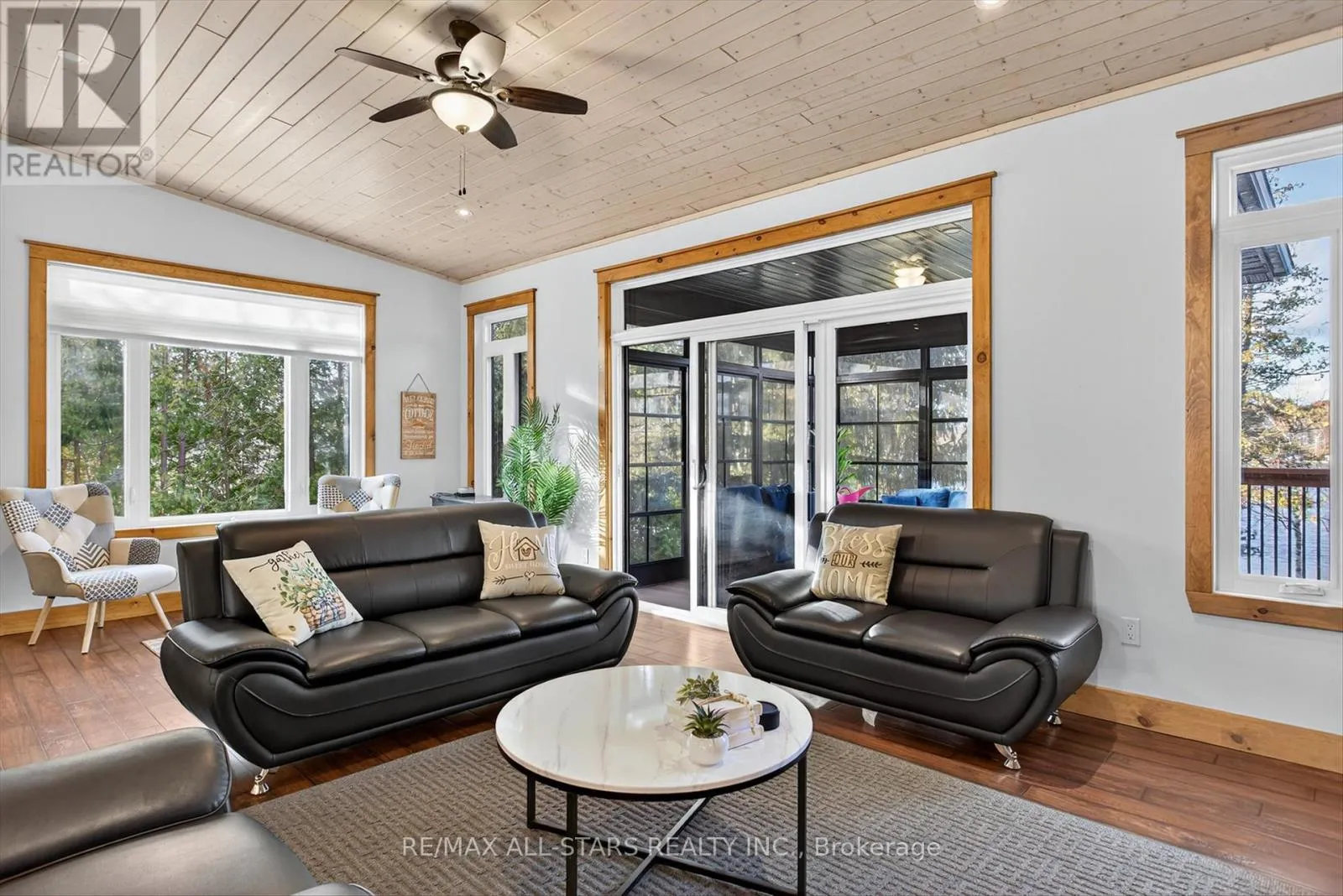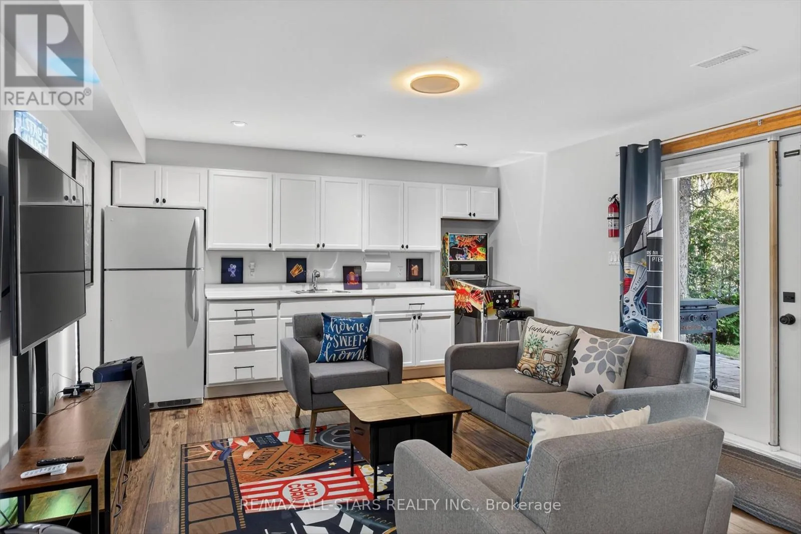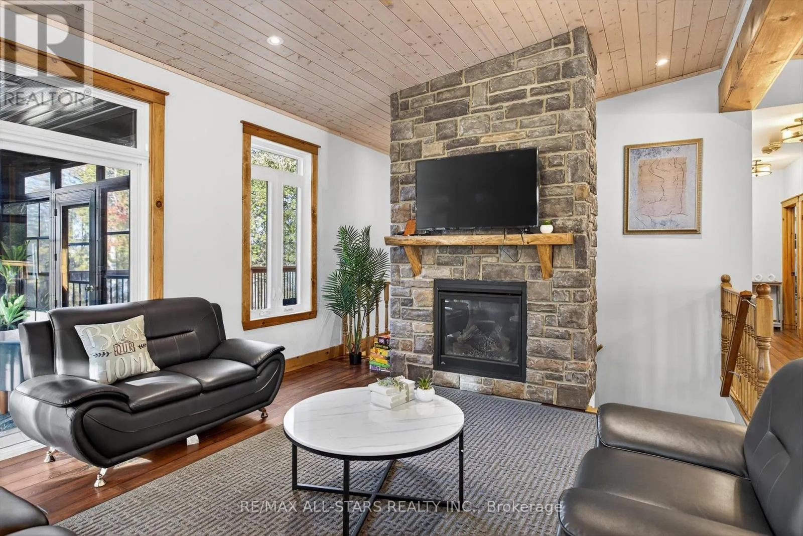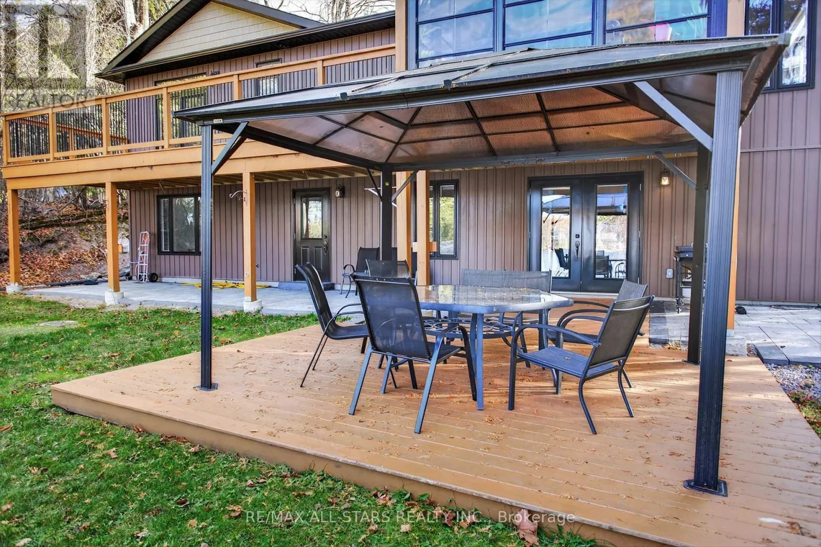 Yankee Line/ Pheasant St Welcome to your multigenerational lakeside retreat on the Trent-Severn Waterway. This custom-built lakefront home sits on a private lot with 75 ft of direct waterfront on stunning Pigeon Lake, offering unforgettable views and a true four-season lifestyle. From the moment you arrive, you'll feel the comfort of a turn-key, fully furnished home, thoughtfully styled with luxury finishes and ready for immediate enjoyment. Designed for flexibility, this property is ideal for multigenerational families, those seeking income potential, or anyone wanting a peaceful, private waterfront haven. Step inside to an open-concept living space featuring a quartz center-island kitchen, beautiful finishes, and a cozy living room with a fireplace. A bright sunroom and expansive deck allow you to embrace lakeside living from sunrise to sunset. The fully finished walkout basement is perfect for extended family or guests, complete with large windows framing the waterfront, a full bath, a fireplace, and direct access to a lakeside patio. Outdoors, enjoy direct water access, a private dock, and peaceful surroundings. Two outdoor sheds offer the opportunity to create a funky bunkie, studio, or additional storage, and the detached garage adds even more convenience. Whether you're seeking privacy, family living, or a luxurious water's-edge escape, this exceptional property delivers. Just move in, relax, and embrace the waterfront lifestyle you've been dreaming of. (id:27476)