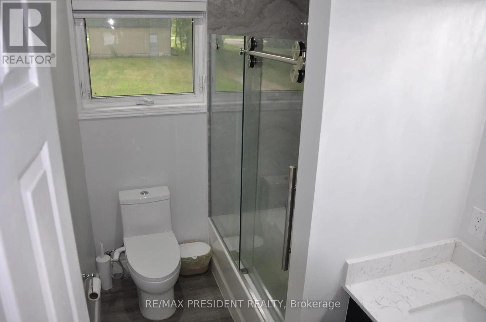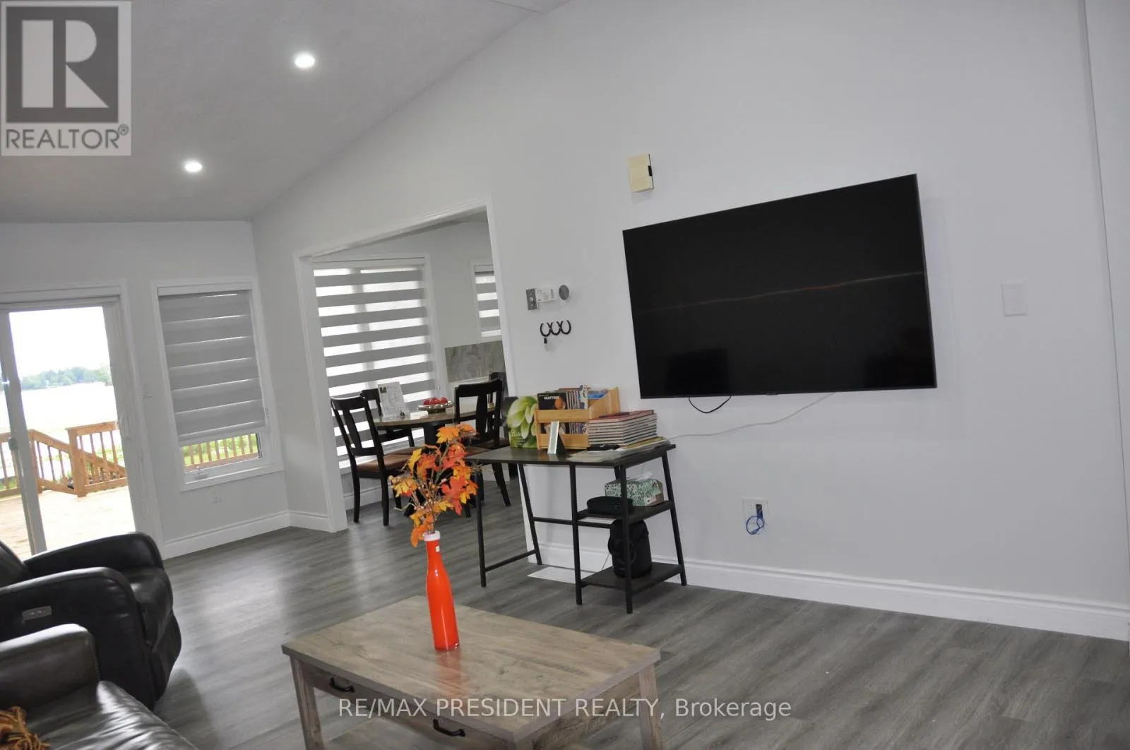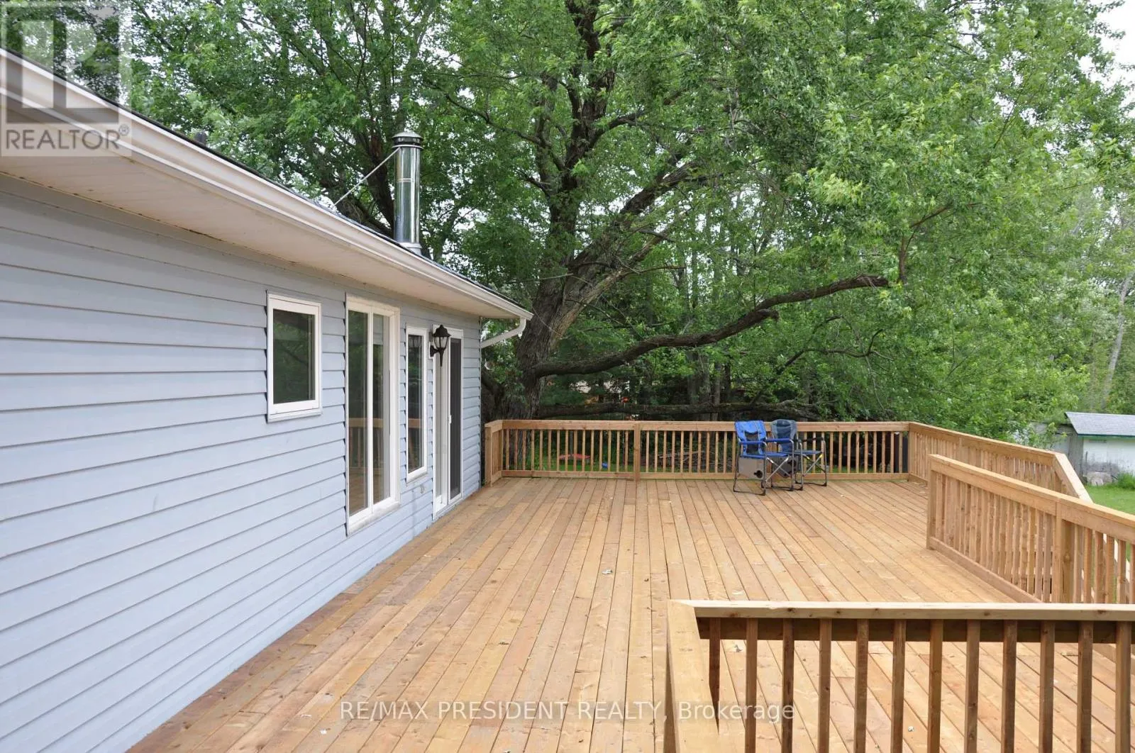 Centennial Park To Rohallion Experience year-round access with this custom-built 2 bedroom (MAIN FLOOR ONLY) waterfront 'Royal Home', recently renovated to perfection. Nestled on a spacious half-acre lot boasting 80 feet of frontage along serene Canal Lake, part of the Trent Severn Waterways. The main level features a spacious living room with a wood stove, cathedral ceiling, and access to a deck overlooking the water. The master bedroom offers a built-in closet, stunning water views, and French doors leading to a second bedroom. The main bathroom includes a separate shower. Finished basement available for at higher rent (IF INCLUDED IN THE LEASE) provides direct walkout access to the water, enhancing the home's waterfront lifestyle. Additional features include an oversized single-car garage with an EV plug and loft storage, a drilled well, propane forced-air heating, and new A/C for comfort throughout the seasons. Located on a quiet cul-de-sac with minimal traffic, the property also boasts over 700 feet of newly built pressure-treated decking, providing ample space for outdoor relaxation and entertaining. A comprehensive water filtration system with UV protection ensures water quality. New appliances & window coverings at the time of renovations. This meticulously crafted waterfront retreat offers both tranquility and modern convenience, ideal for those seeking a premium living experience on the water. Tenant to pay 65% of all utilities for upper portion rental and 100% if whole house rented. (id:27476)