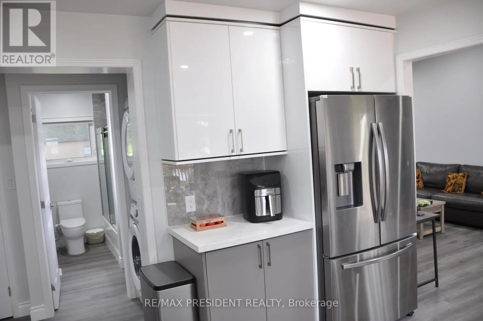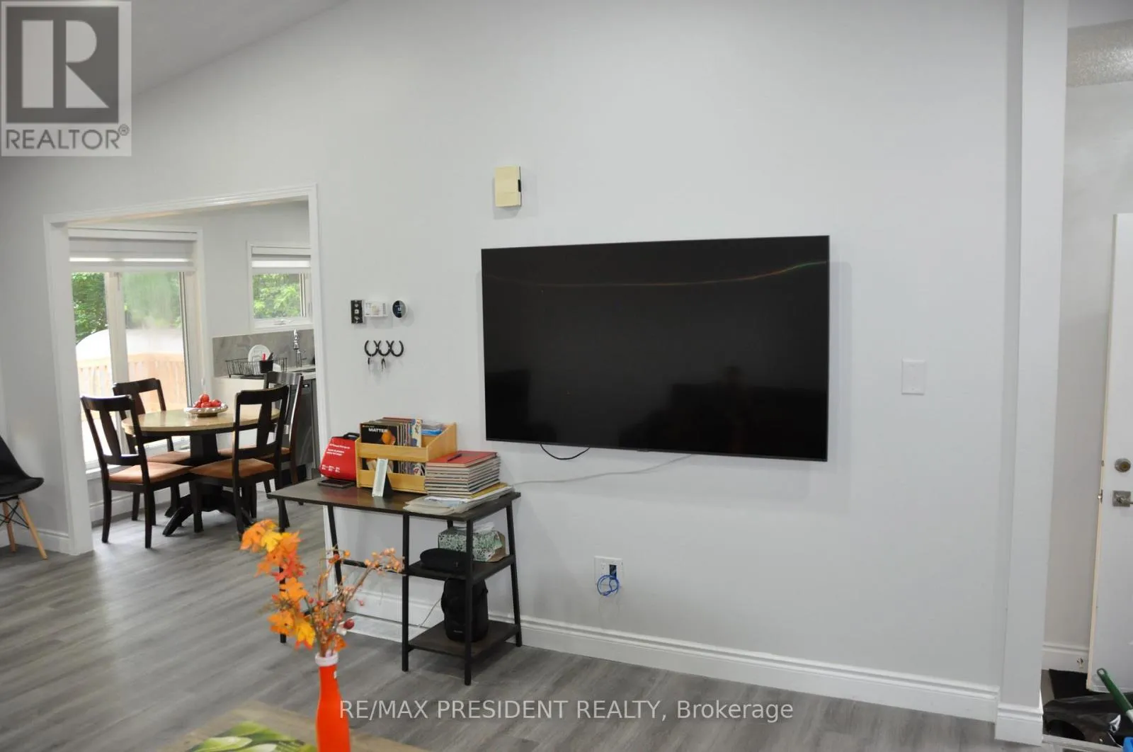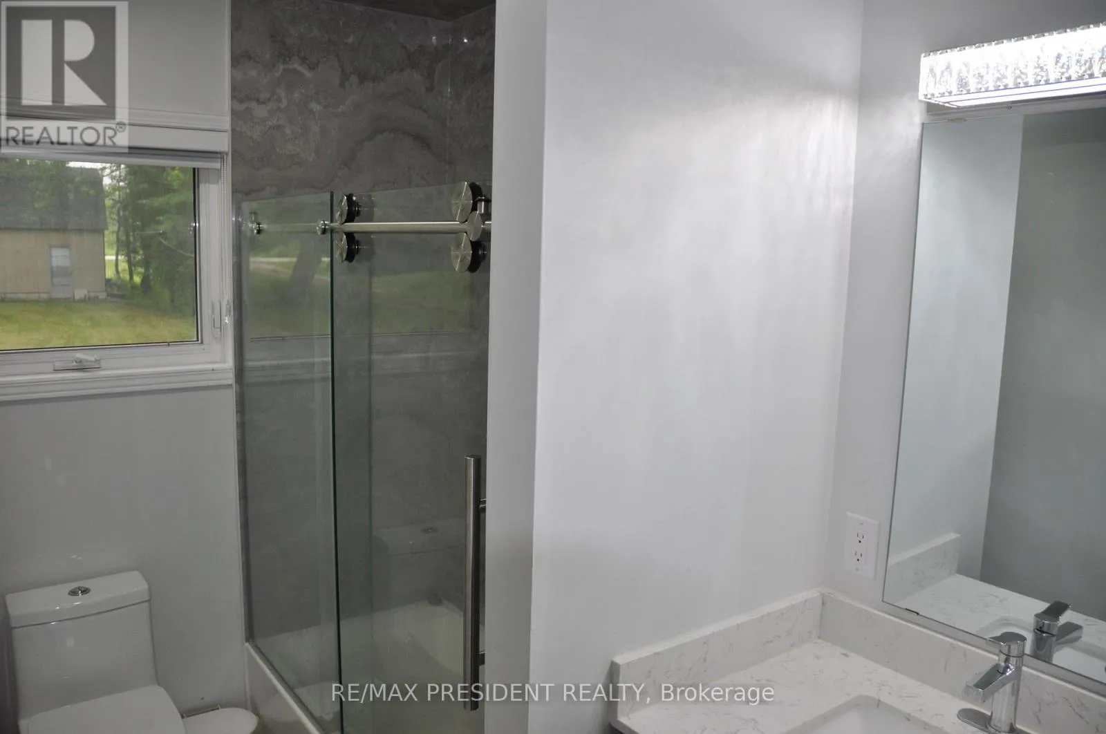 Centennial Park To Rohallion Experience year-round access with this custom-built 2 bedroom (MAIN FLOOR ONLY) waterfront 'Royal Home', recently renovated to perfection. Nestled on a spacious half-acre lot boasting 80 feet of frontage along serene Canal Lake, part of the Trent Severn Waterways. The main level features a spacious living room with a wood stove, cathedral ceiling, and access to a deck overlooking the water. The master bedroom offers a built-in closet, stunning water views, and French doors leading to a second bedroom. The main bathroom includes a separate shower. Finished basement available for at higher rent (IF INCLUDED IN THE LEASE) provides direct walkout access to the water, enhancing the home's waterfront lifestyle. Additional features include an oversized single-car garage with an EV plug and loft storage, a drilled well, propane forced-air heating, and new A/C for comfort throughout the seasons. Located on a quiet cul-de-sac with minimal traffic, the property also boasts over 700 feet of newly built pressure-treated decking, providing ample space for outdoor relaxation and entertaining. A comprehensive water filtration system with UV protection ensures water quality. New appliances & window coverings at the time of renovations. This meticulously crafted waterfront retreat offers both tranquility and modern convenience, ideal for those seeking a premium living experience on the water. Tenant to pay 65% of all utilities for upper portion rental and 100% if whole house rented. (id:27476)