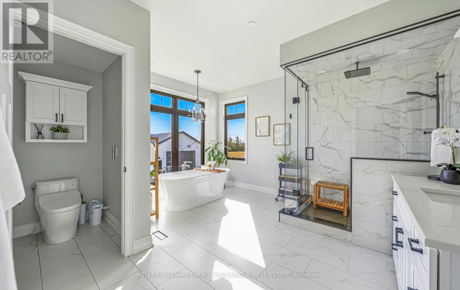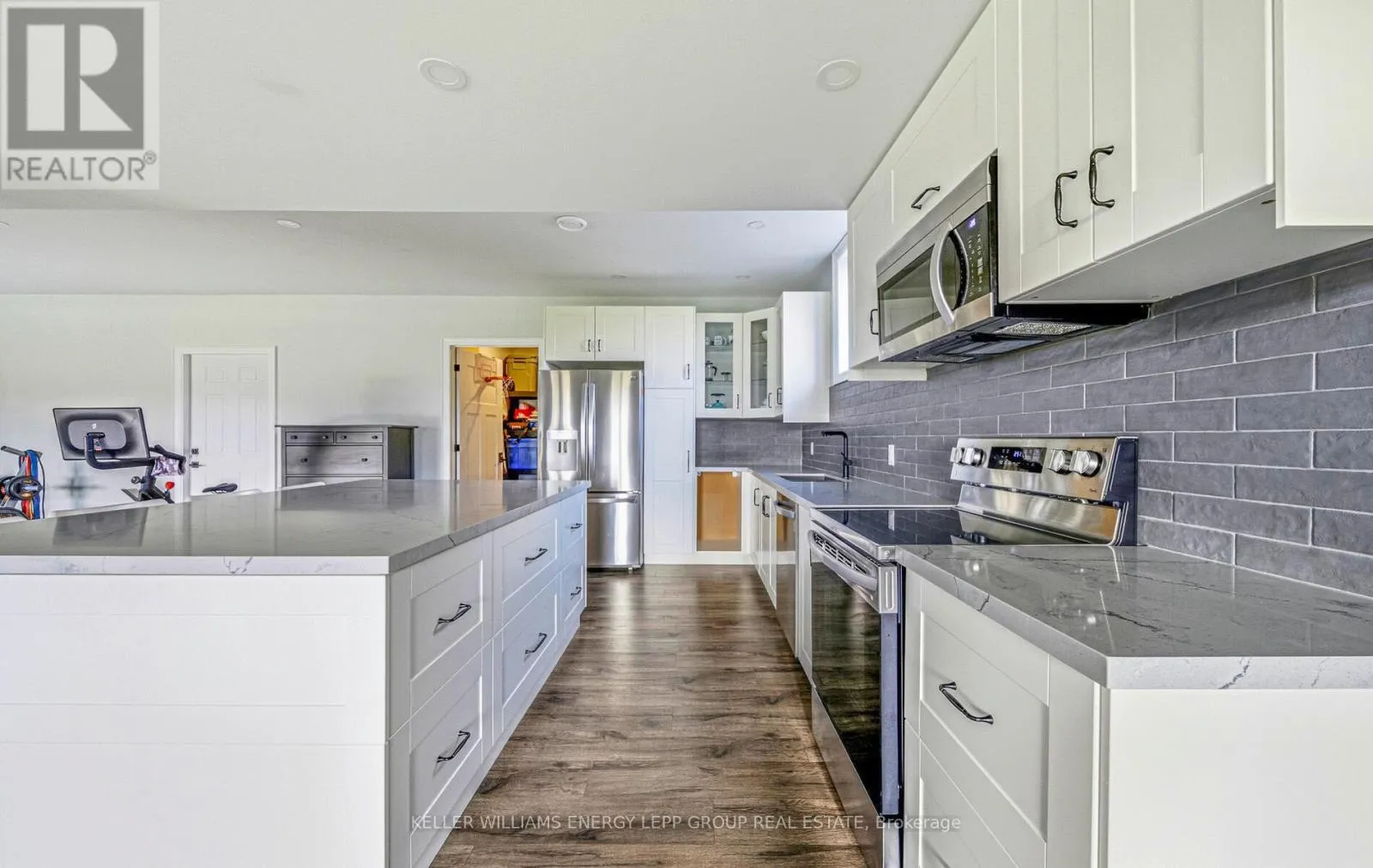 Glenarm Road & 46 Custom-Built Bungalow on 2.75 Acres - Woodville! Discover this stunning custom-built (2021) bungalow on a picturesque country lot in the peaceful community of Woodville. Surrounded by farmer's fields and on Approx. 2.75 acres of land. Just minutes from town conveniences, this home blends rural charm with high-end features and modern design. Step inside through the oversized 4ft x 8ft front door to find hickory hardwood flooring, a solid maple staircase, and soaring cathedral ceilings in the elegant family room. Enjoy large windows, pot lights, and a cozy fireplace with seamless flow into the dining area. The updated kitchen features a large island with bar seating, quartz countertops, high-end professional appliances, backsplash, and modern cabinetry under high ceilings with pot lights. The luxurious primary suite offers a walk-in closet, spa-like ensuite with in-floor heating, and a walkout to the expansive 1,800 sq ft deck with a 12ft x 8ft patio door overlooking the backyard. The walk-out basement provides extra living space with a family room, bedroom, full bath, and second kitchen and updated laminate floors. Upper deck is fully sealed, providing a waterproofed walkout patio from the basement. Enjoy direct access to the 30' x 34' heated attached garage with two oversized 10' x 10' insulated doors and a heated loft above, currently used as an office. A 6-person hot tub (2021) and a new 36' x 18' above ground saltwater pool (2025) with 1,100 sq ft pool deck make the backyard a true retreat. Landscaping includes armour stone features and an upper deck with glass railings for relaxation or entertaining. The home is powered by a 24 kW Generac generator and offers 400 amp service across 4 panels. A great feature in the garage, a built-in dog washing station that also works perfectly for rinsing tools.Located minutes from Woodville and a short drive to Lindsay, this home offers the tranquility of rural living with modern comfort and convenience-a true turnkey retreat. (id:27476)