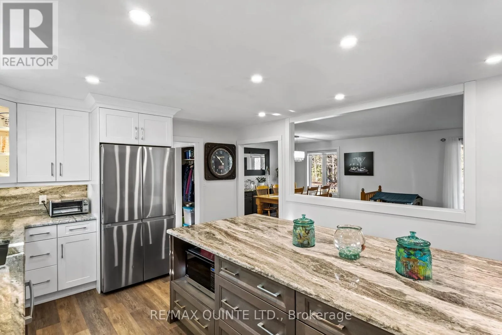 Cross Streets: Highway 121 & 3rd Concession. ** Directions: Travelling North on Highway 121 from Fenelon Falls go East on 3rd Concession. Welcome to your peaceful country retreat, just 10 minutes from town, offering the privacy and calm of rural living. Set on 10 wooded, low-maintenance acres, this fully renovated all-brick bungalow blends modern comfort with the lifestyle you've been dreaming of. Inside, enjoy over 2,000 sq ft of beautifully updated main-floor living, plus another 2,000+ sq ft of flexible lower-level space, ideal for a growing family, multigenerational living, or future income potential. With 3+2 bedrooms and 2 full bathrooms, the layout is designed for comfort and versatility.The heart of the home is the stunning kitchen, complete with an oversized island, soft-close cabinetry, granite countertops, a modern backsplash, and a large pantry with pull-out shelving. Open sightlines connect the kitchen to the living and dining rooms, creating an inviting flow perfect for everyday living and entertaining. Fresh paint, new trim, and updated laminate flooring make the main level bright and move-in ready. Each bedroom includes a ceiling fan, and the south-facing primary suite is filled with natural light and features a 3-piece ensuite. A second full bathroom services the rest of the main floor. Step outside to enjoy coffee on the covered front porch or the spacious composite deck overlooking the private, south-facing backyard - ideal for relaxing, hosting, and enjoying the peaceful surroundings. The attached double garage offers interior access to both the main level and basement. Downstairs, find two additional bedrooms, cold storage, and open space ready for your vision.The property includes five outbuildings (two wired), a 5-bay drive shed, and a secondary laneway for easy access. Additional upgrades include a newer furnace, central air, water softener, 200-amp service, and a hard-wired generator. Move-in ready, private, low-maintenance, and just minutes from town - this home offers the best of country living with endless potential! (id:27476)