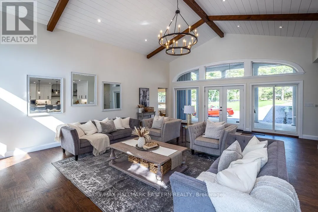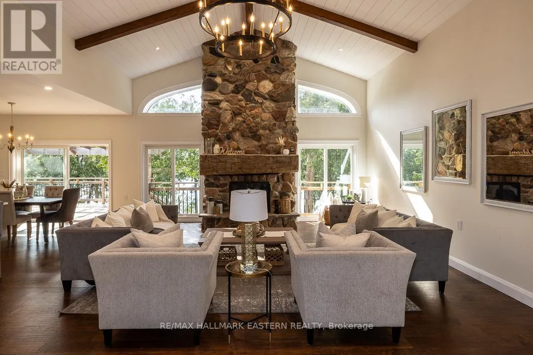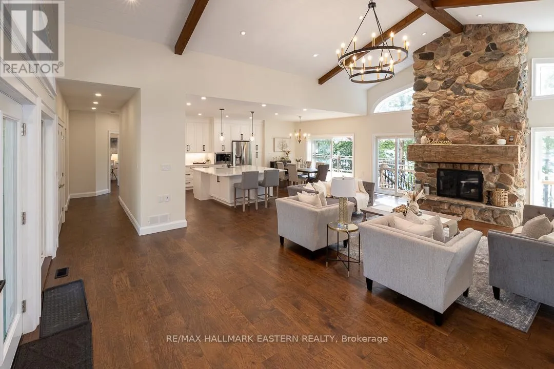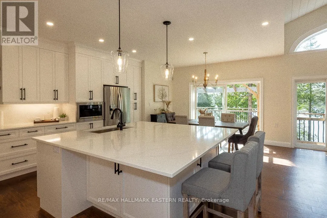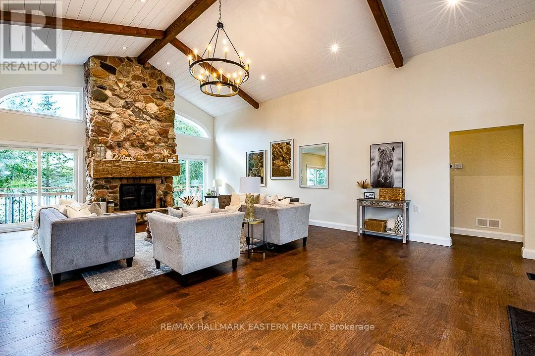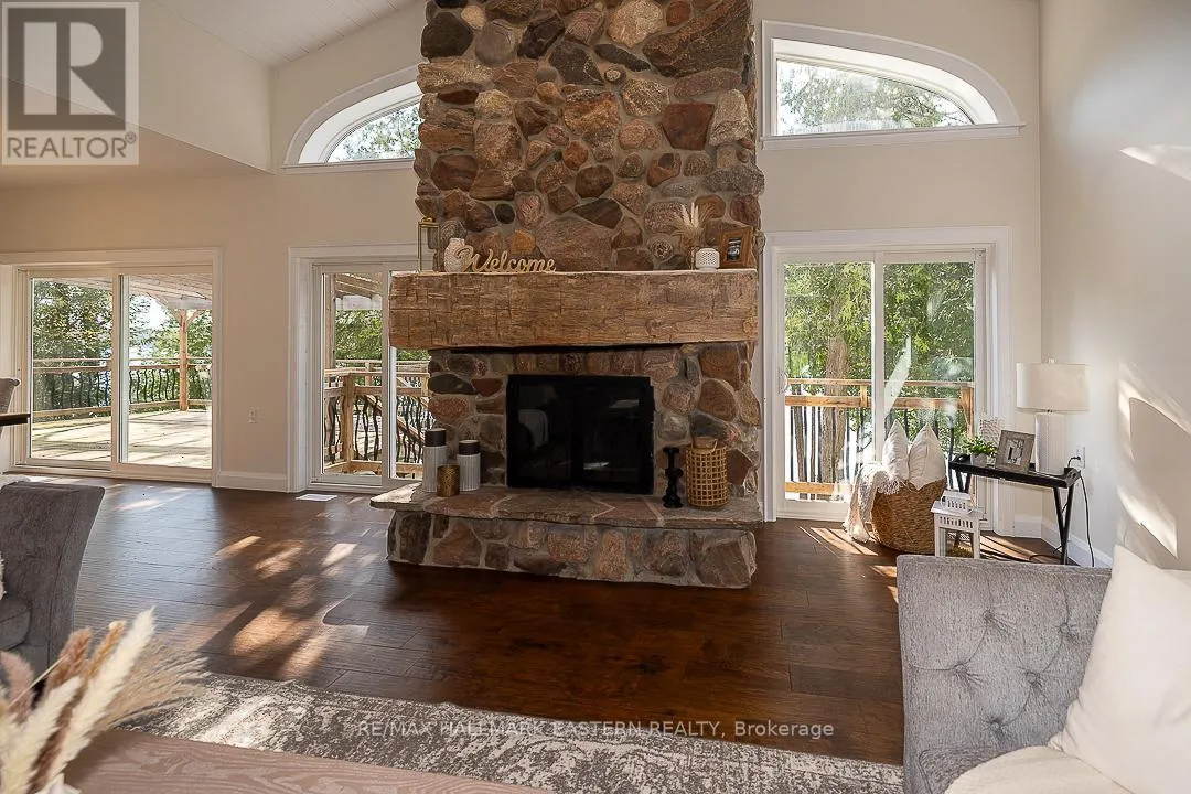 Cross Streets: Hwy 35. ** Directions: Highway 35 to Indian Point Road. Immerse yourself in a fusion of nature and comfort on one of the most sought after locations on Balsam Lake, "Indian Point Rd." Fresh, new on trend interior with wood, stone and a clean white palette to suit all styles. 5 Bed/4.5 Baths, including a fabulous split floor plan. Main floor primary suite, laundry, great room with soaring ceilings, floor to ceiling fieldstone fireplace, open concept chefs kitchen outfitted with impressive quartz island, 6 burner gas range, all overlooking stunning water views. The lower level family room with lovely wet bar, oversized sauna and additional bedrooms offers plenty of room for family and friends. Fully backed up generator, electric car plug in, room for all the toys, in the 6 bay oversized garage, and just 1.5 hrs to GTA . Walk on trials, skate on the frozen lake, snowmobile into pristine forests, kayak, tennis, fishing, swim and so much more. This spacious beauty is ready to go for the waterfront dream you have been waiting for. (id:27476)