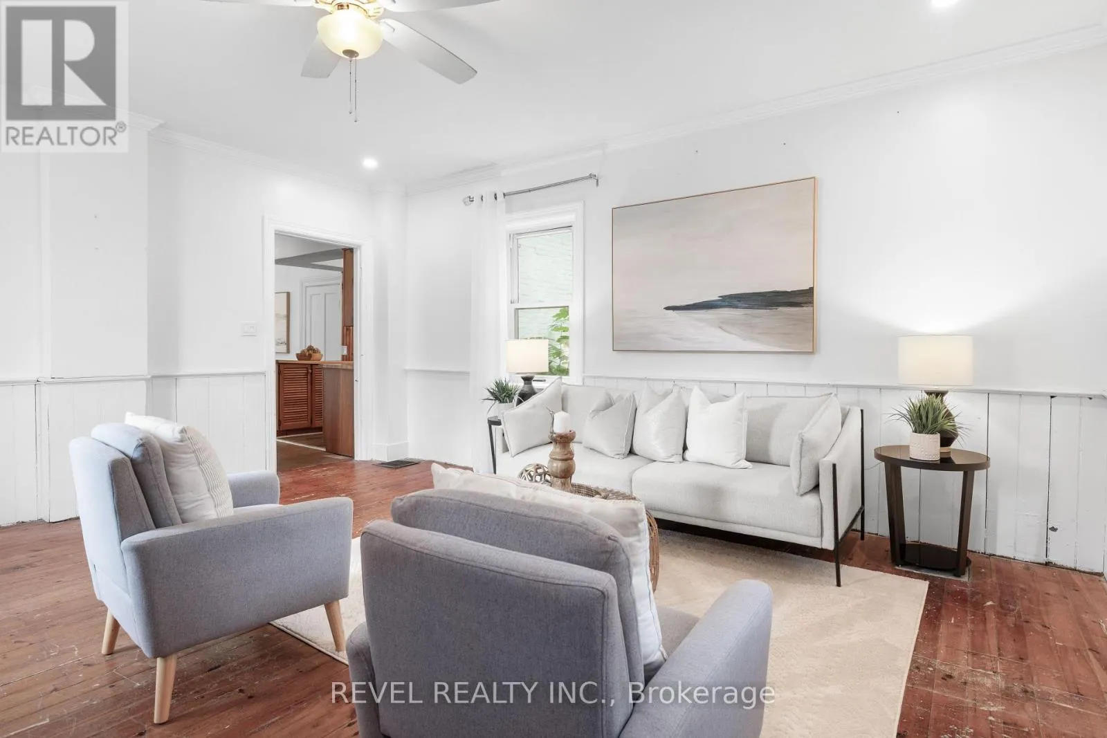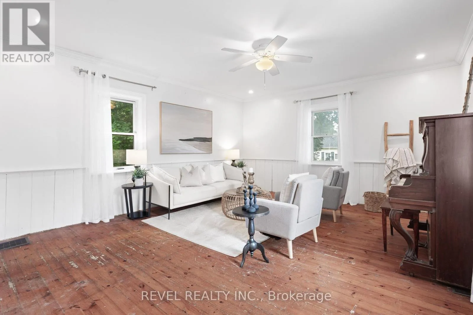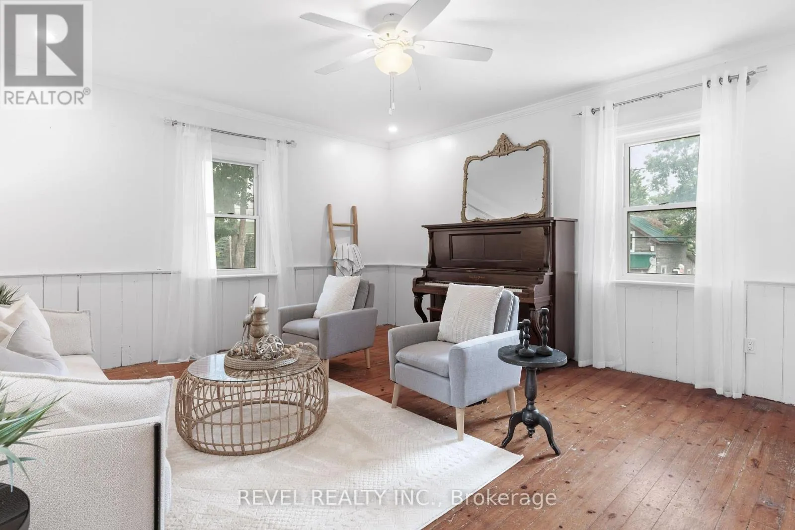 ELDON RD AND MARK ST Charming Century Home in the Heart of Little Britain. Welcome to this beautiful and spacious 4-bedroom, 2-bathroom Century Home, ideally located on a large corner lot in the vibrant Village of Little Britain. Bursting with character, the home greets you with a grand foyer and a stunning wood staircase. The main floor features a full living room adorned with farmhouse style wood floors, moldings and trim, a bright eat-in kitchen, and a separate formal dining room perfect for entertaining. Upstairs, you'll find four generously sized bedrooms, a full bathroom, and an abundance of natural light streaming through large windows. The main level also includes a convenient laundry area, a rear mudroom, and a walkout to a private backyard oasis.The mature, yard offers a large deck ideal for relaxing or hosting guests and a detached garage/shop for all your storage or hobby needs. This home is truly a statement piece and is centrally located near the community centre, shopping, dining, and the local school. Don't miss the opportunity to make this timeless home your forever home! (id:27476)