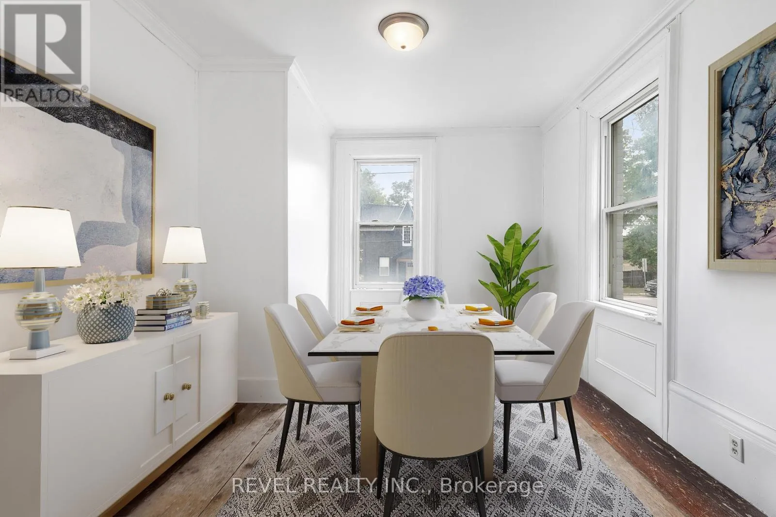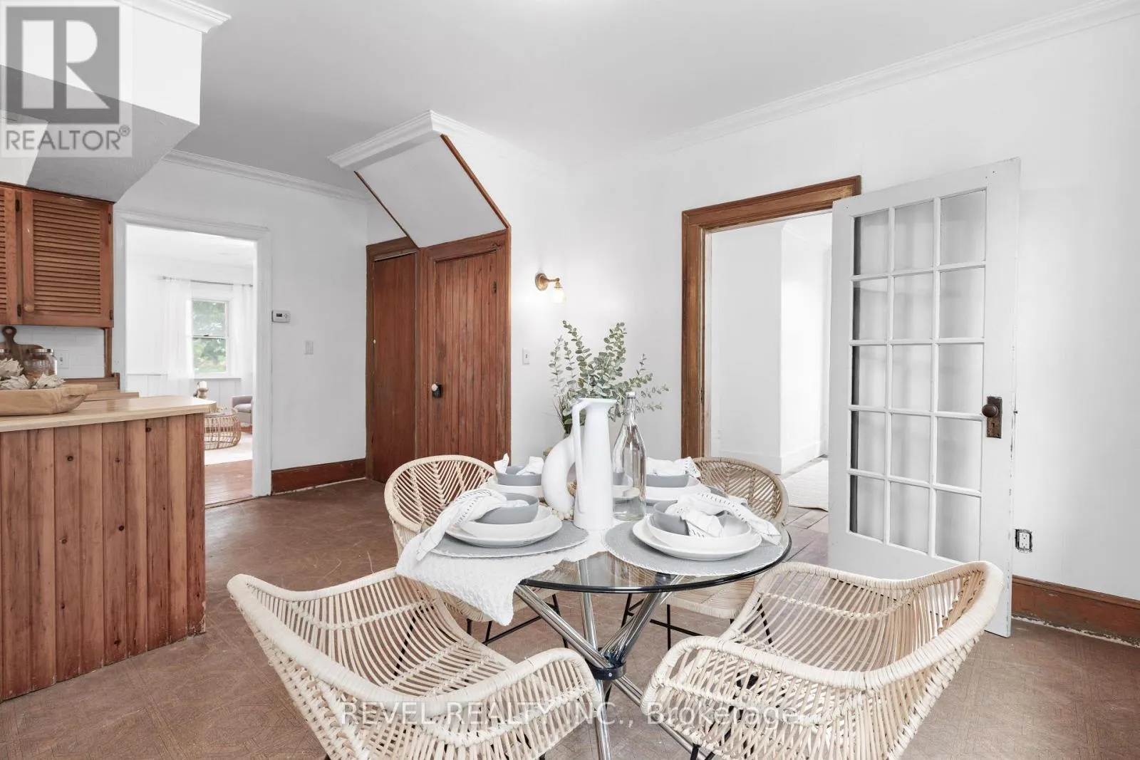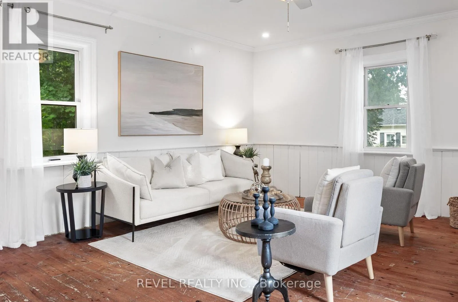 ELDON RD AND MARK ST Charming Century Home in the Heart of Little Britain. Welcome to this beautiful and spacious 4-bedroom, 2-bathroom Century Home, ideally located on a large corner lot in the vibrant Village of Little Britain. Bursting with character, the home greets you with a grand foyer and a stunning wood staircase. The main floor features a full living room adorned with farmhouse style wood floors, moldings and trim, a bright eat-in kitchen, and a separate formal dining room perfect for entertaining. Upstairs, you'll find four generously sized bedrooms, a full bathroom, and an abundance of natural light streaming through large windows. The main level also includes a convenient laundry area, a rear mudroom, and a walkout to a private backyard oasis.The mature, yard offers a large deck ideal for relaxing or hosting guests and a detached garage/shop for all your storage or hobby needs. This home is truly a statement piece and is centrally located near the community centre, shopping, dining, and the local school. Don't miss the opportunity to make this timeless home your forever home! (id:27476)
