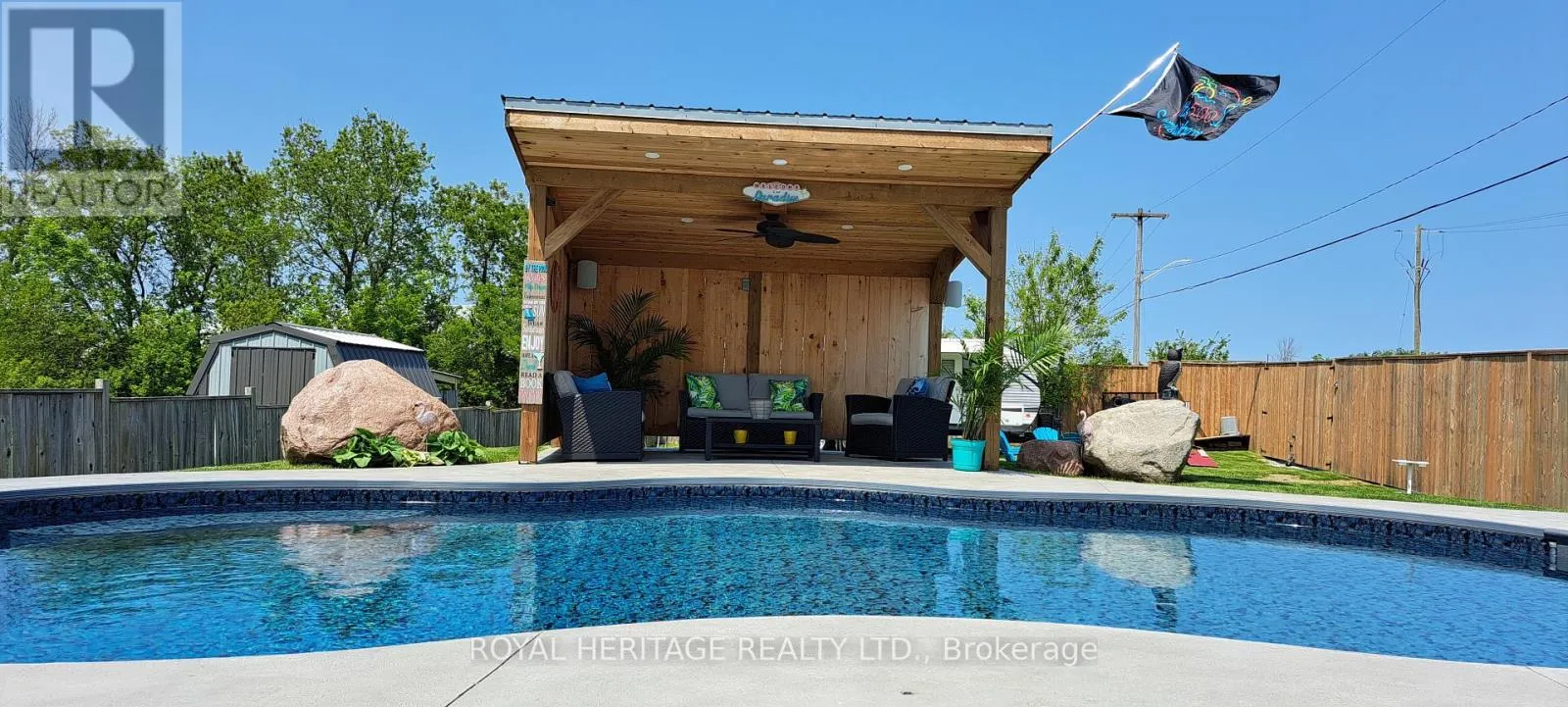 Cross Streets: St George St / Beverly. ** Directions: Highway 36 To Needham St. Turn north onto St George St. And Home is on the corner. Welcome to this fun, family-friendly raised bungalow located in the heart of the Kawarthas! This 3-bedroom, 2-bath home sits on a large, level corner lot and offers the perfect blend of comfort, recreation, and designed to entertain. The main floor features a bright eat-in kitchen with a walkout to a spacious deck overlooking a backyard designed to feel like your own private all-inclusive getaway. Enjoy a fully fenced yard complete with a heated saltwater in-ground pool (only 5 years old), Pre wired for a hot tub, an expansive concrete patio, and a stylish cabana. The exterior is also wired for exterior outdoor speakers, creating the perfect atmosphere for outdoor entertaining.The finished lower level is ideal for family fun, offering a sound-proofed theatre room, a wet bar, and a generous games area-bright, open, and ready for movie nights or gatherings. The lower level could also work as an in-law suit. An attached deep single-car garage with direct house access adds extra convenience. Move in and let your family start enjoying everything this incredible home has to offer! (id:27476)