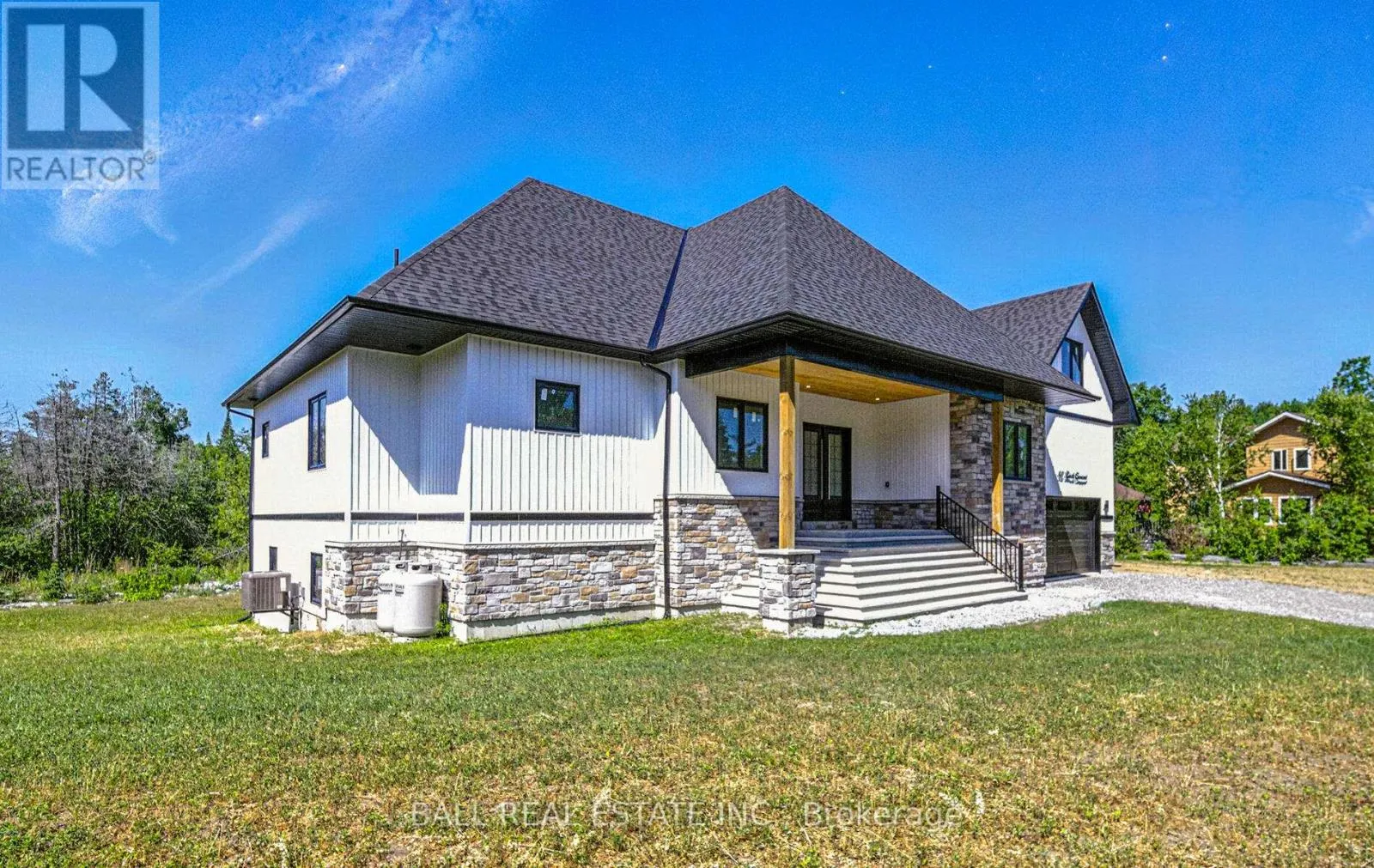 Riverside Dr. & Birch Crescent Welcome to 80 Birch Crescent, Bobcaygeon - a stunning, brand new custom-built home offering over 4,500 sq ft of thoughtfully designed living space just minutes from charming downtown Bobcaygeon. This 4-bedroom, 4-bath masterpiece blends modern elegance with every day functionality, featuring soaring ~11 ft ceilings on the main level, engineered hardwood flooring, and upgraded finishes throughout. Only a short walk from public access to Pigeon Lake. Step into the heart of the home - a show-stopping kitchen equipped with high-end KitchenAid appliances, under-cabinet lighting, a large quartz island and sleek modern cabinetry. Enjoy seamless flow into the open concept living and dining area, illuminated by well thought out lighting. A large spa-like primary bedroom on the main floor with exquisite ensuite bathroom and walk in closet is included on the main floor as well as an extremely bright sunroom ideal for a home office, dining space, or den. The space extends to a covered walk out deck with builtin pot lights - perfect for an outdoor kitchen and entertaining year round. Solid-core 8-foot modern interior doors, 7" baseboards and premium two-pane windows highlight the quality craftsmanship throughout. Practical features include a phenomenal well flow rate, advanced water filtration system, over-sized septic. Whether you're relaxing with family or entertaining guests, every inch of this home is designed to impress. Don't miss your opportunity to live in one of Bobcaygeon's finest new builds - luxury, location and lifestyle await at 80 Birch Crescent. (id:27476)