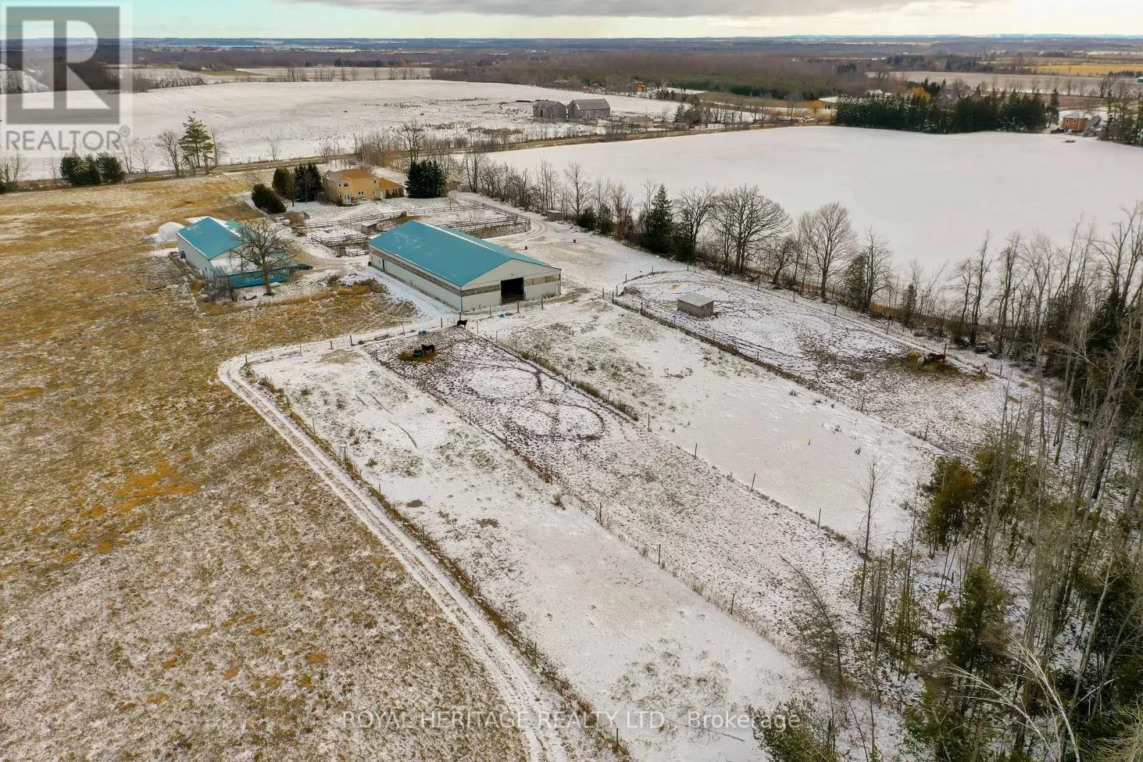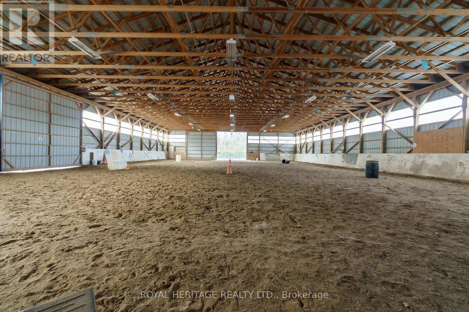 Cross Streets: TRANS CANADA & ELM TREE. ** Directions: TRANS CANADA - NORTH ON 18 - ON YOUR LEFT. Nestled on 130+ breathtaking acres in the heart of the Kawarthas abutting Goose Lake and protected wetlands, 30 acres of which is cleared, planted with hay, this exceptional equestrian estate offers the ultimate blend of luxurious country living and horse facilities. The elegant custom residence spans over 3,000 sq. ft. and welcomes you with a grand foyer and sweeping staircase. Bright, spacious principal rooms include a formal dining room, a large country kitchen with walk-out decks overlooking paddocks and the arena, an elegant family room warmed by a wood-burning fireplace and attached 3 car garage. The private primary suite is a serene retreat, featuring panoramic views of the entire equestrian operation, two ample walk-in closets, and a luxurious 5-piece ensuite. The lower level adds a generous recreation room with wood stove, rough-in for a future 3-piece, a versatile bonus room and convenient wine cellar/cold storage. Designed for the serious equestrian, the property boasts a state-of-the-art indoor riding arena with viewing lounge, an impeccable 8-stall barn, also a heated and insulated workshop/driveshed for hay and equipment storage with 3-piece bath. Both outbuildings have been thoughtfully constructed to accommodate future solar installation and off-grid potential. Miles of private trails wind through mature forests, perfect for riding, spending time in the cabin with loft, or simply escaping into nature. Complete with reassuring pre-list home inspection. (id:27476)